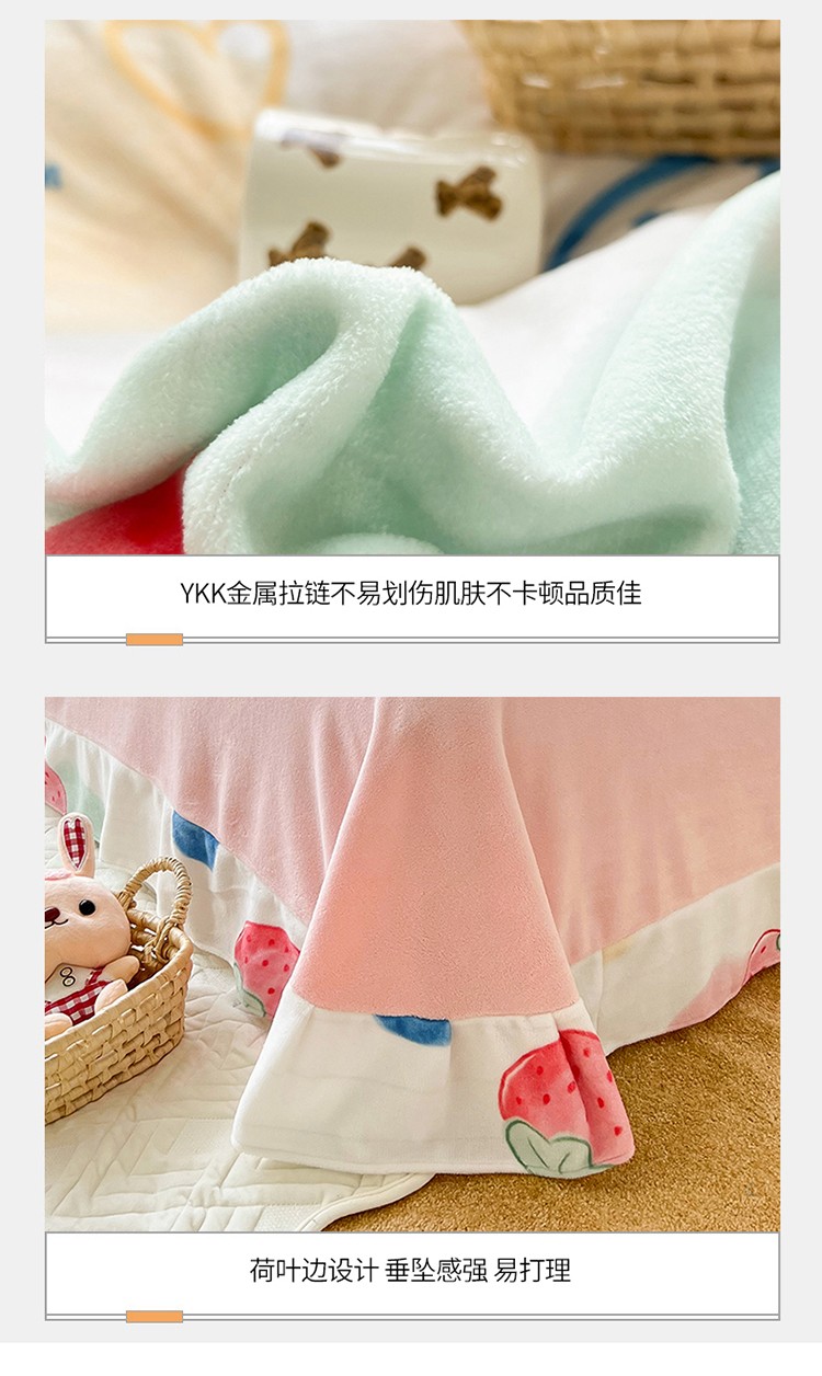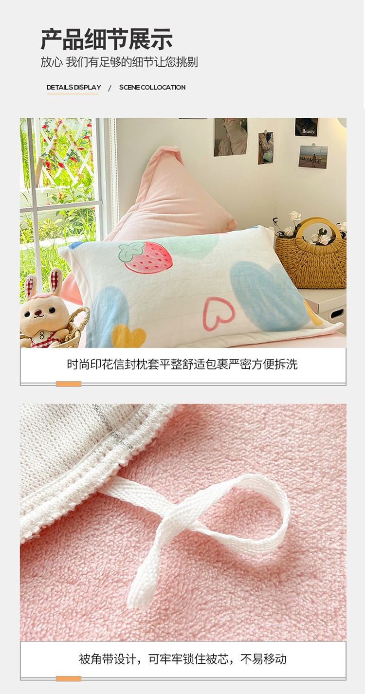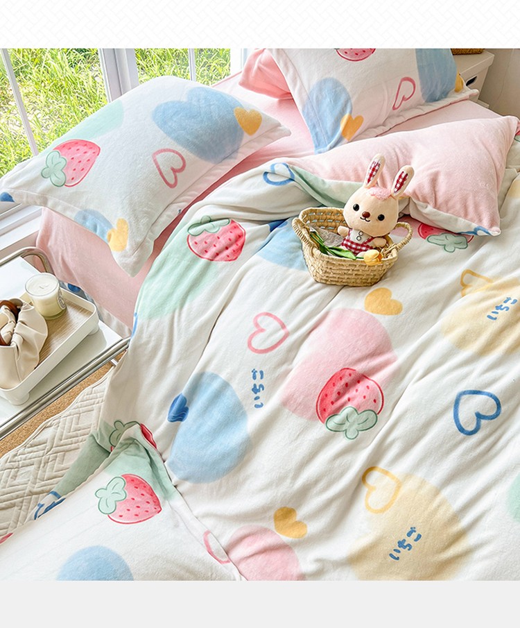 呗旺鹿 2022印花小清新加厚保暖牛奶绒四件套直播 莓莓相印