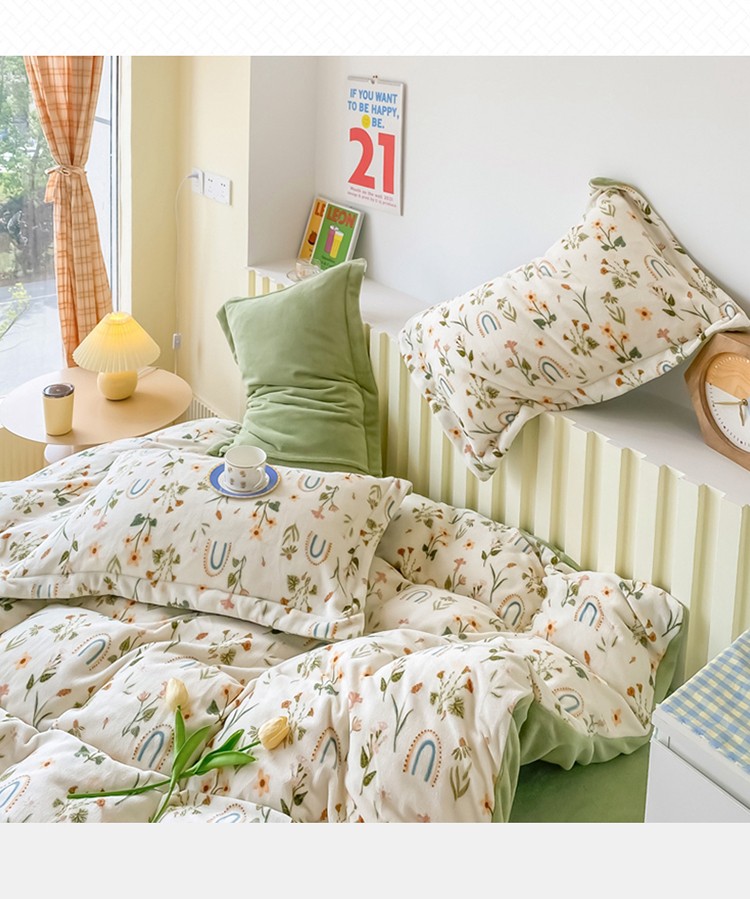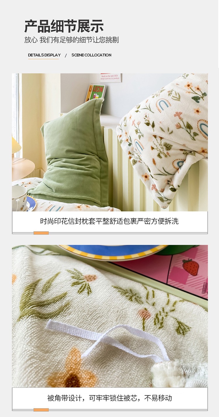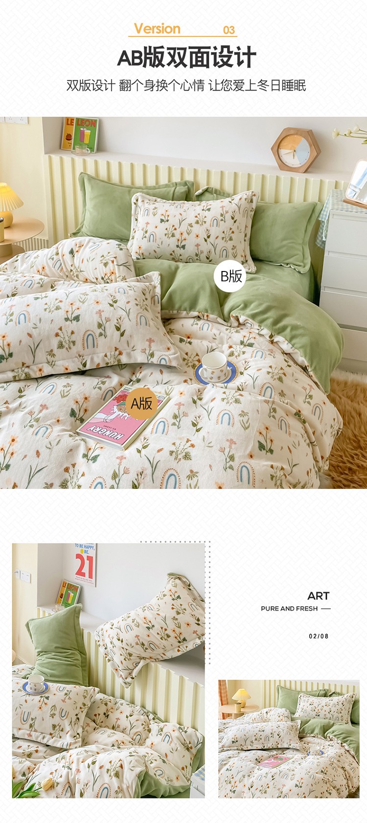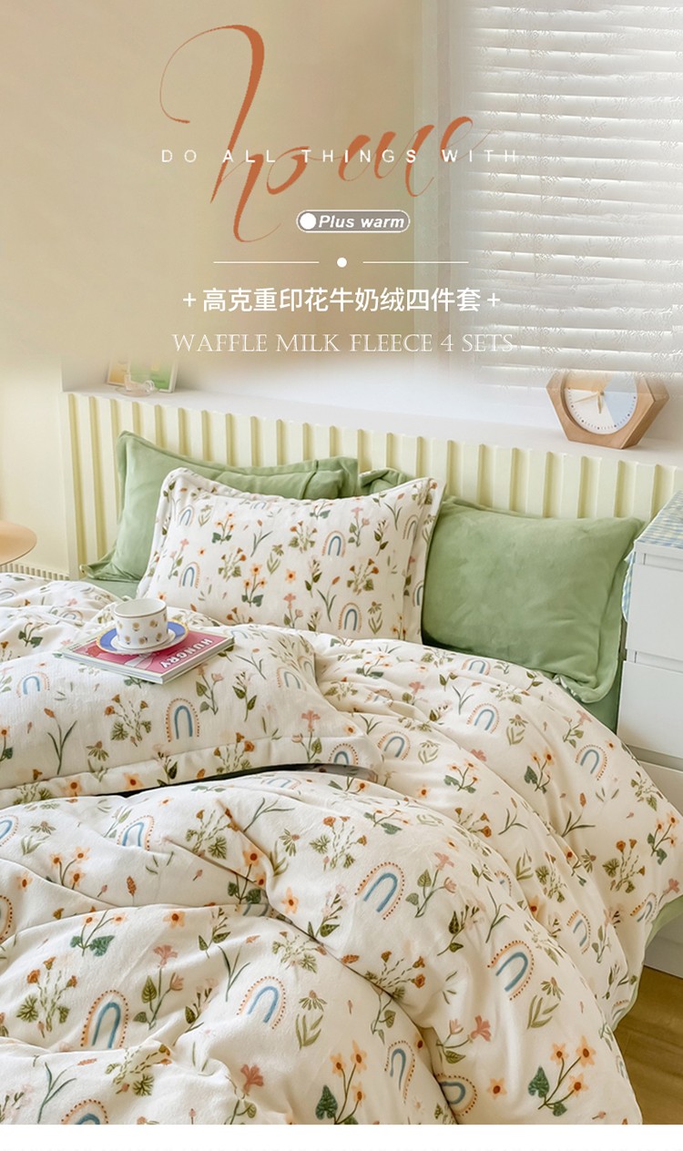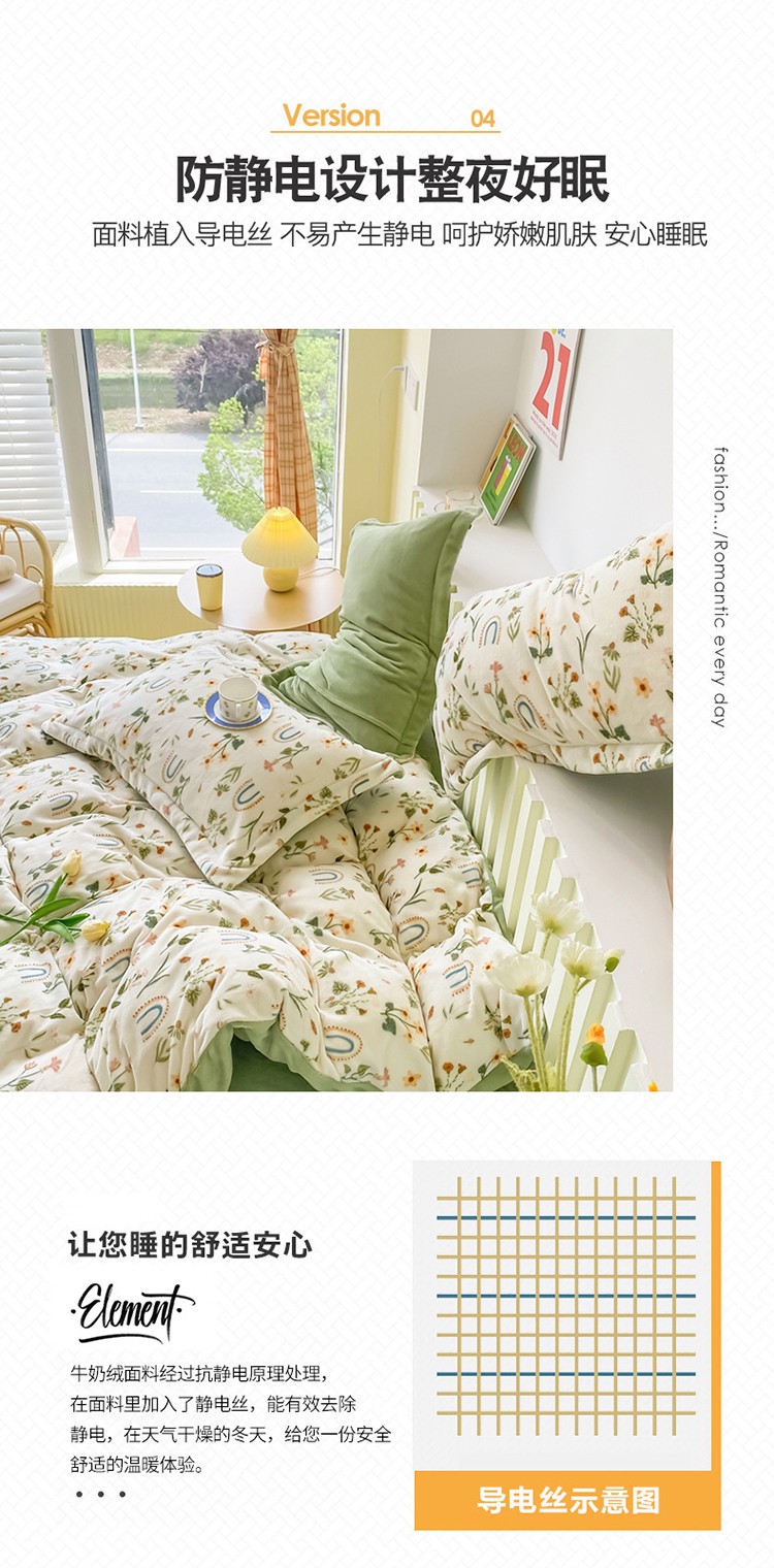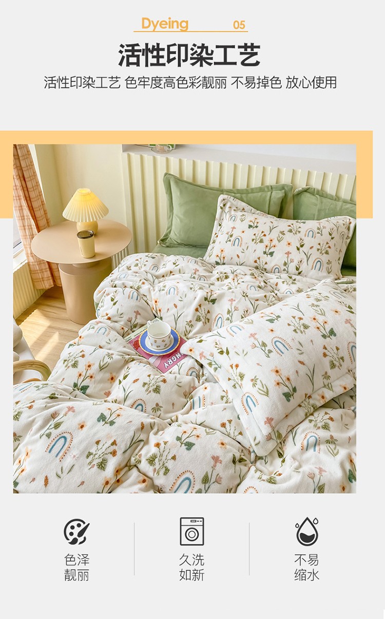 商品名称:呗旺鹿 2022年印花小清新加厚保暖牛奶绒四件套直播 百草香