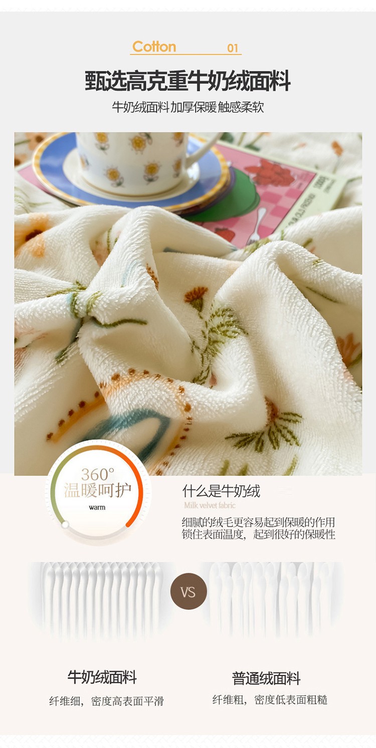 呗旺鹿 2022年印花小清新加厚保暖牛奶绒四件套直播 百草香