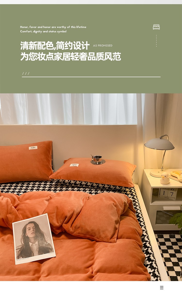 当前位置: 91家纺网 > 商品网购 > 床品套件 > 四件套 > 牛奶绒四件套 > 花漾家居 2023新款秋冬新品千鸟格双拼牛奶绒四件套 暖阳桔