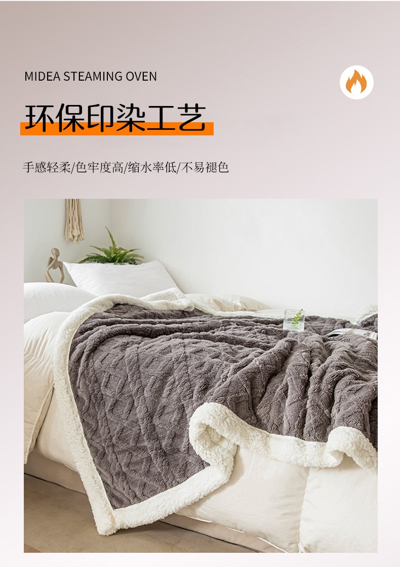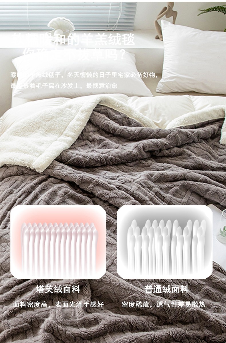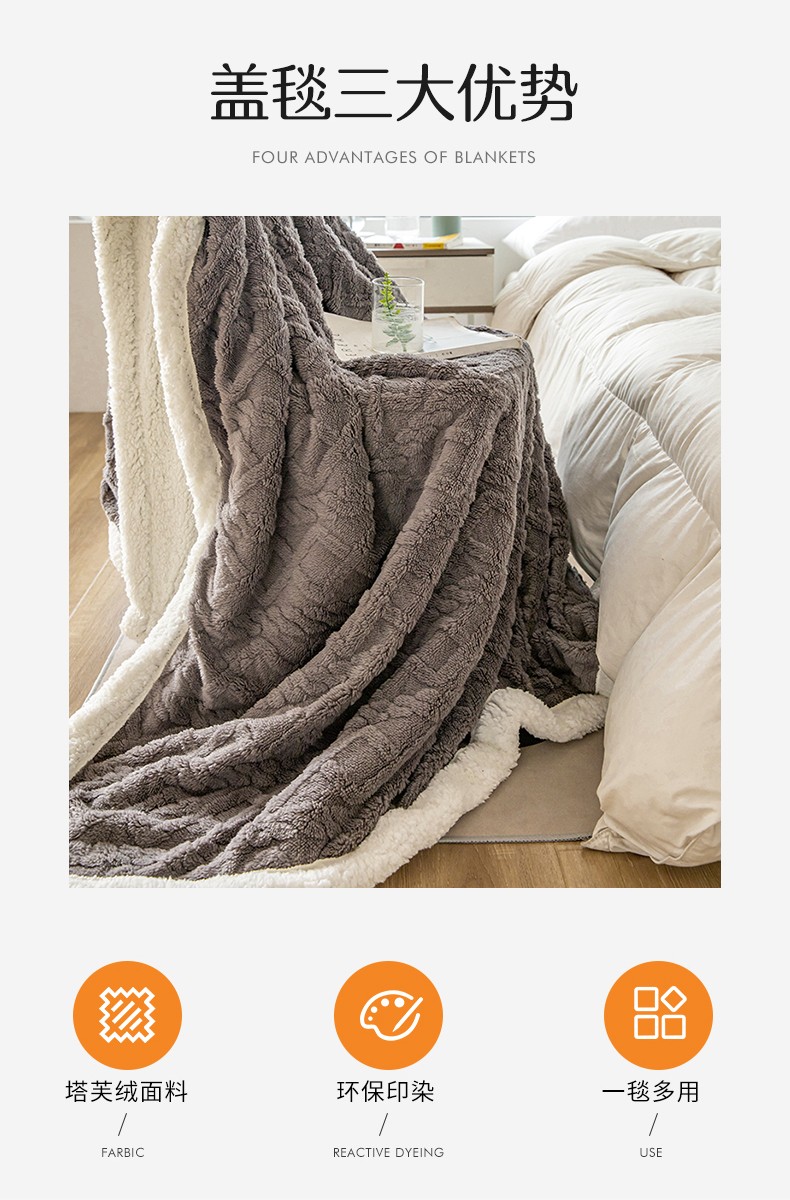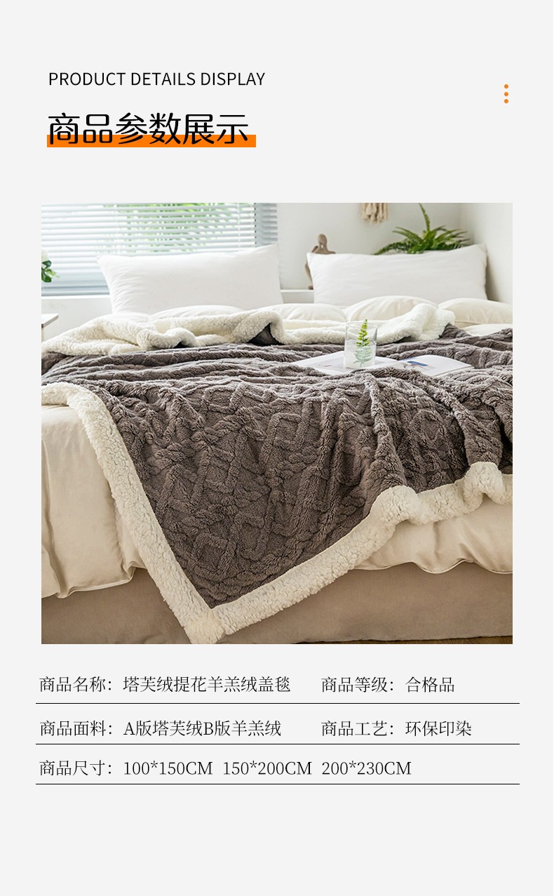 商品名称:网客家纺 2024新款塔芙绒提花羊羔绒盖毯 深灰