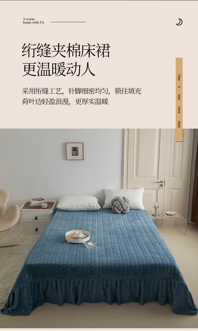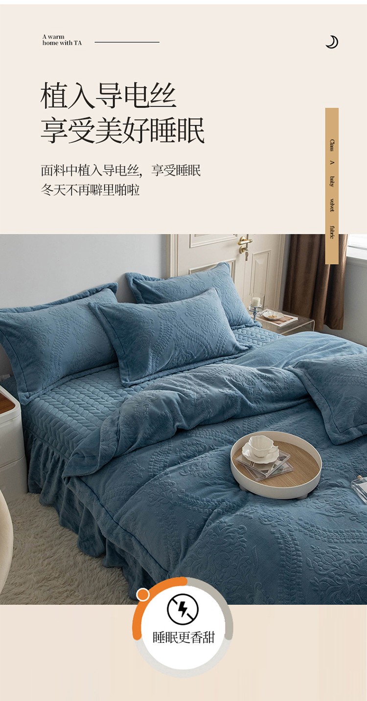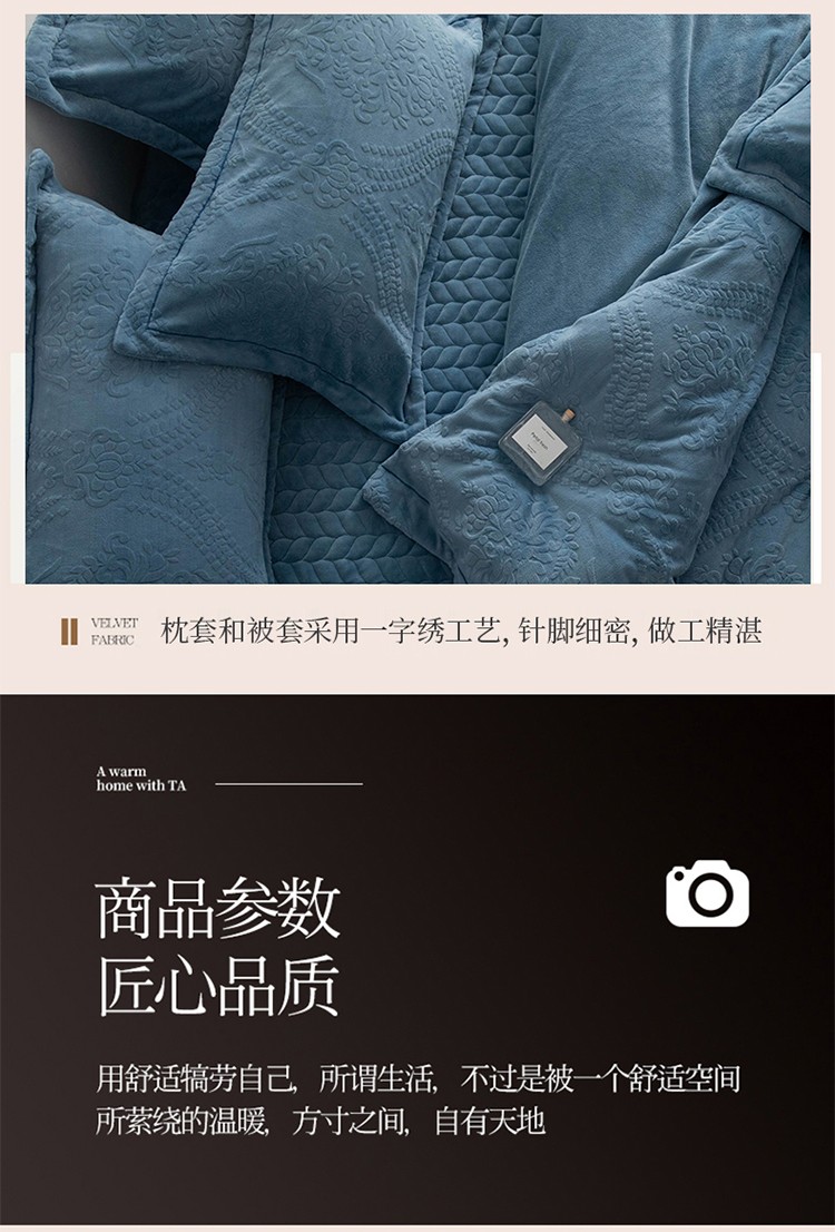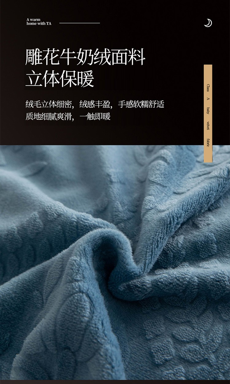商品名称:舒梦琪 2024新款牛奶绒立体雕花床盖四件套 蓝灰