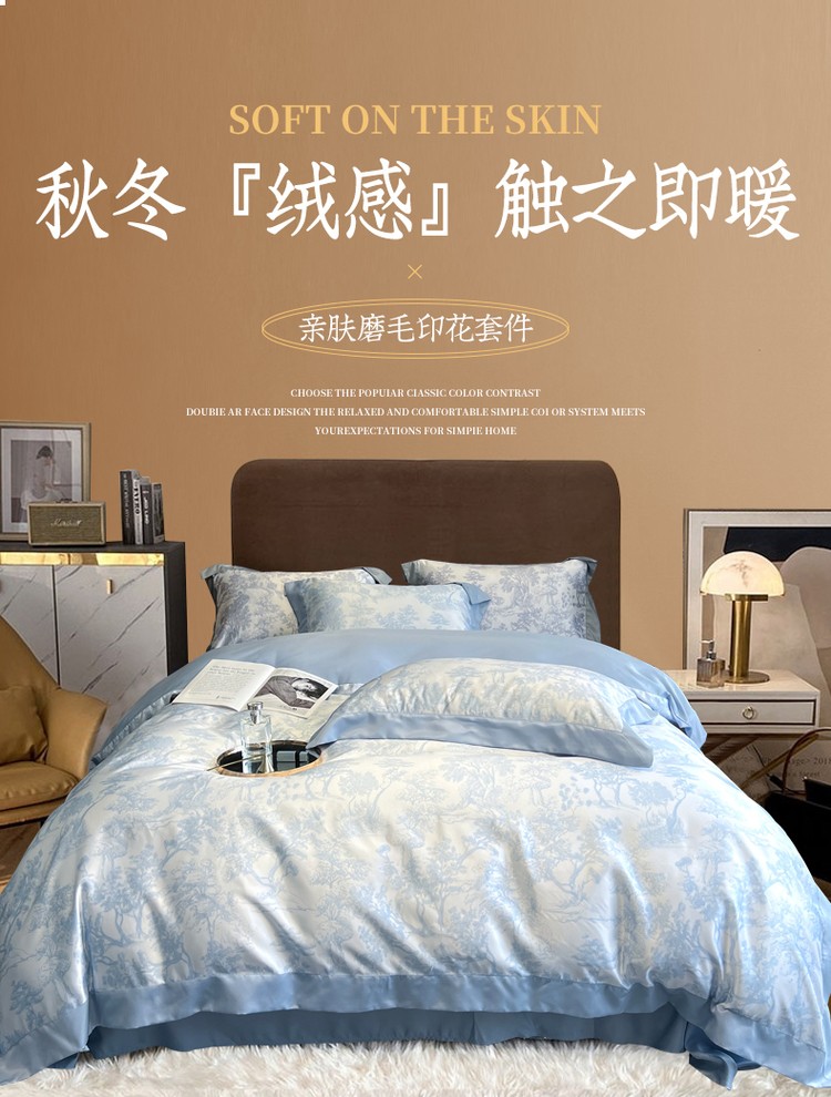 商品名称:优悦生活馆 2022新款墨尔本亲肤磨毛四件套 星空蓝