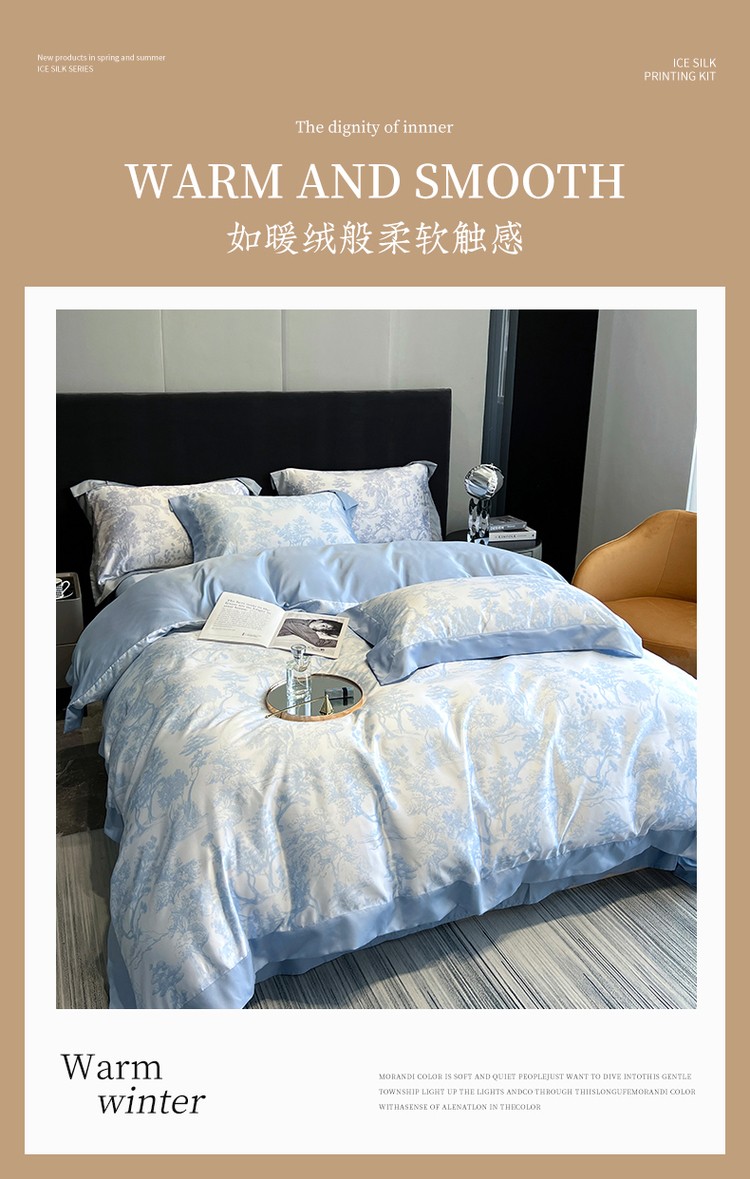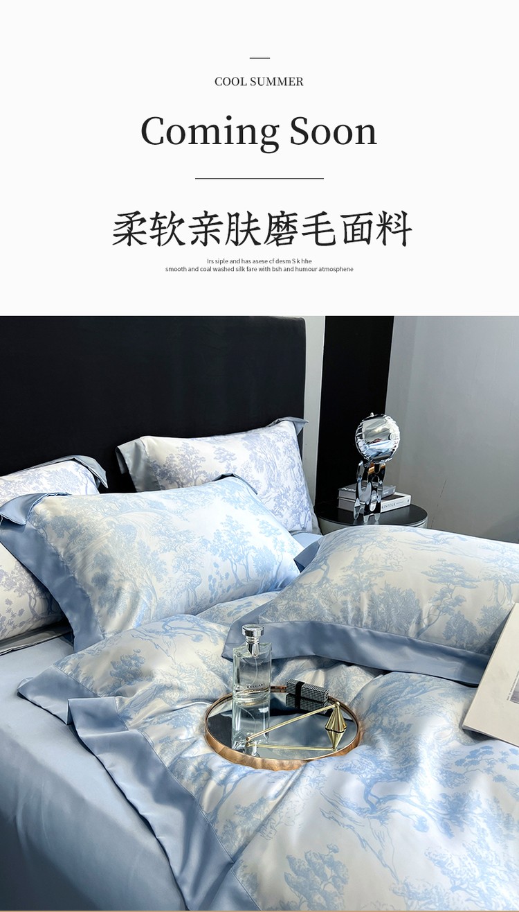 (总)优悦 2023新款水洗真丝轻奢印花款四件套,安格斯-黄,安格斯-灰,安格斯-绿,迪丽奥-灰,迪丽奥-蓝,迪丽奥-绿,浅浅叶语-灰,浅浅叶语-绿,森林物语-蓝,森林物语-绿,森绿物语-灰,云中-粉,云中-灰,云中-蓝,云中-绿
