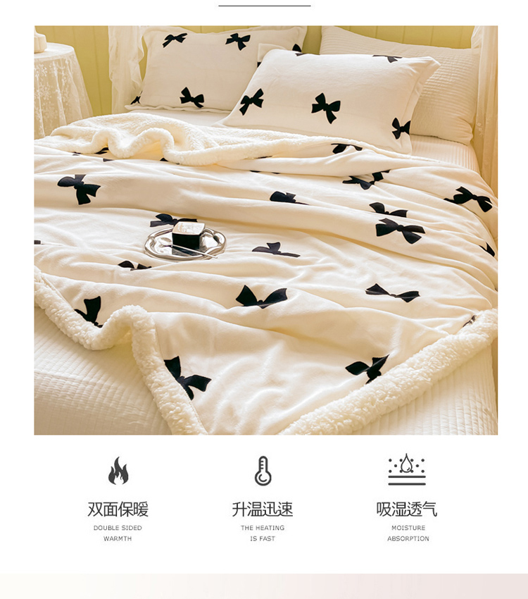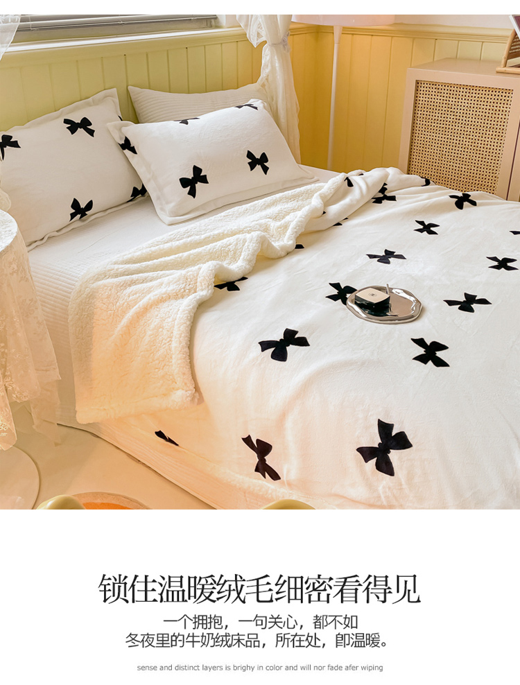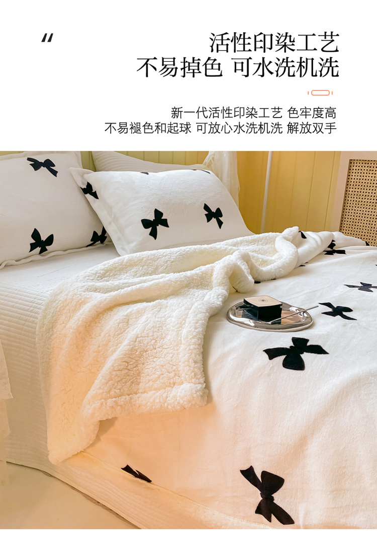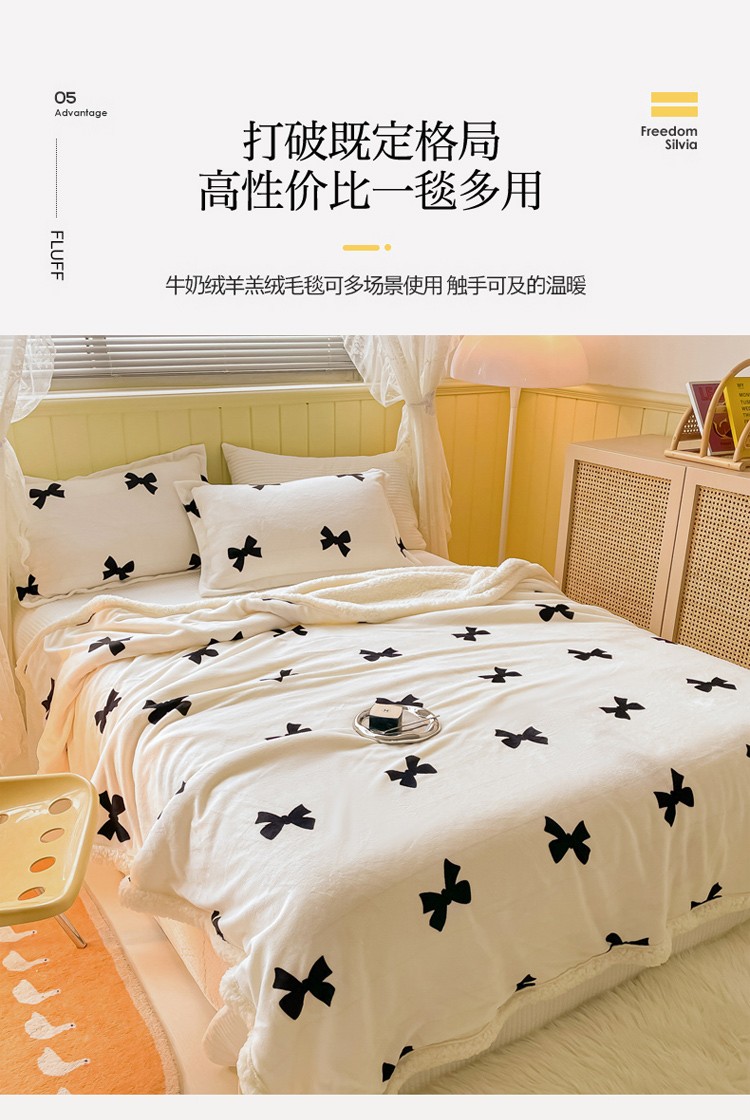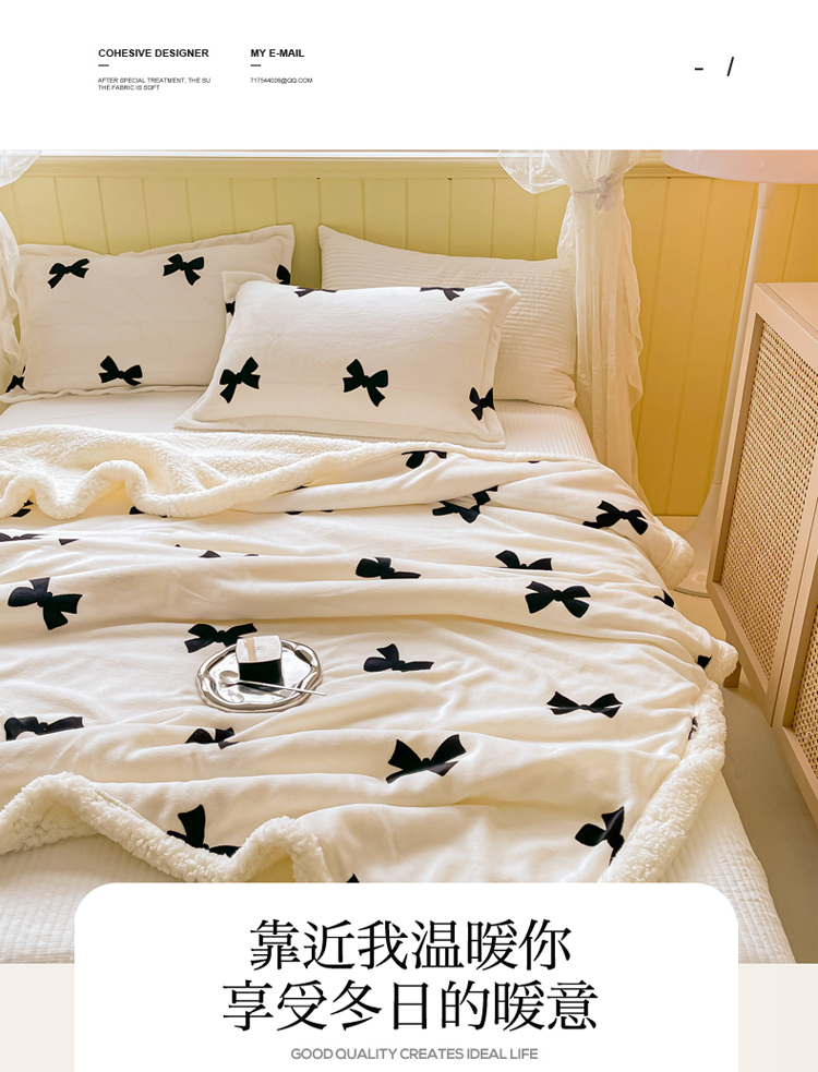 商品名称:沐慕 2022新款牛奶绒拼羊羔绒毛毯 黑白蝴蝶结