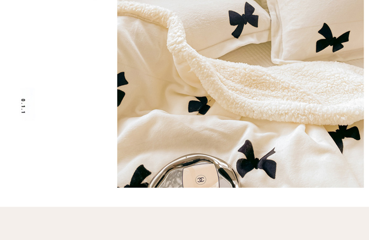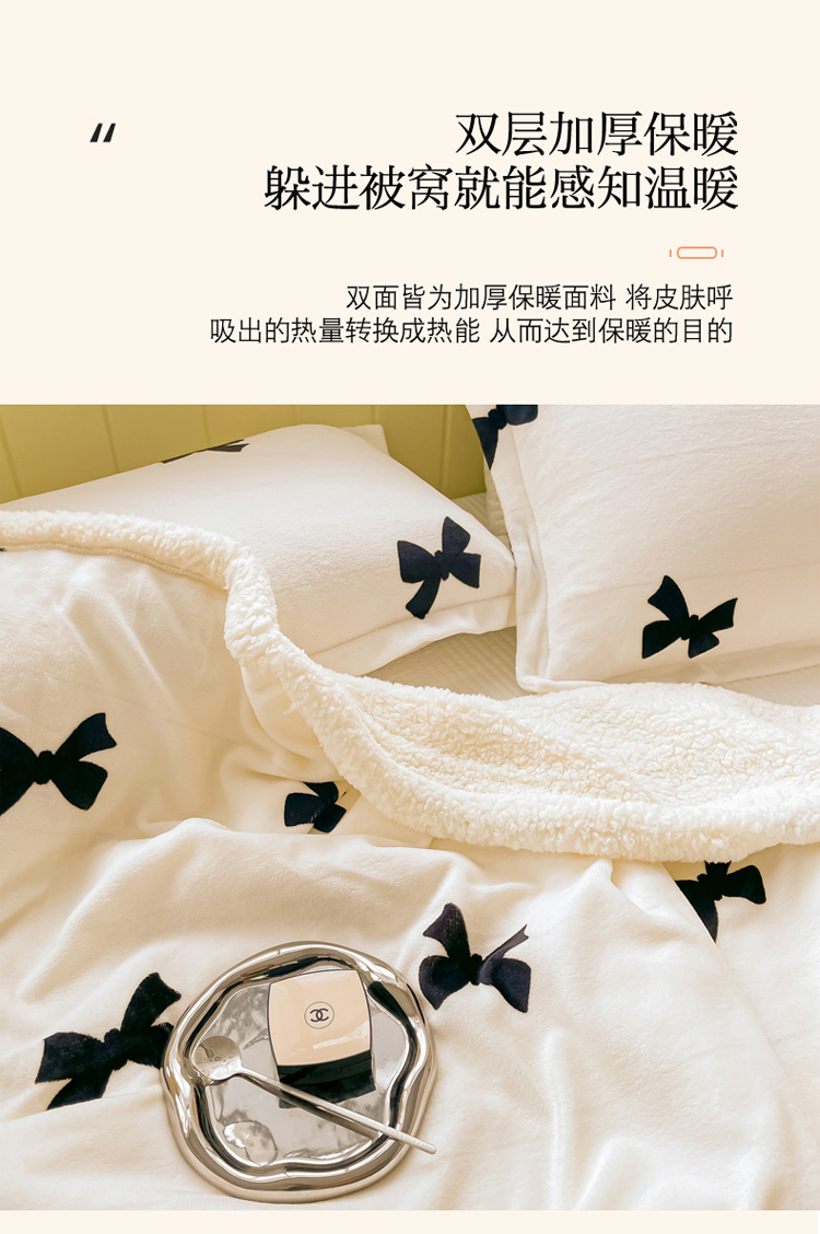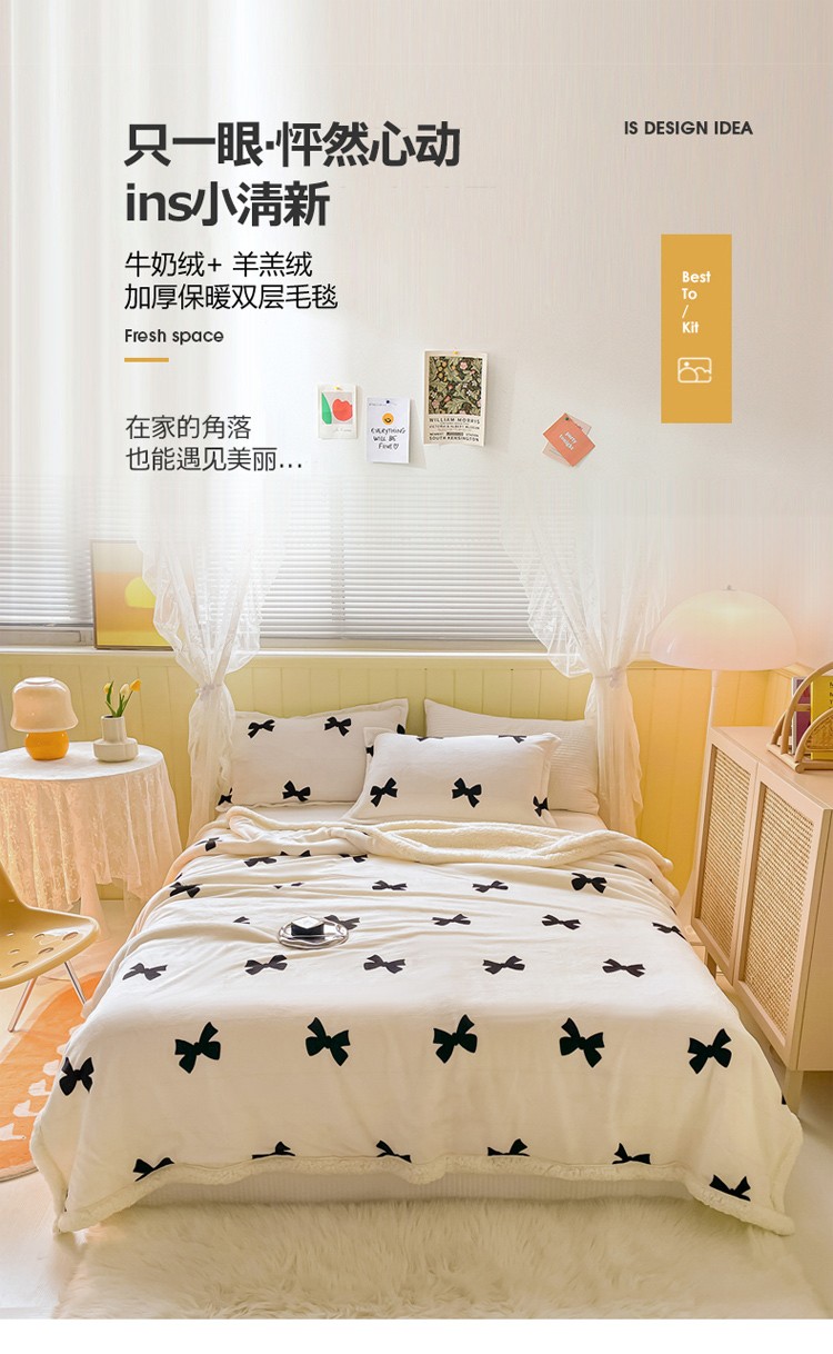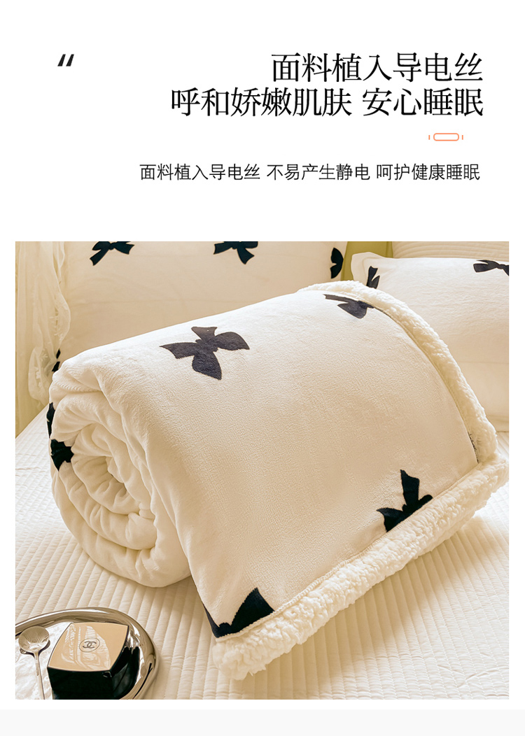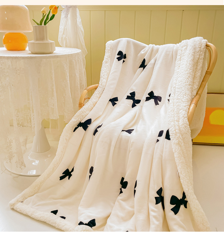 商品名称:沐慕 2022新款牛奶绒拼羊羔绒毛毯 黑白蝴蝶结