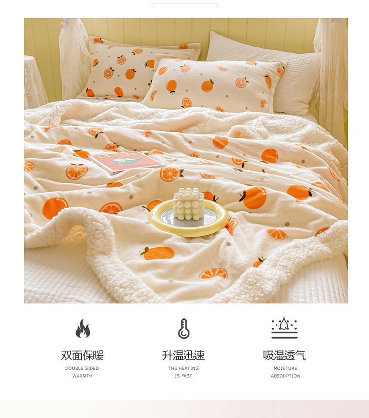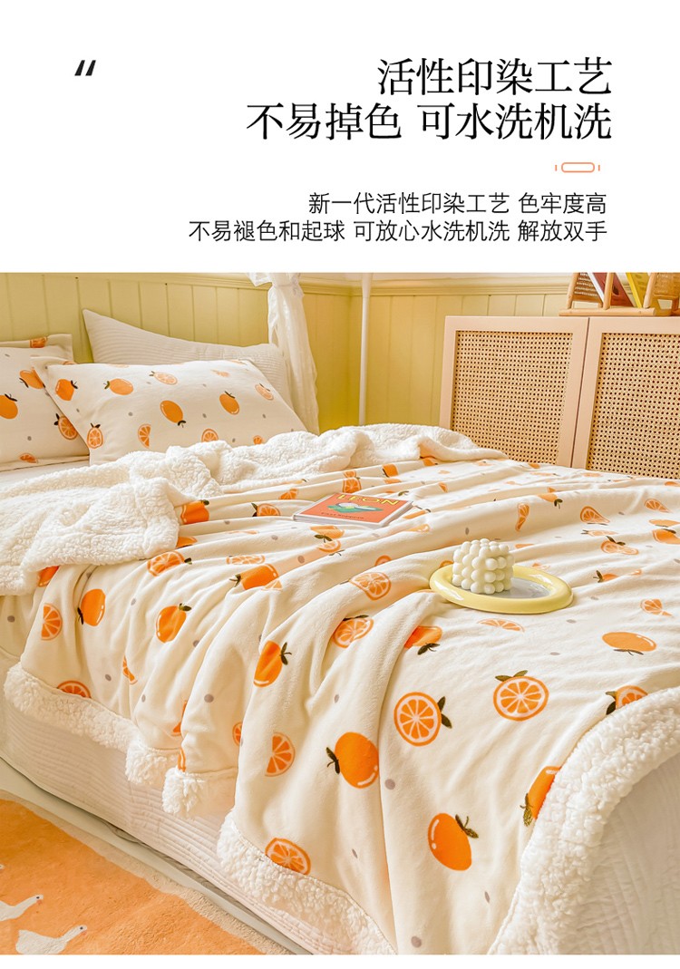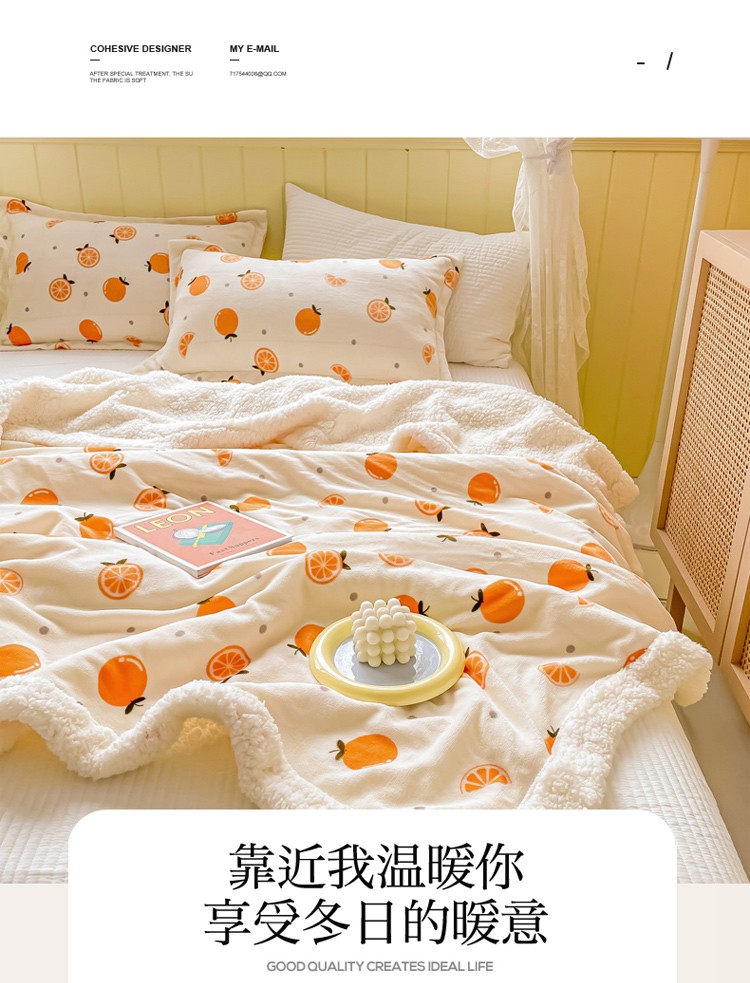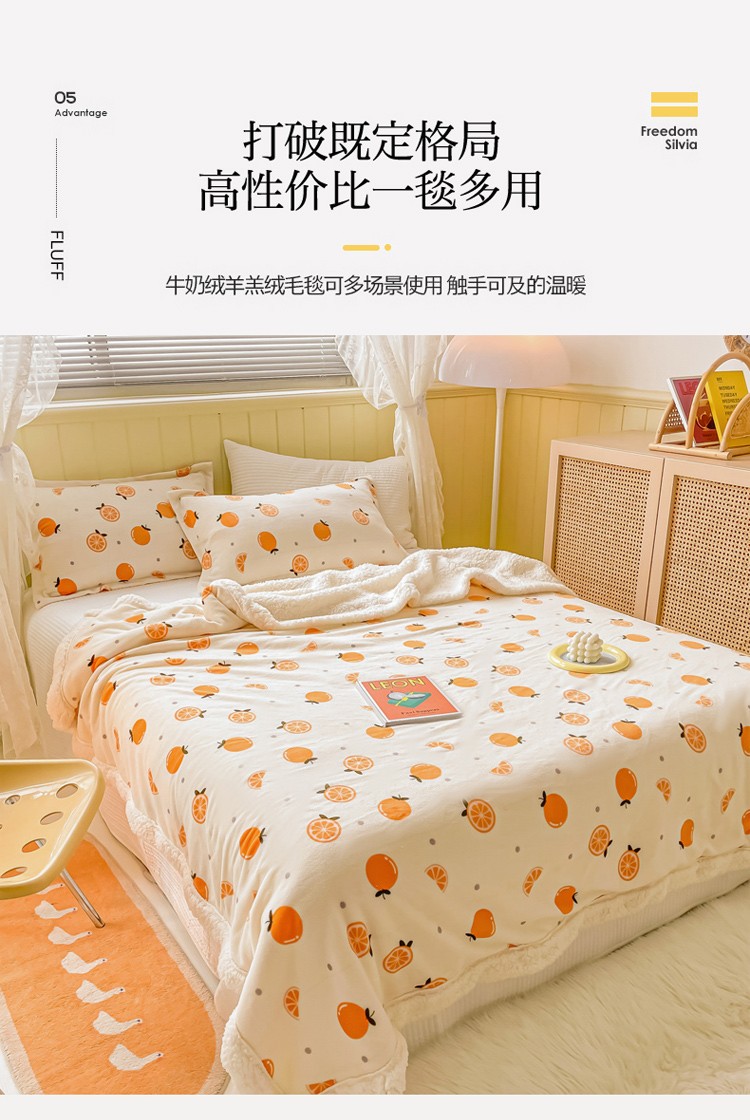 商品名称:沐慕 2022新款牛奶绒拼羊羔绒毛毯 小橙子