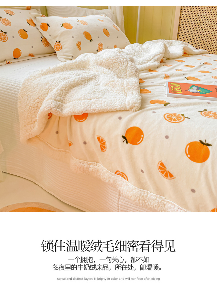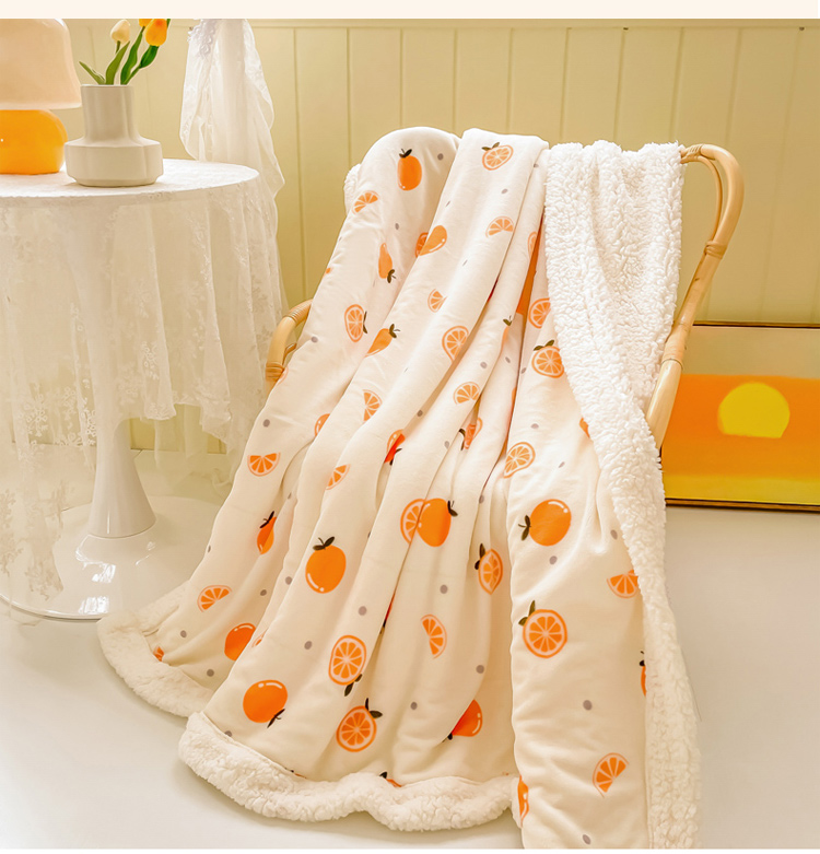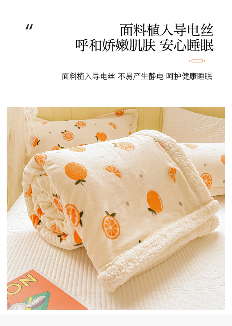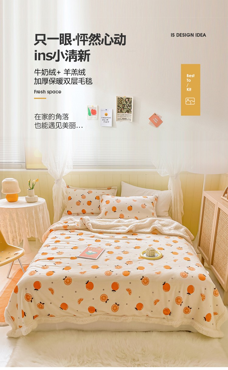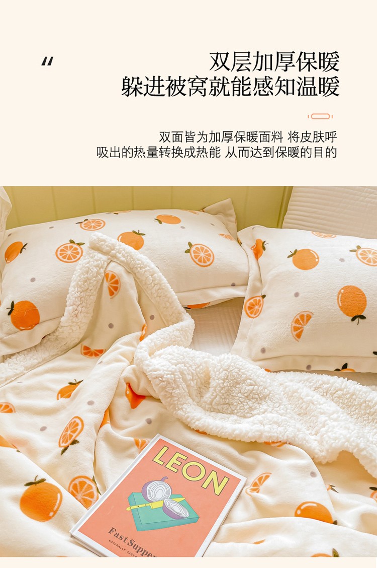 商品名称:沐慕 2022新款牛奶绒拼羊羔绒毛毯 小橙子