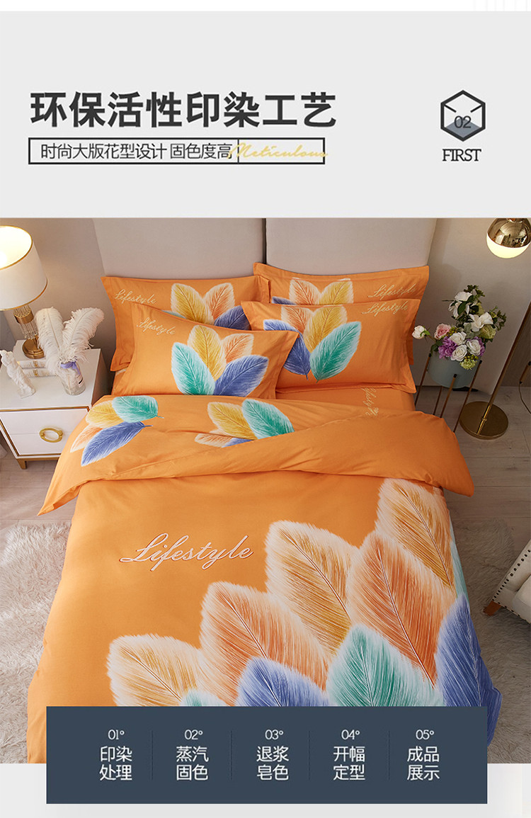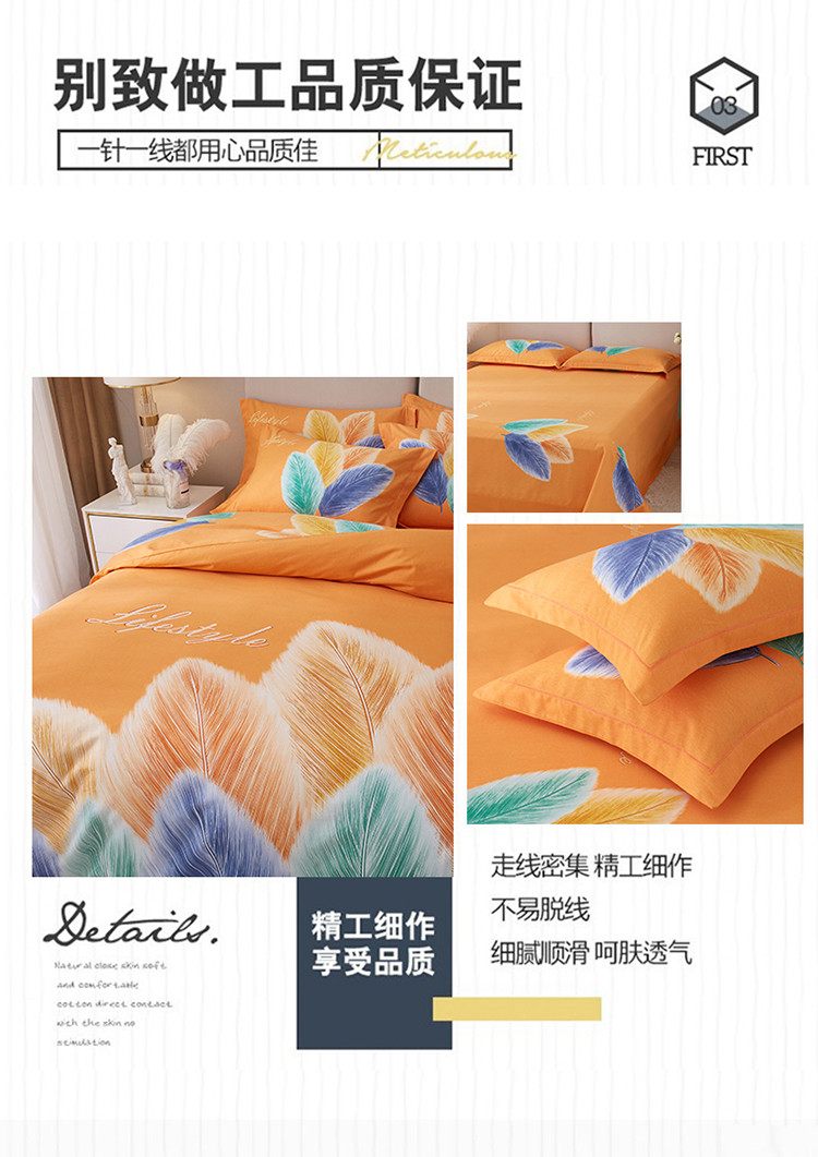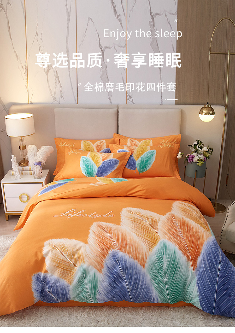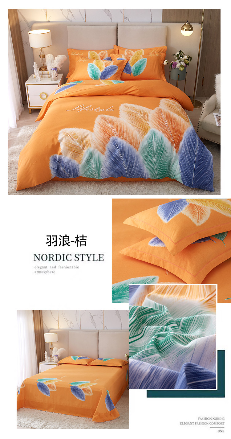 商品名称:金纱玉纺2022新款全棉生态大版磨毛四件套羽浪-桔