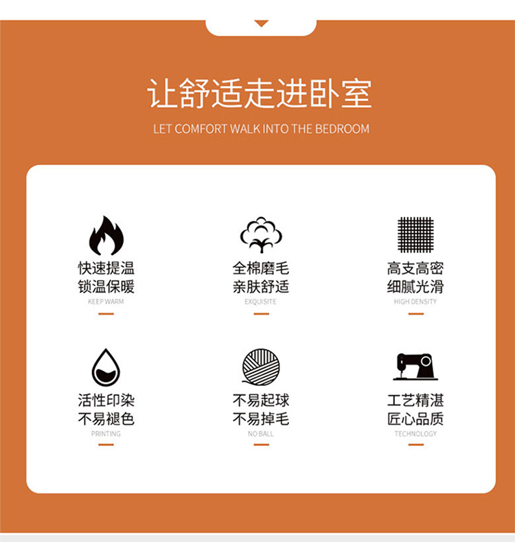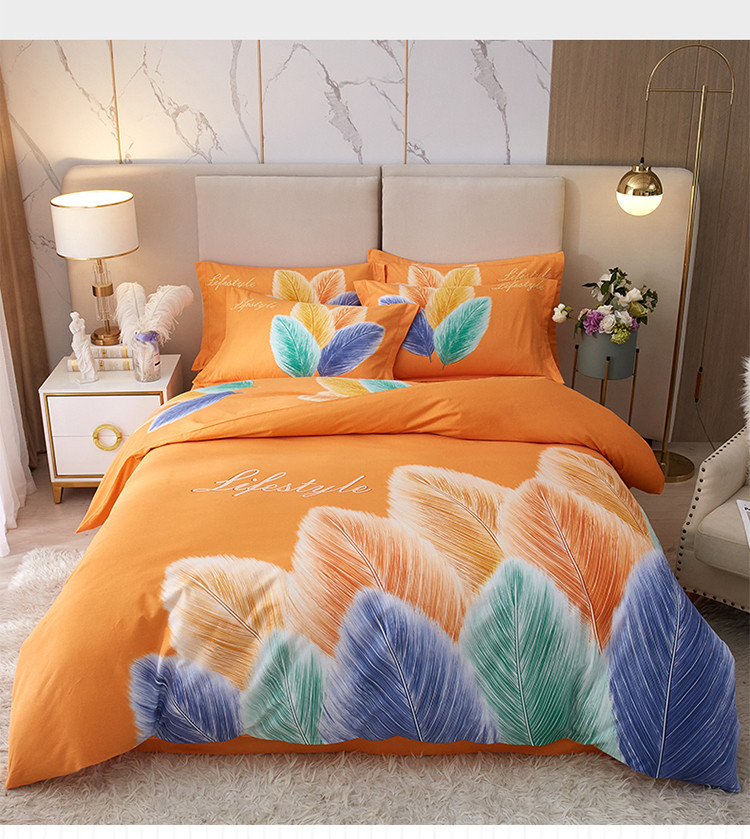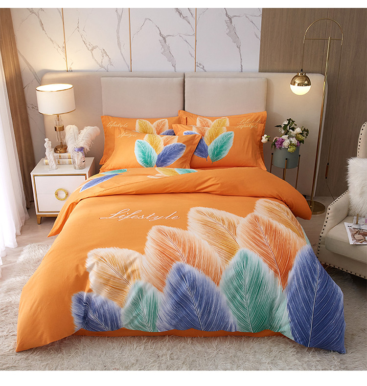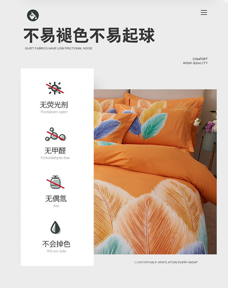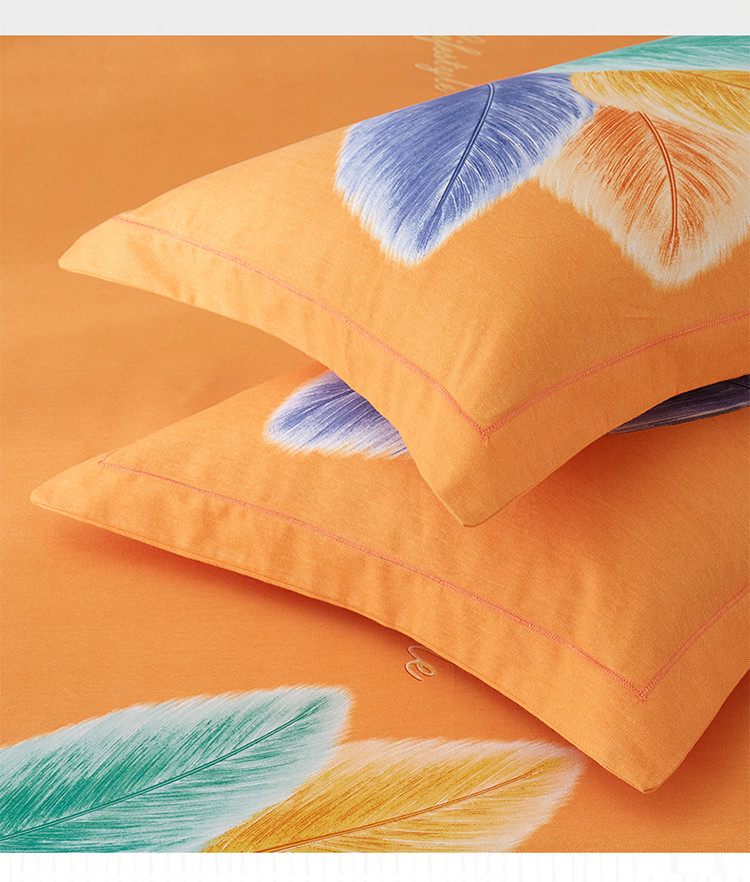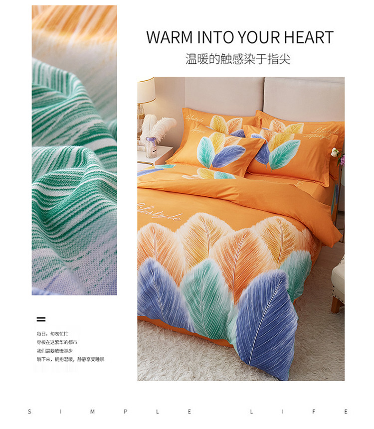 商品名称:金纱玉纺2022新款全棉生态大版磨毛四件套羽浪-桔