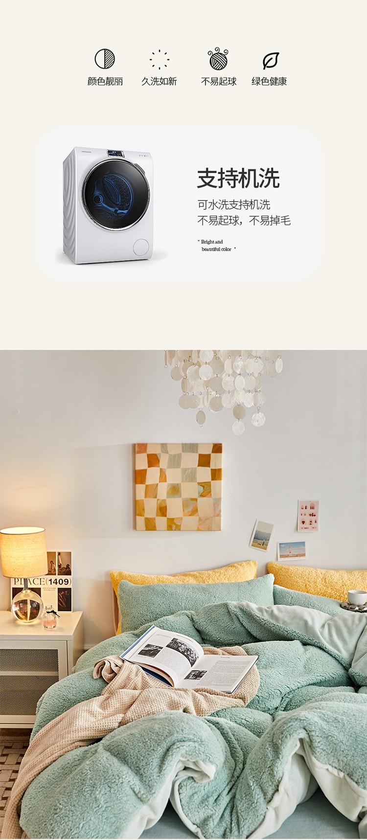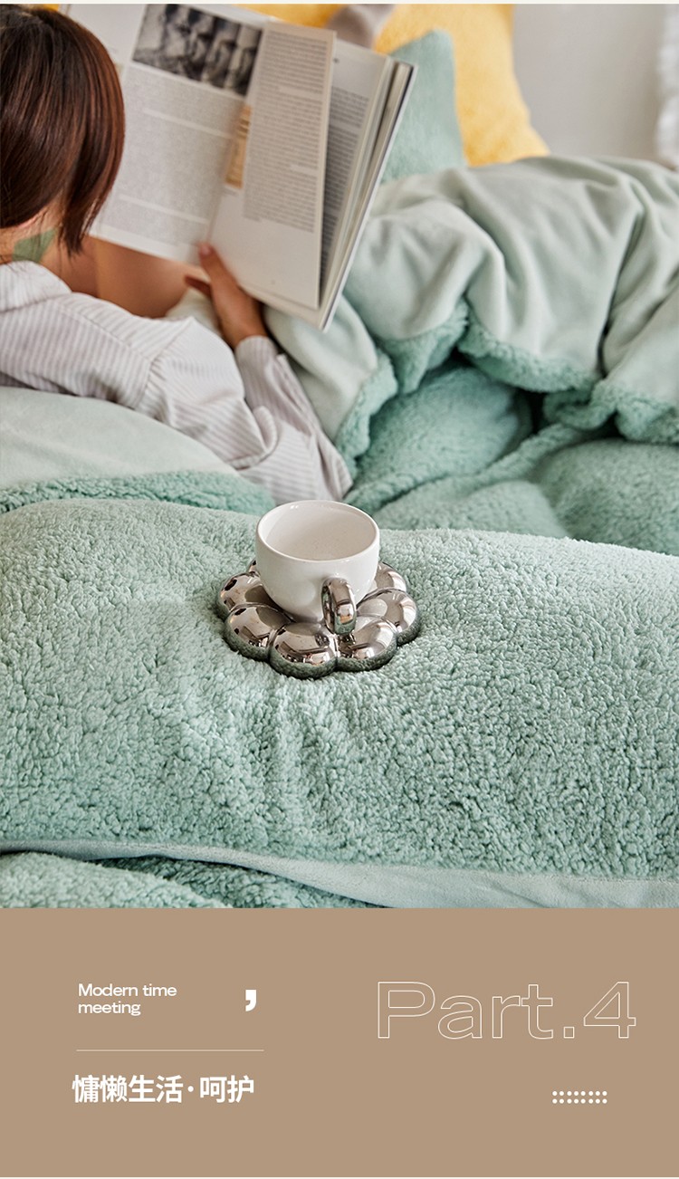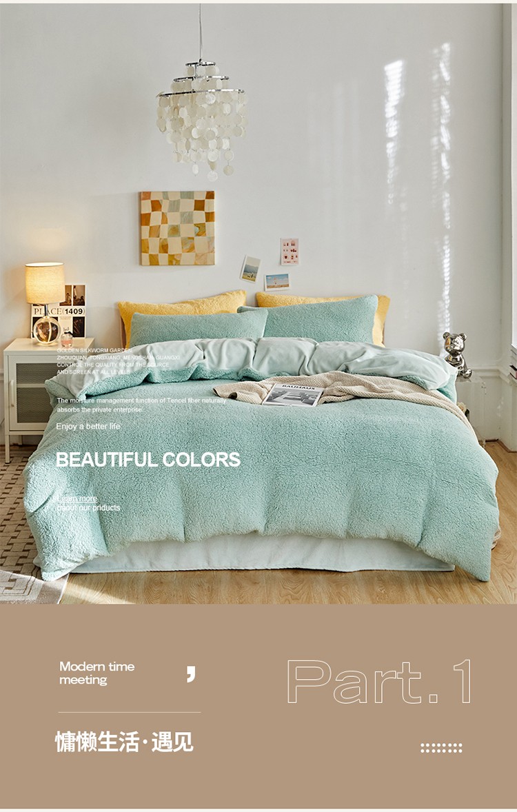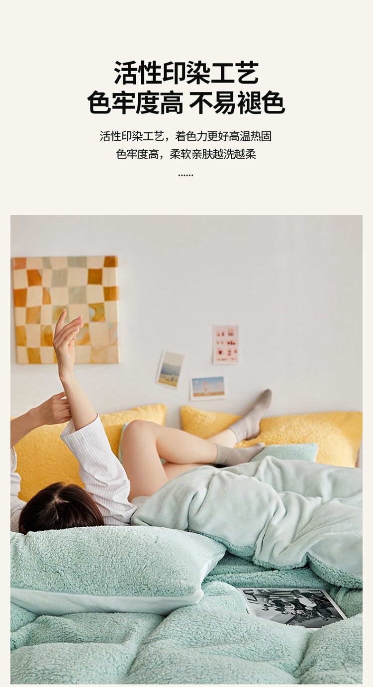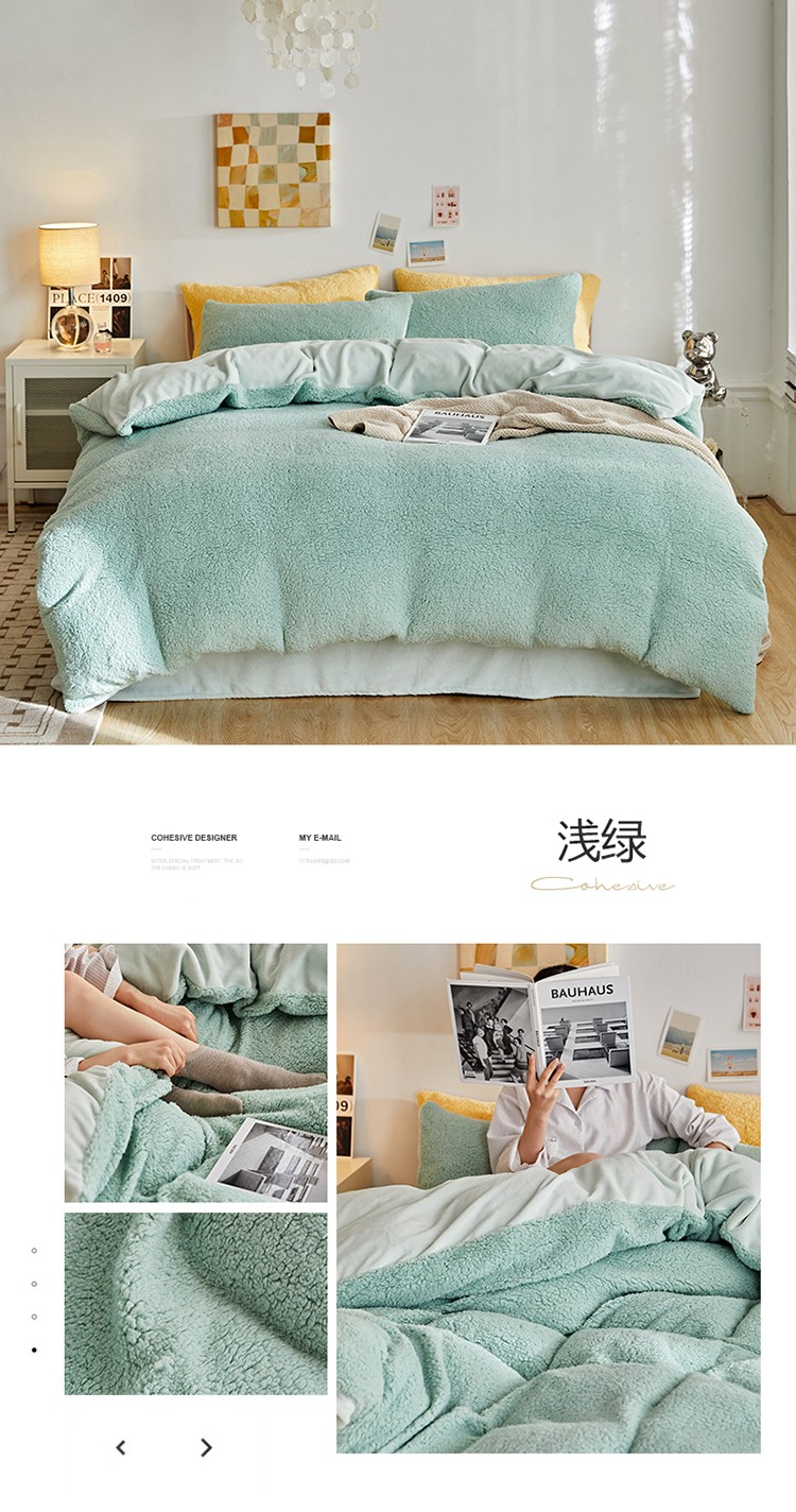 商品名称:大元 2025新款A版羊驼绒B版牛奶绒纯色四件套 浅绿