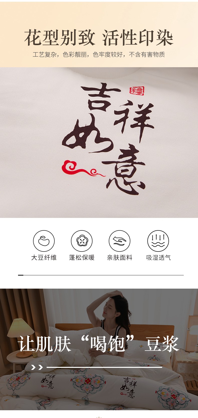 圣楚 2024新款秋冬暖眠大豆纤维冬被被子被芯直播爆款 吉祥
