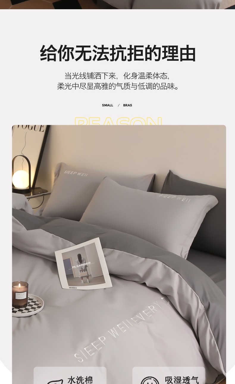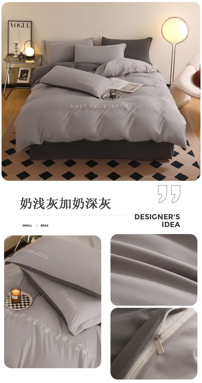 当前位置: 91家纺网 > 商品网购 > 床品套件 > 四件套 > 普通磨毛四件套 > 啊雅家居 新款纯色水洗磨毛亲肤绣花床单款床笠款四套件 奶浅灰加奶深灰