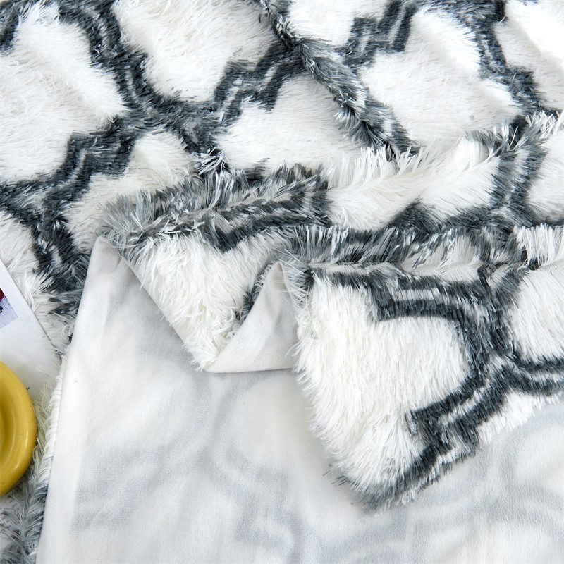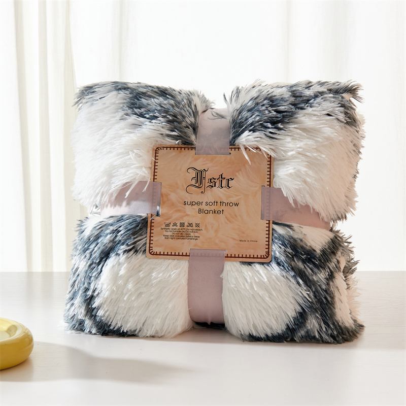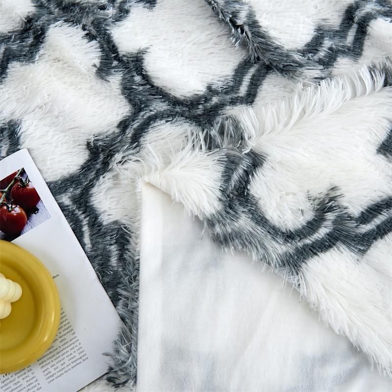 品尚嘉水貂绒毛毯长毛绒法莱绒双层跨境外贸毯子-扎染系灰白格子