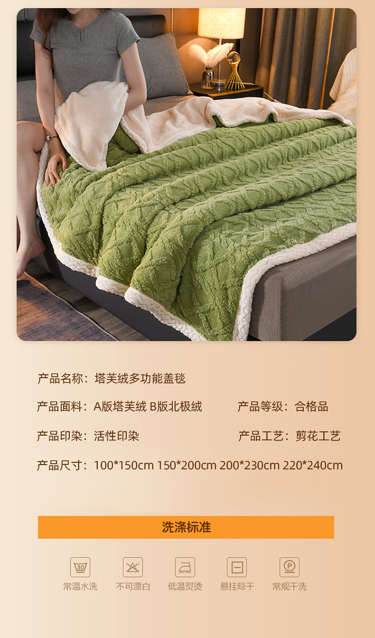 (总)迷仙巢 2022新款塔夫绒多功能盖毯,卡其色,米白色,抹茶绿,柠檬黄,深空灰,香芋紫,樱花粉