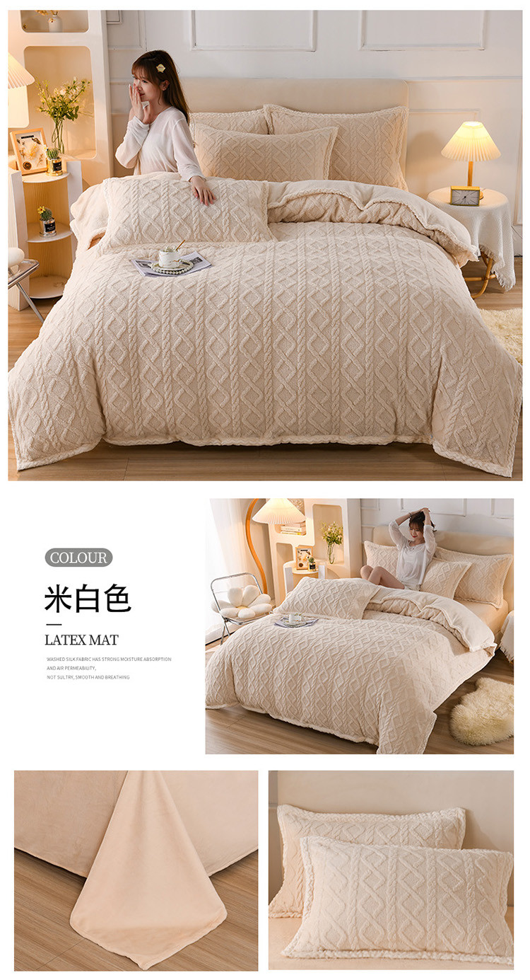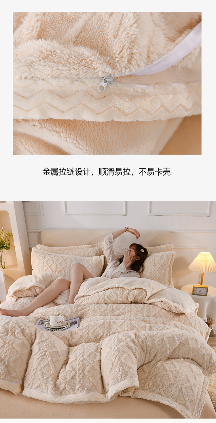 当前位置: 91家纺网 > 商品网购 > 床品套件 > 四件套 > 贝贝绒四件套 > 迷仙巢 2022新款塔夫绒拼北极绒贝贝绒包边四件套 米白色