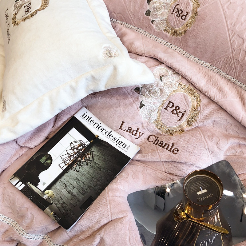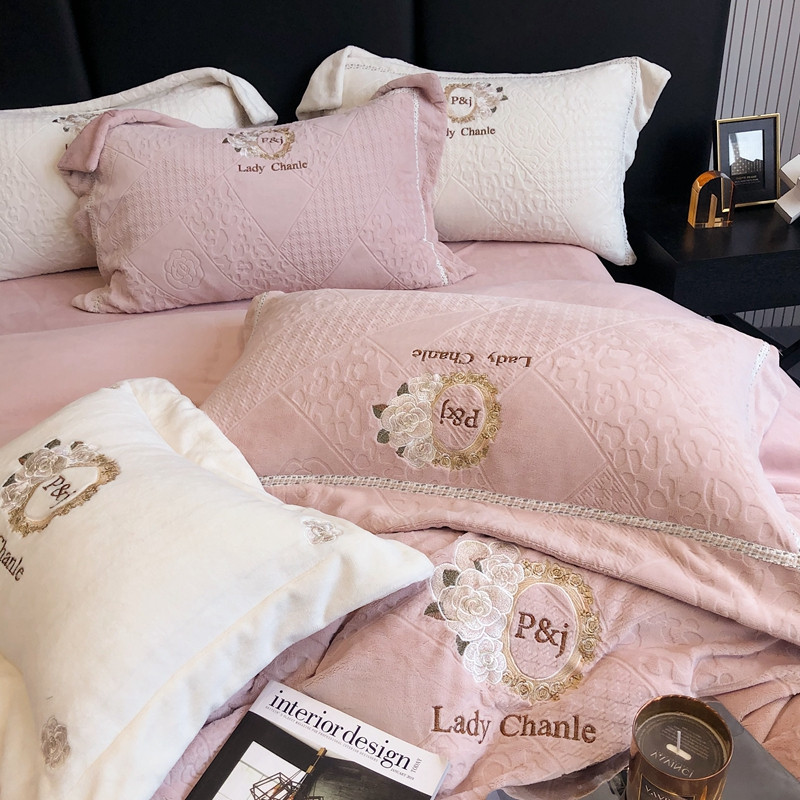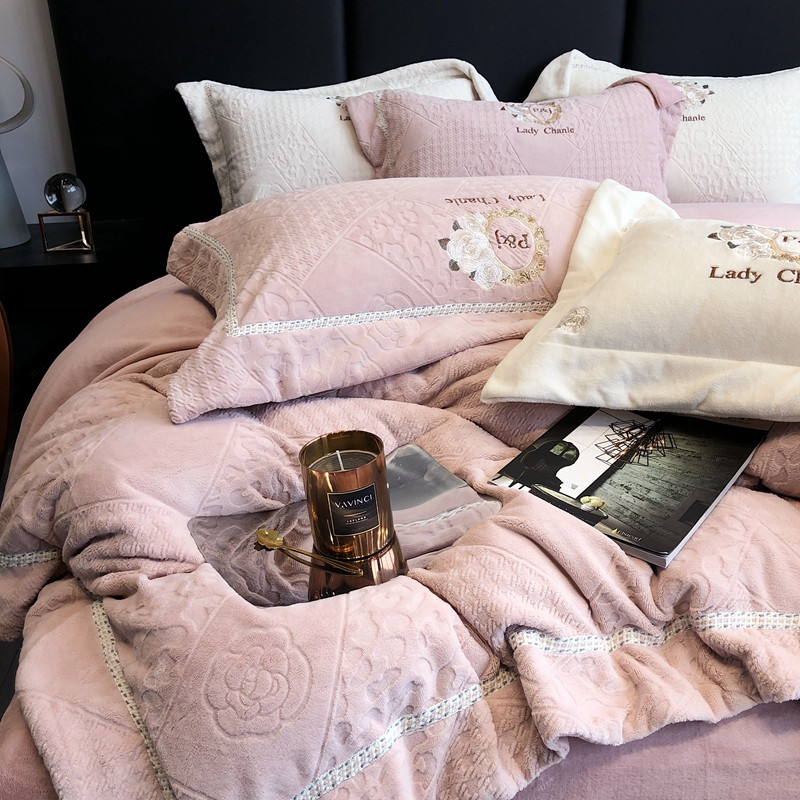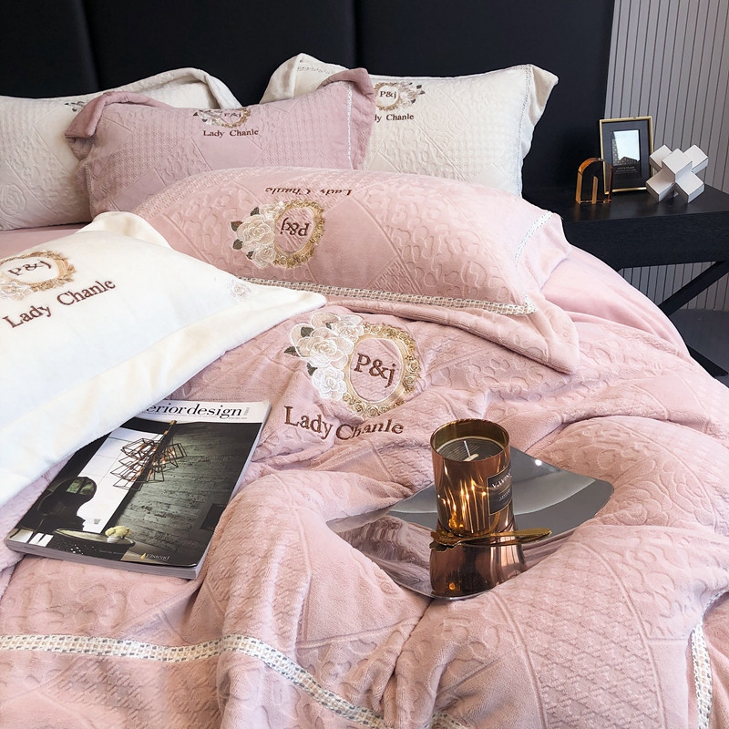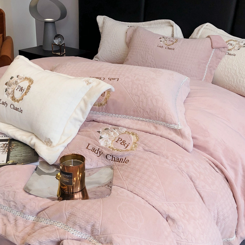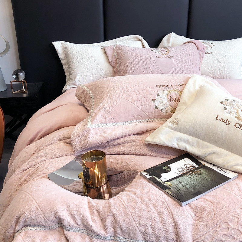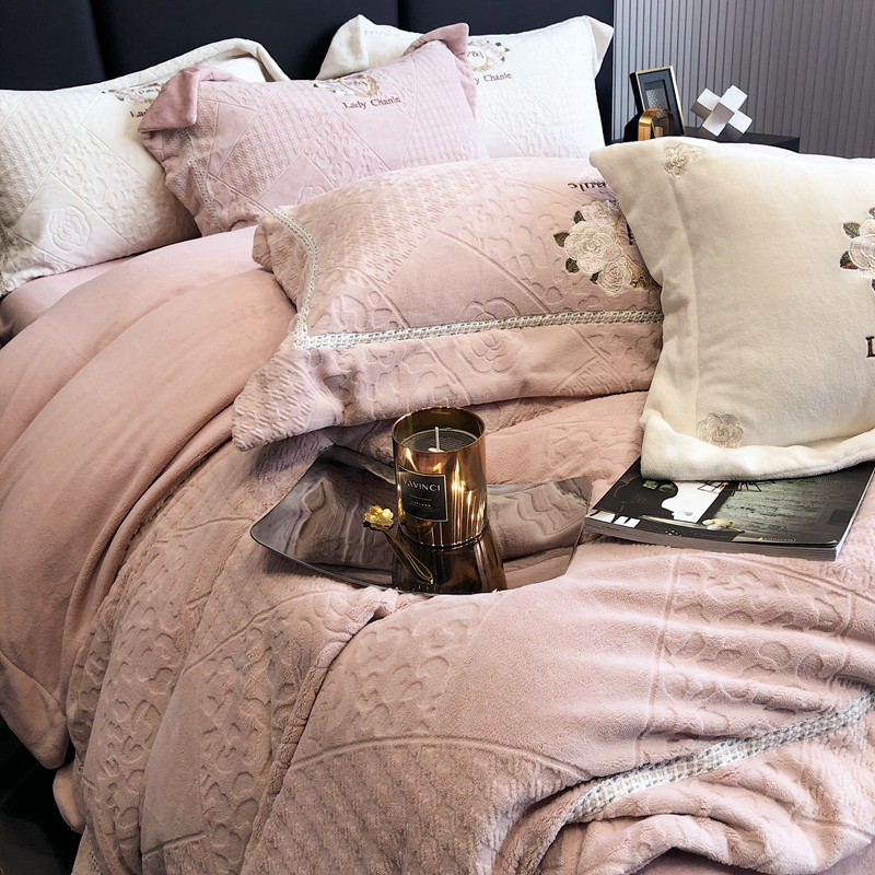 馨蕊 新款秋冬轻奢刺绣煦暖绒四件套-莫奈 (图一) 莫奈-蔷薇粉