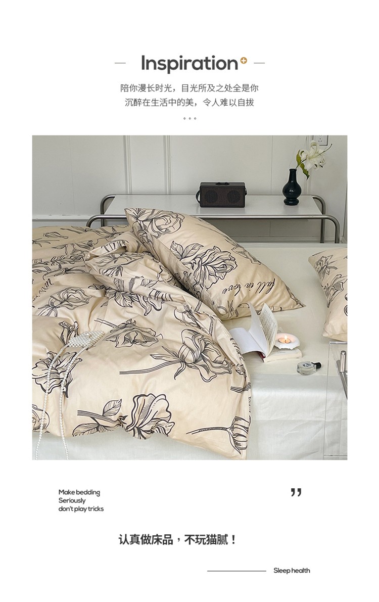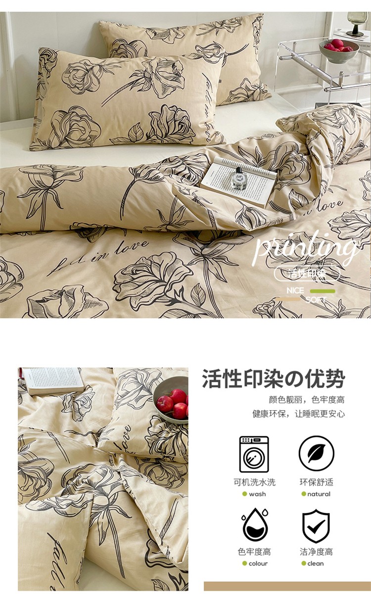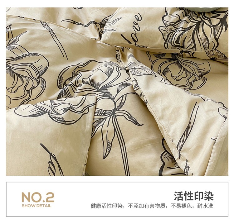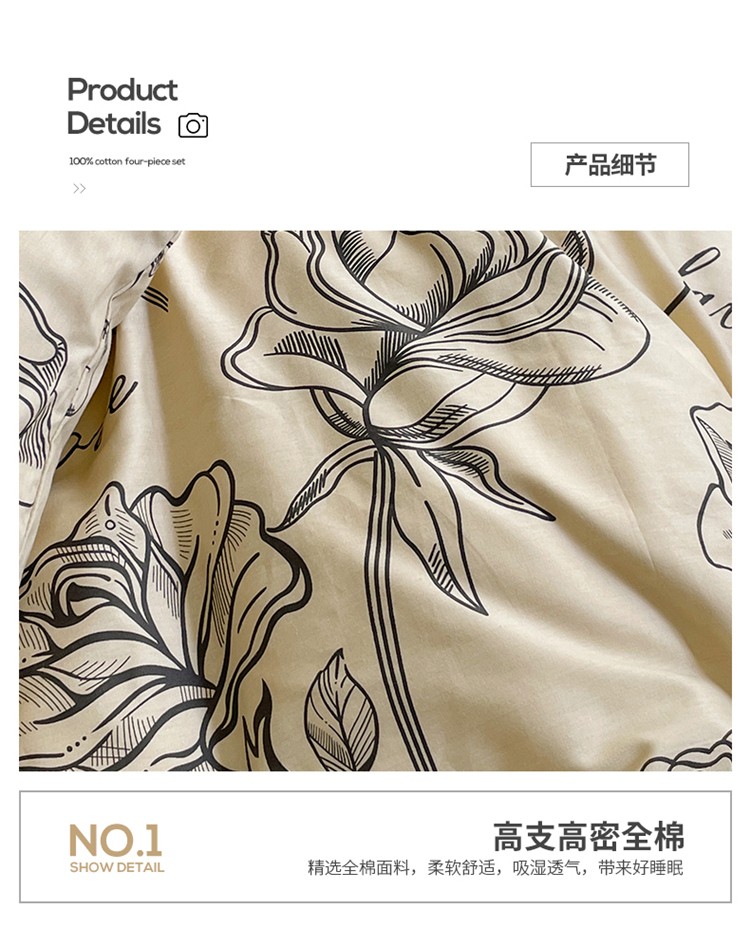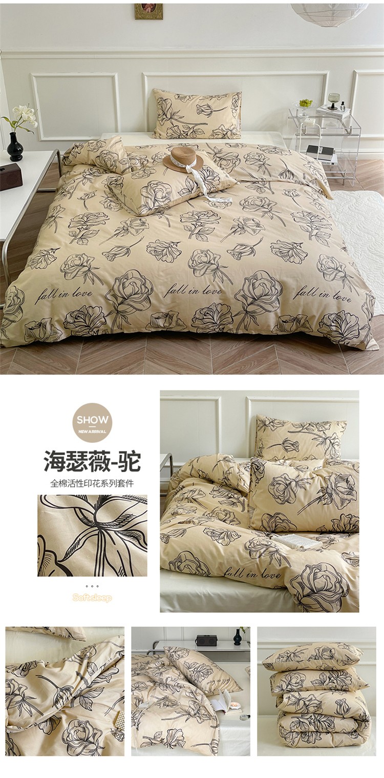 商品名称:窝米 2022秋季新品活性印花全棉四件套12款 海瑟薇(驼)