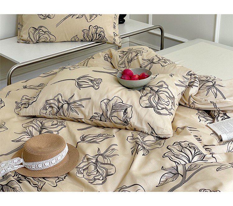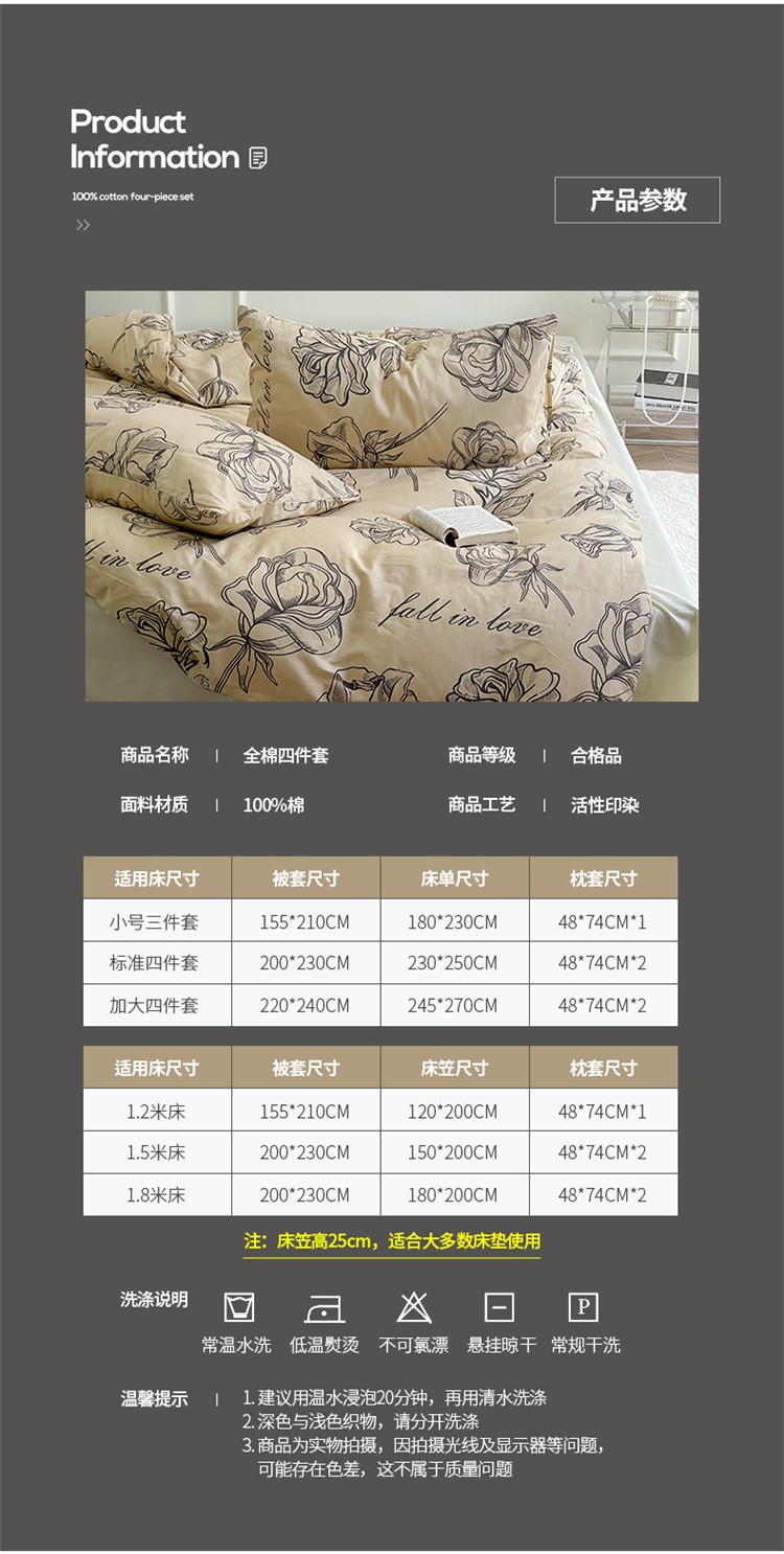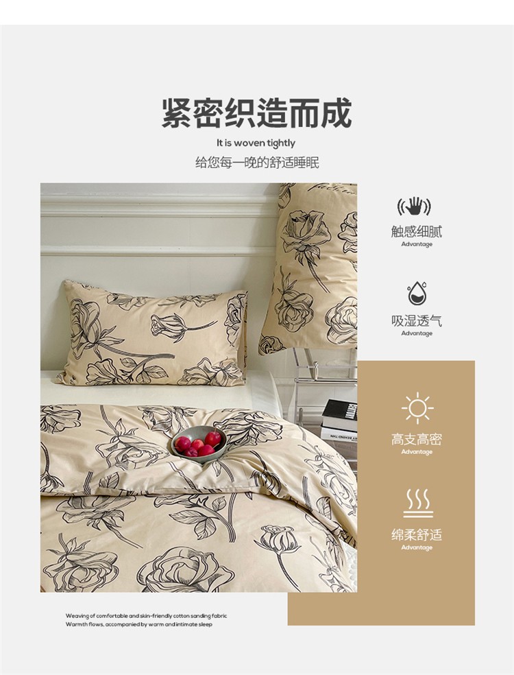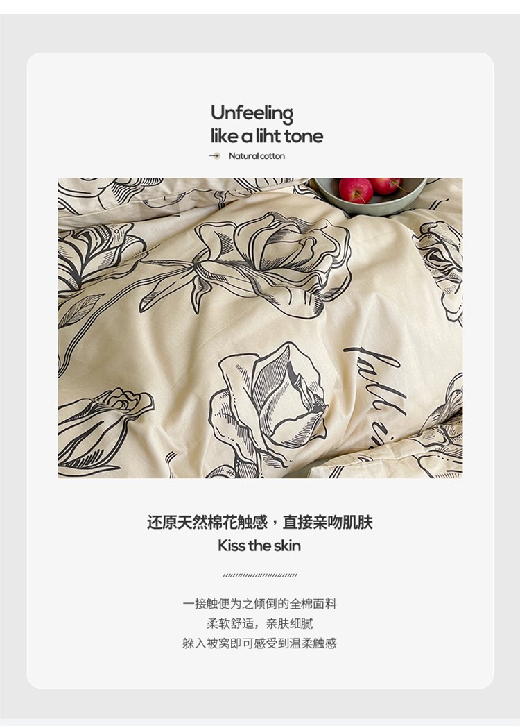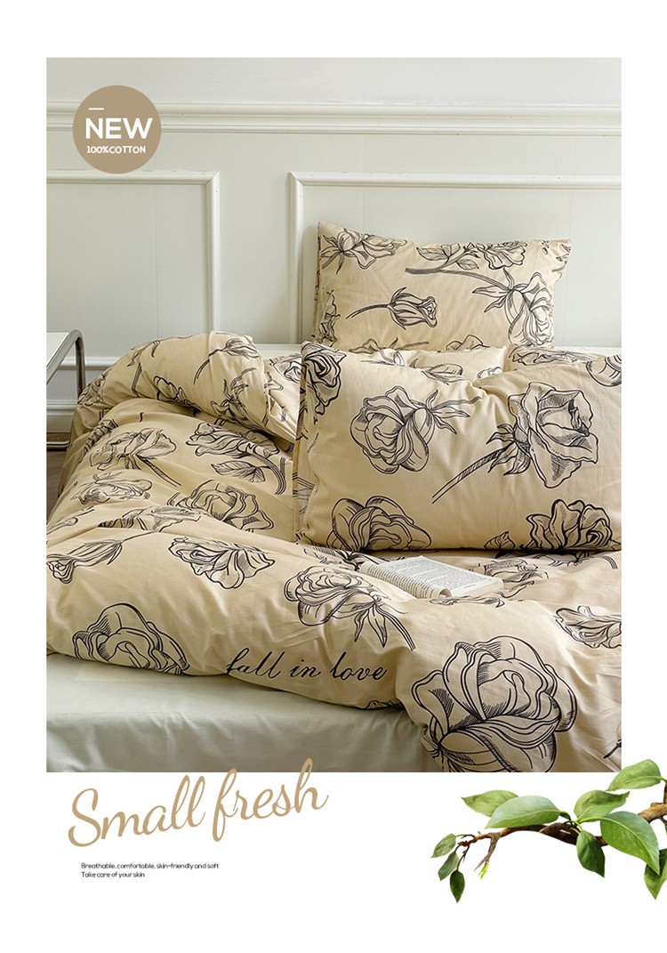 商品名称:窝米 2022秋季新品活性印花全棉四件套12款 海瑟薇(驼)