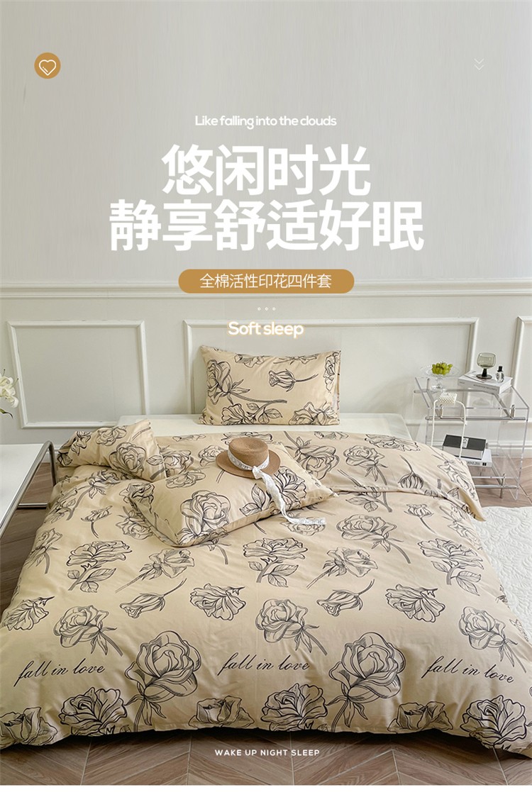窝米 2022秋季新品活性印花全棉四件套12款 海瑟薇(驼)