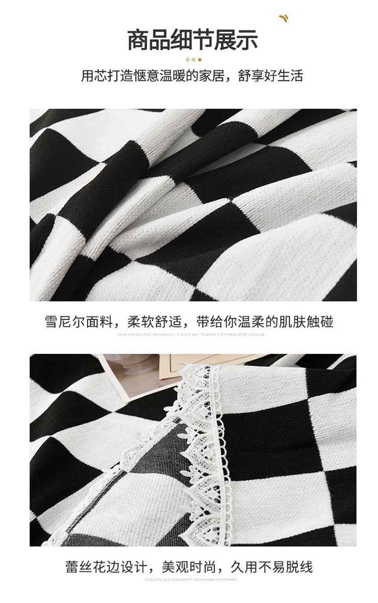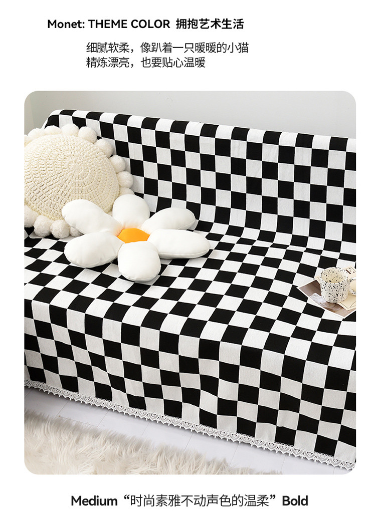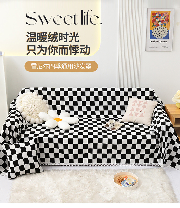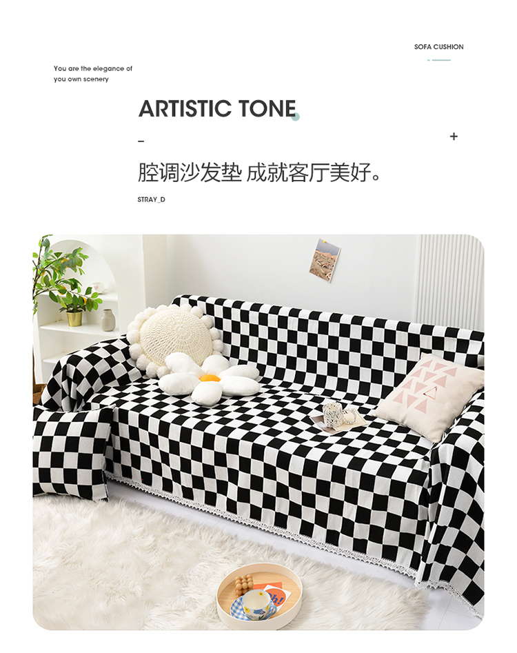 当前位置: 91家纺网 > 商品网购 > 居家布艺 > 坐垫/椅垫/沙发垫 > 沙发 > 启博雪尼尔四季通用沙发罩雪尼尔沙发盖布沙发套沙发垫-金典花边款 黑白格