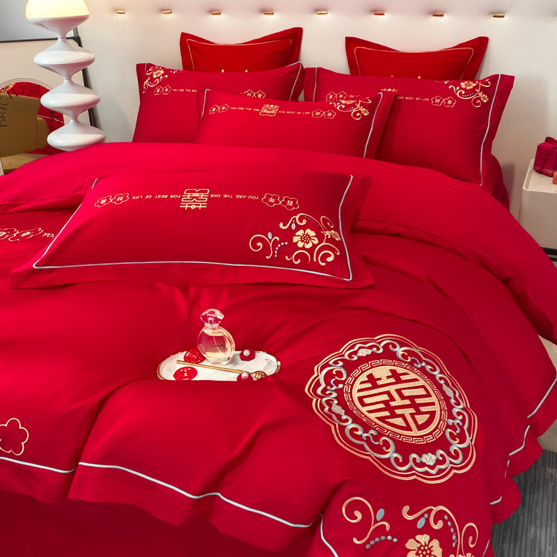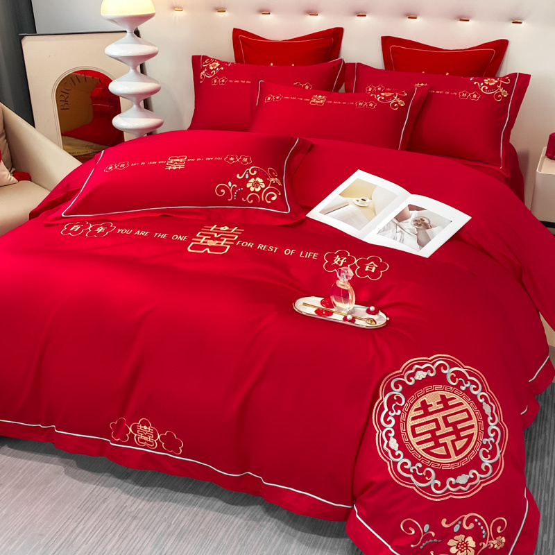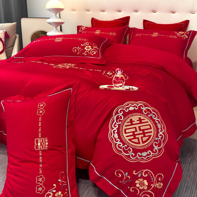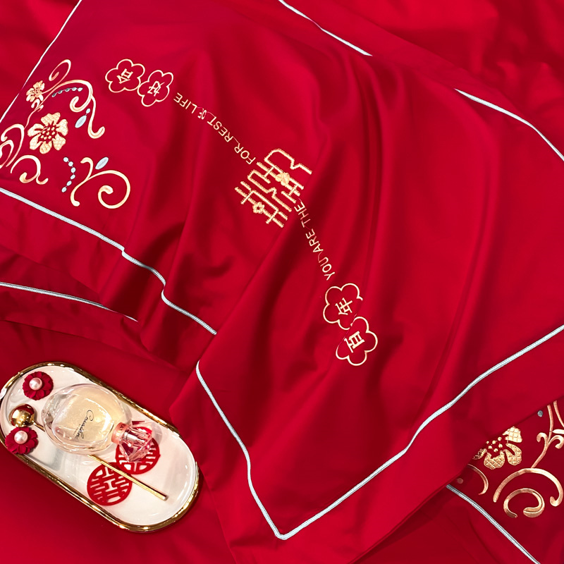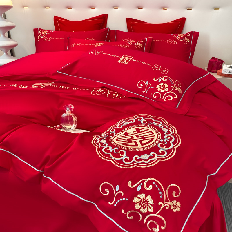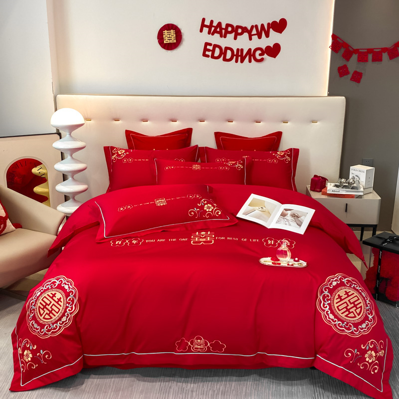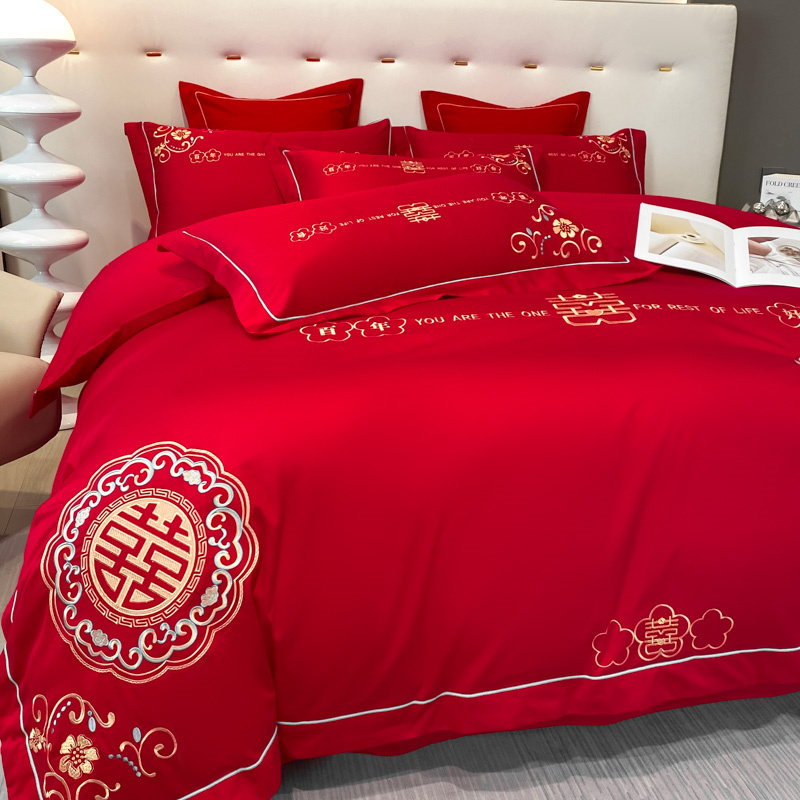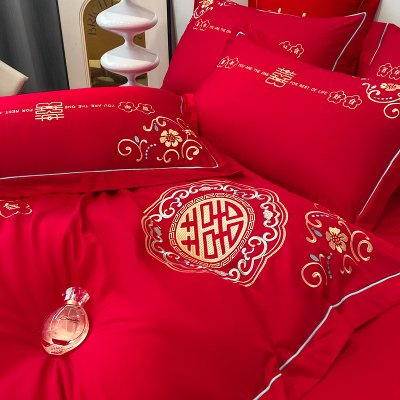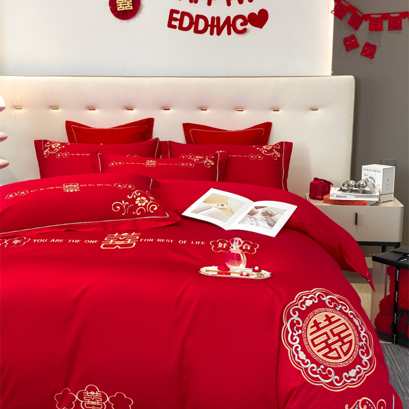 (总)金麦家纺 2025新款亲肤磨毛刺绣婚庆四件套,大喜,喜结良缘,喜愿,吾家有喜,喜爱,玫瑰有约