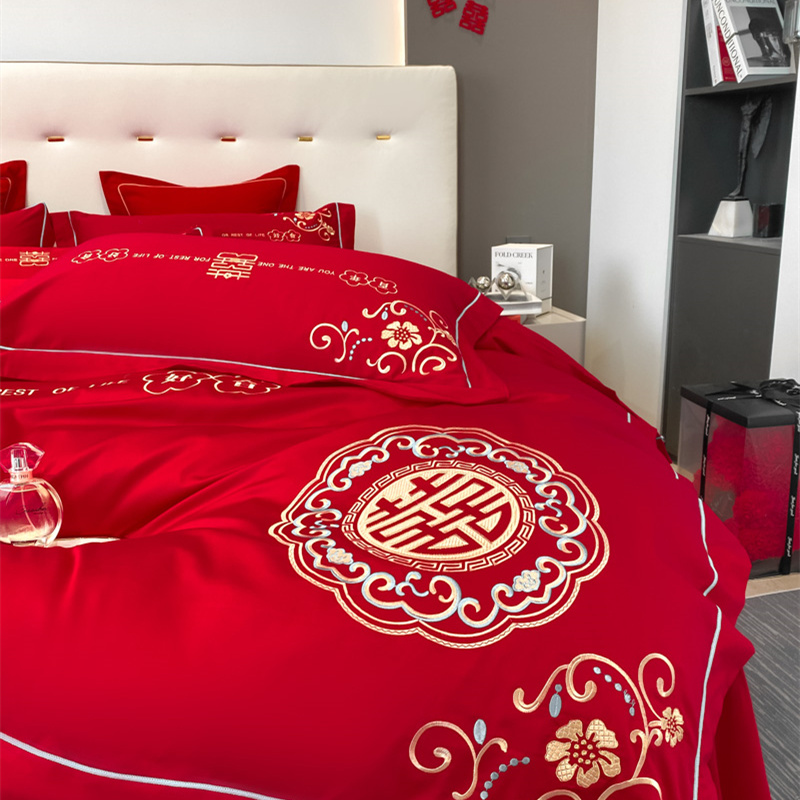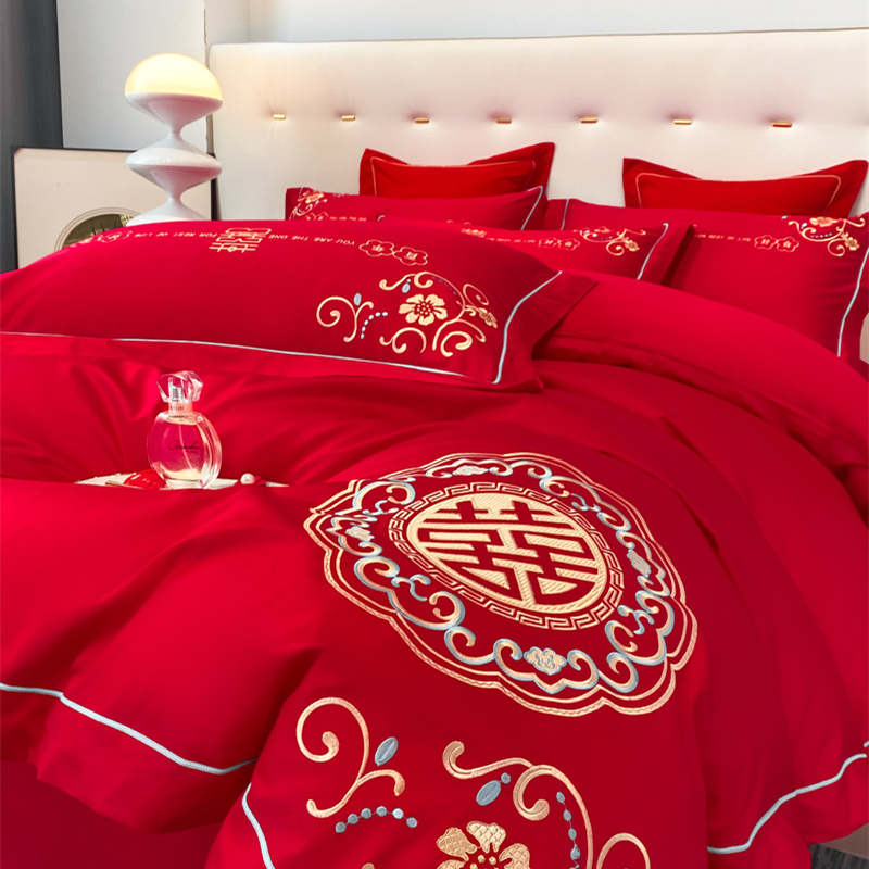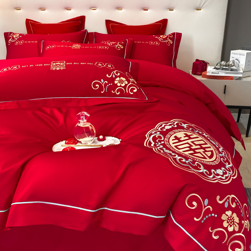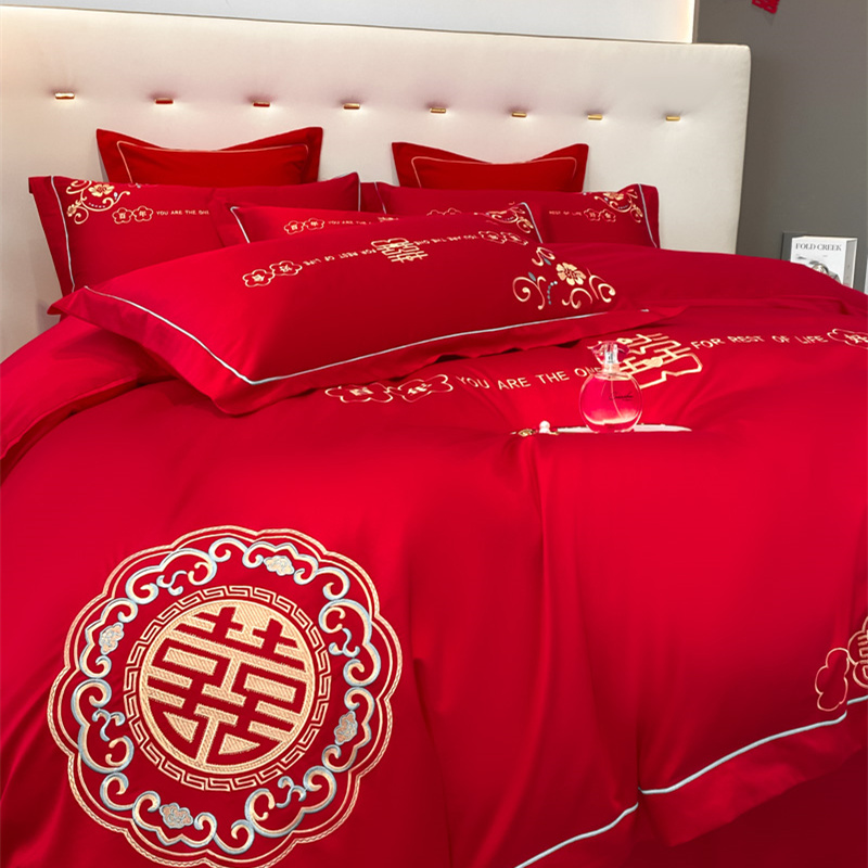 (总)金麦家纺 2025新款亲肤提花面料刺绣婚庆四件套-婚庆系列,热情玫瑰,喜悦,永恒