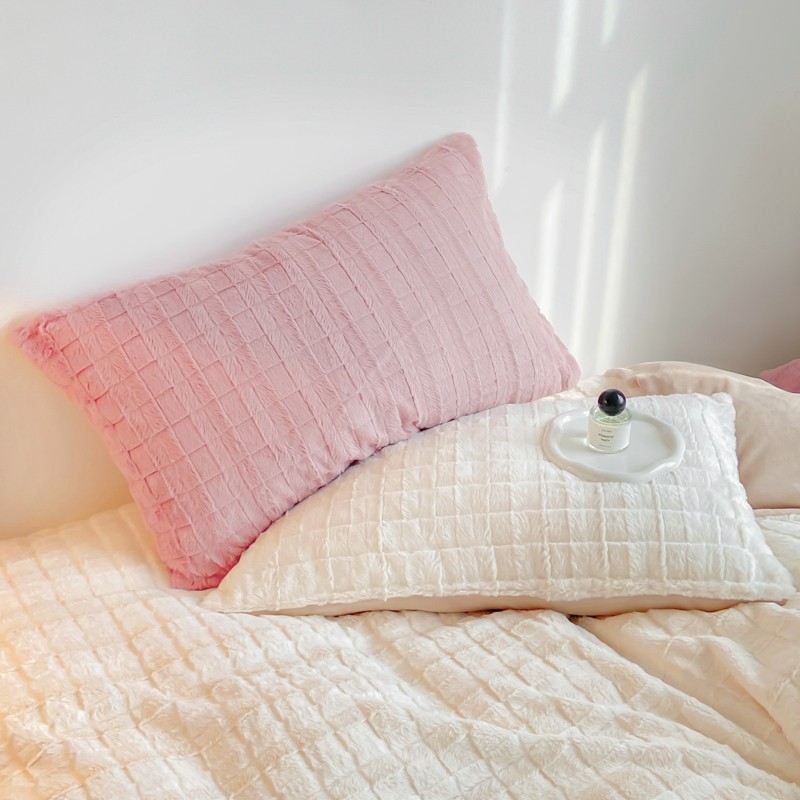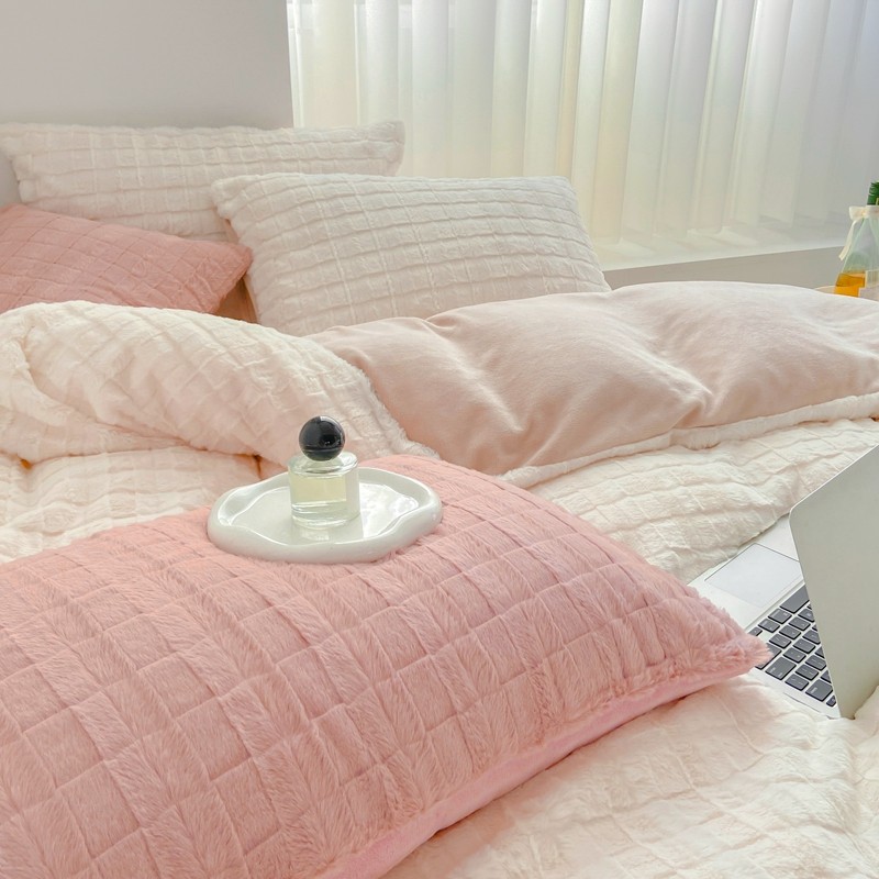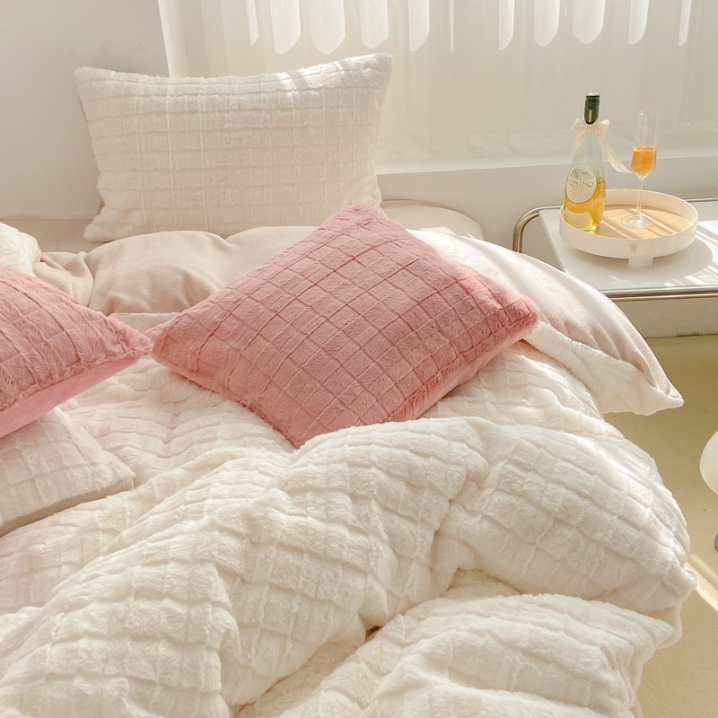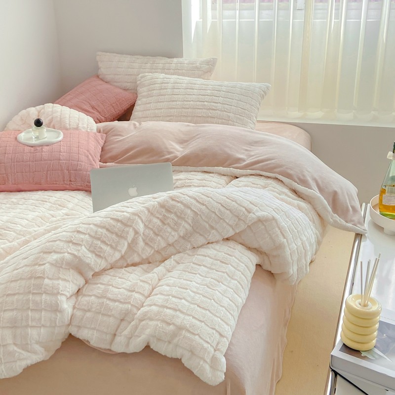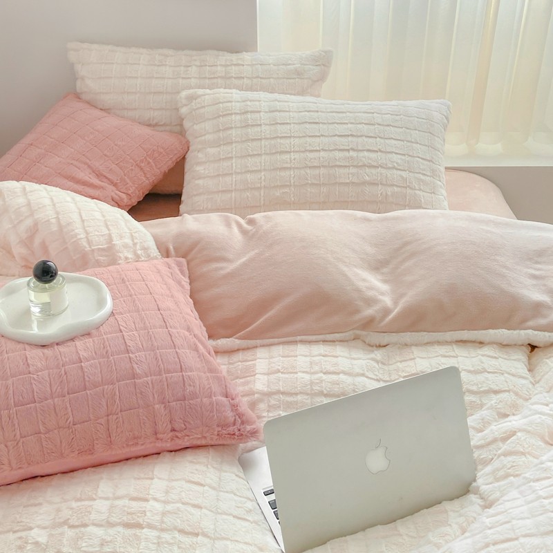 (总)仟网汇 2025新款热款剪花绒毛毛球绒水晶绒四件套,粉色