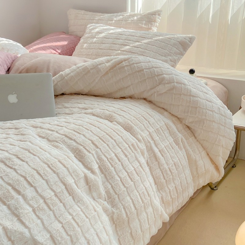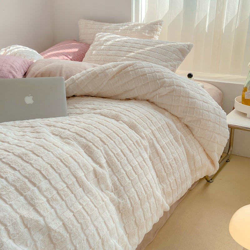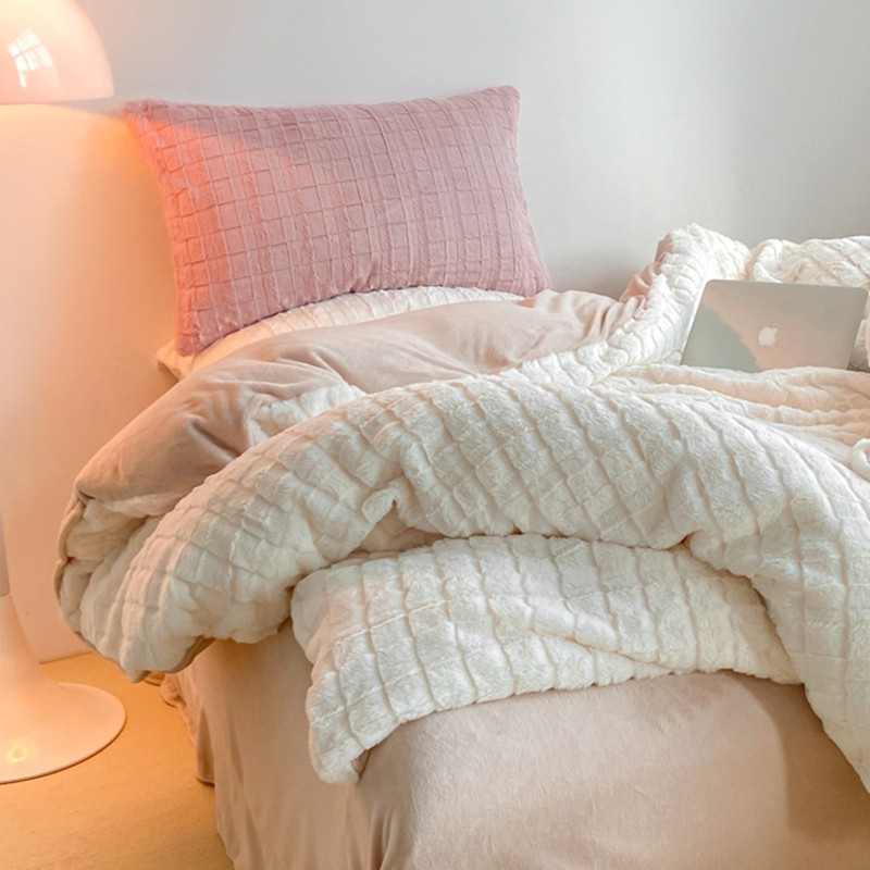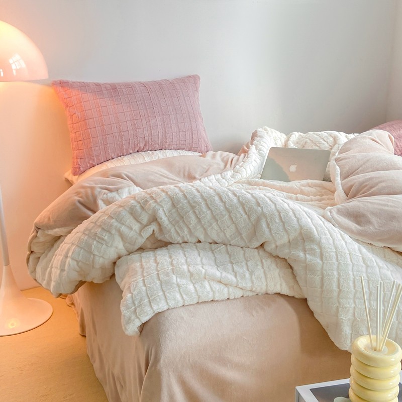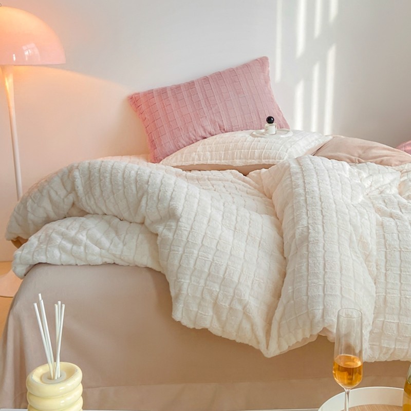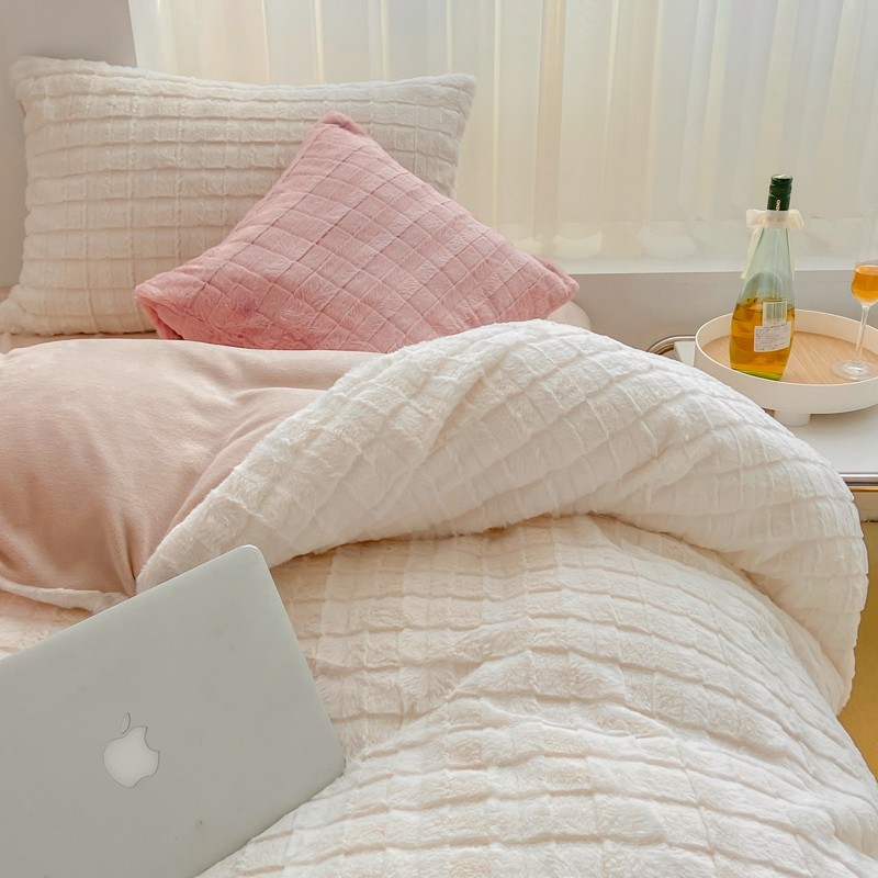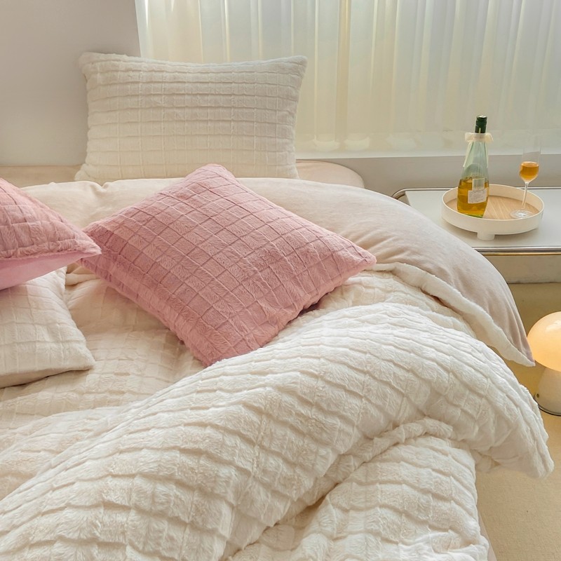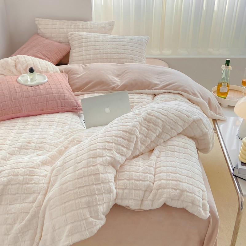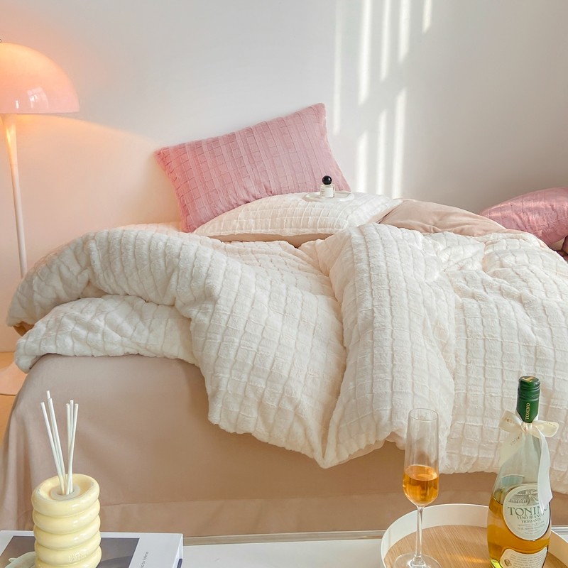 仟网汇 2022新款獭兔毛立体剪花牛奶绒四件套 奶白咖
