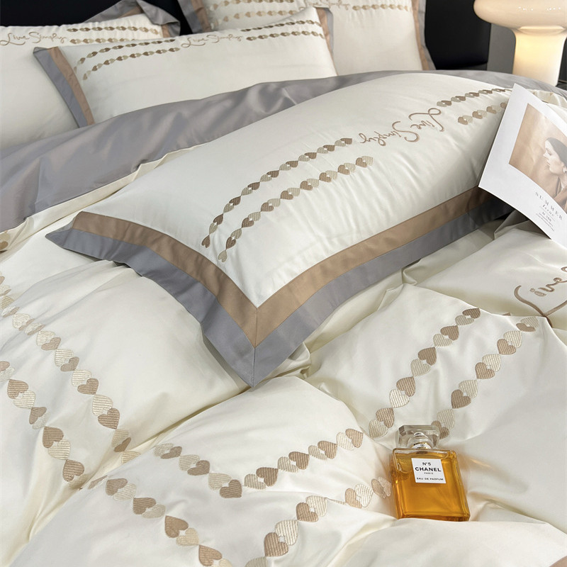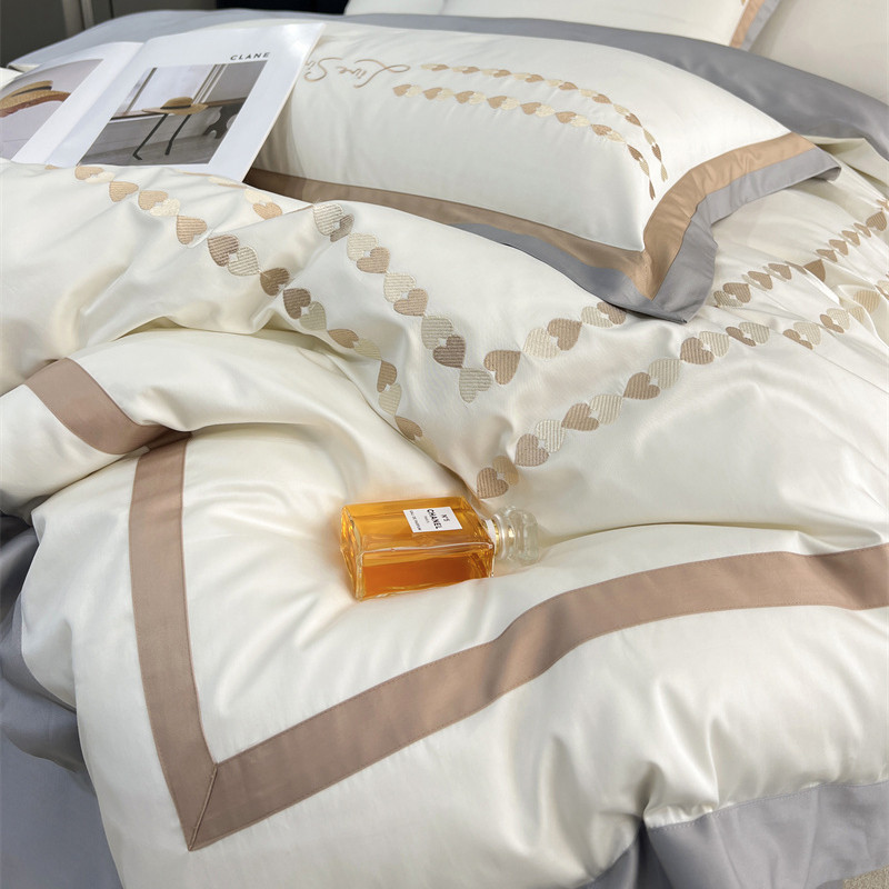 (总)时亿 2023新款100支长绒棉四件套心晴,心晴-粉,心晴-灰,心晴-蓝