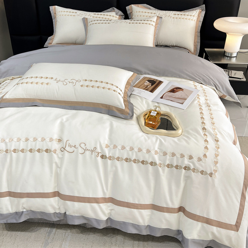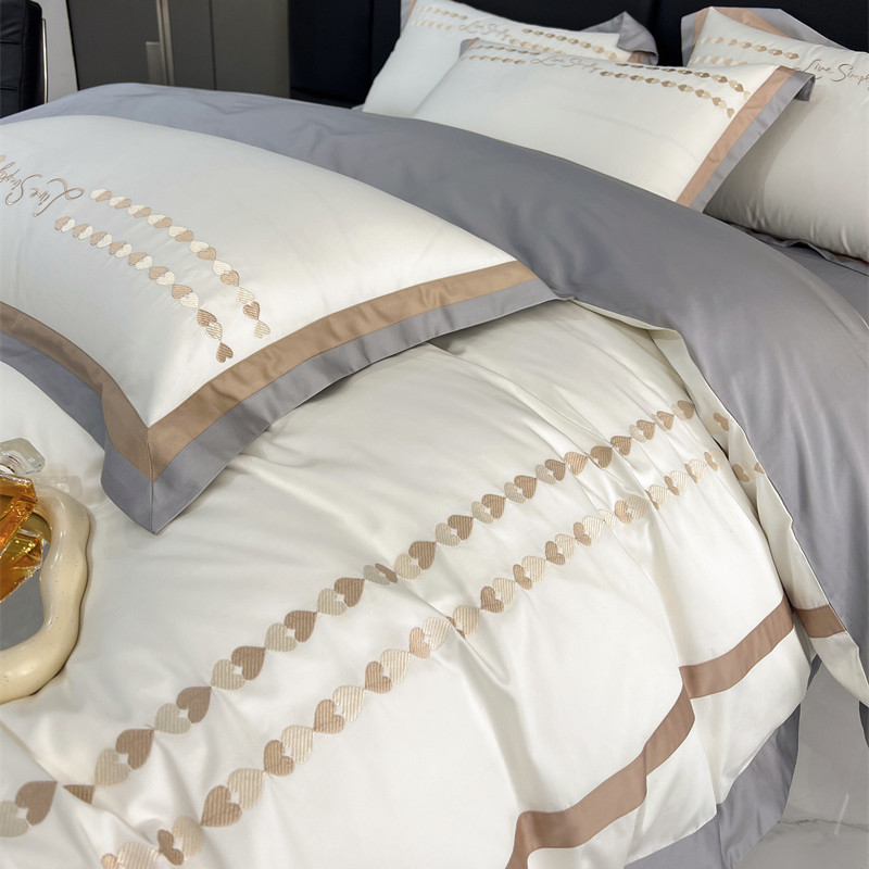 时亿 2023新款100支长绒棉四件套 心晴-灰