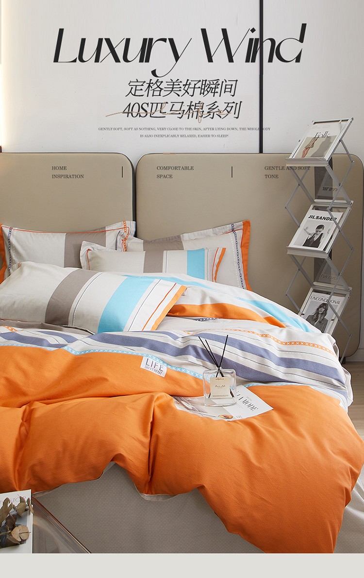 商品名称:曼秀琳 2023新款40s匹马棉印花系列四件套 莫比尔-桔