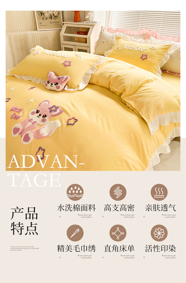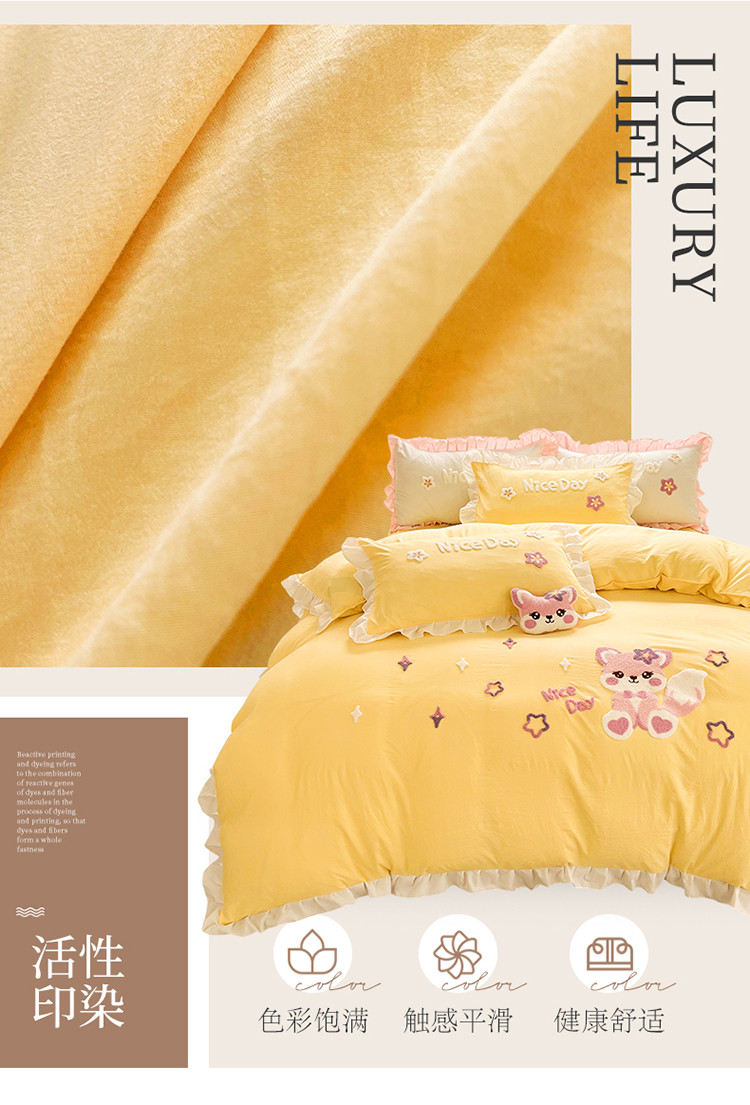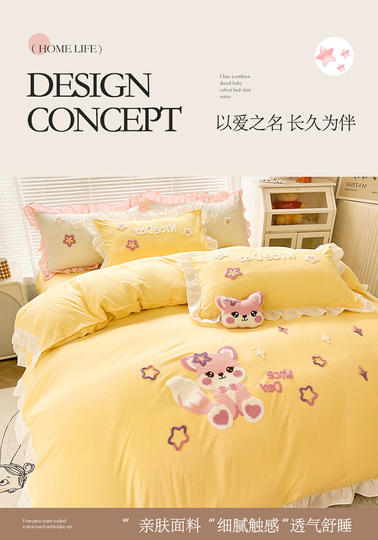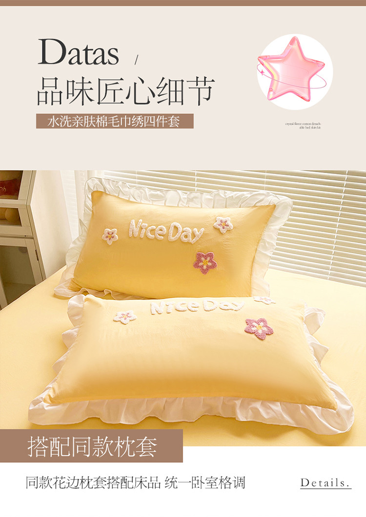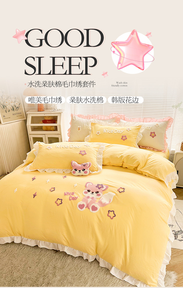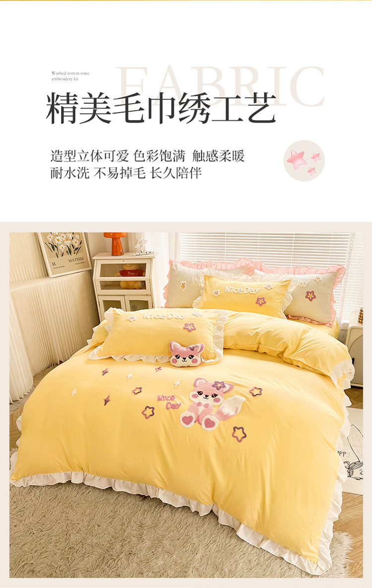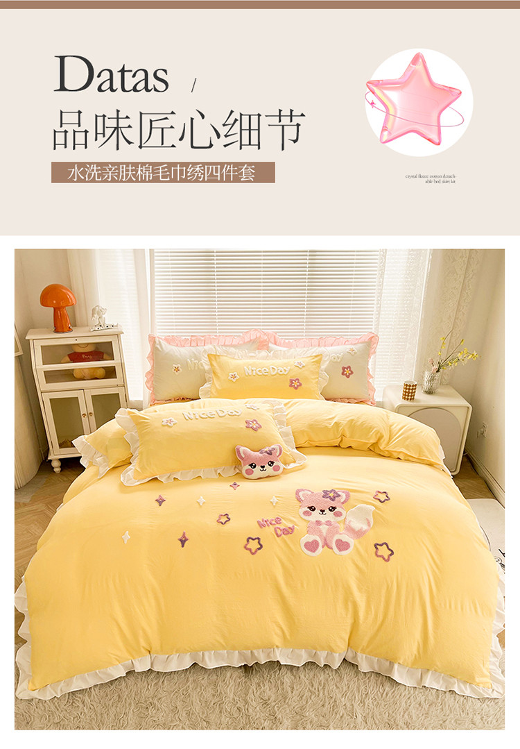 当前位置: 91家纺网 > 商品网购 > 床品套件 > 四件套 > 毛巾绣四件套 > 泉欣家纺23款小精灵系列加厚水洗亲肤棉毛巾绣四件套小精灵浅黄