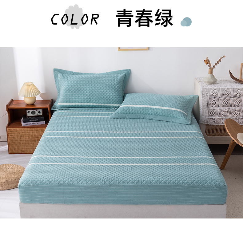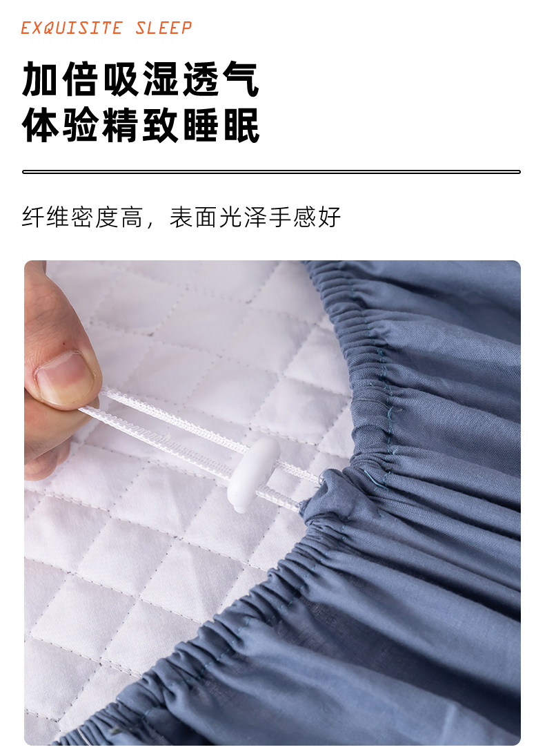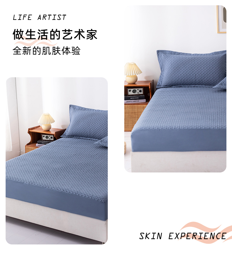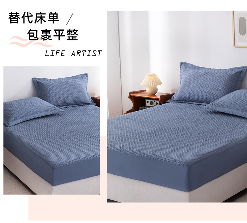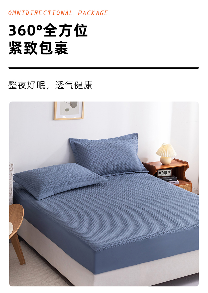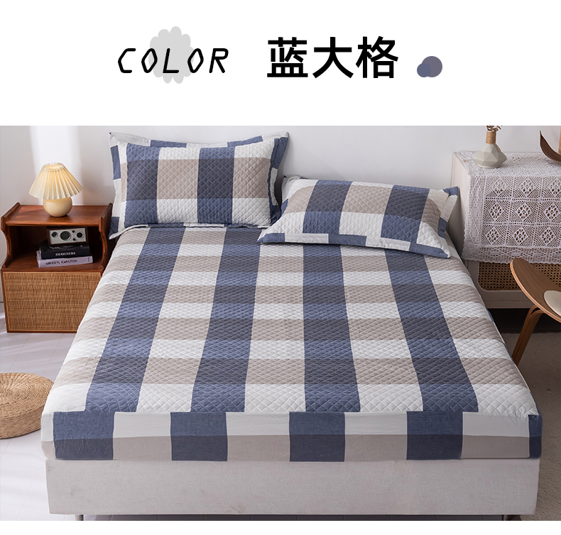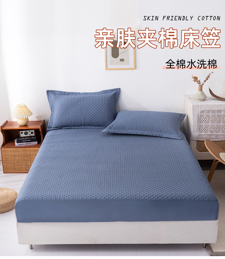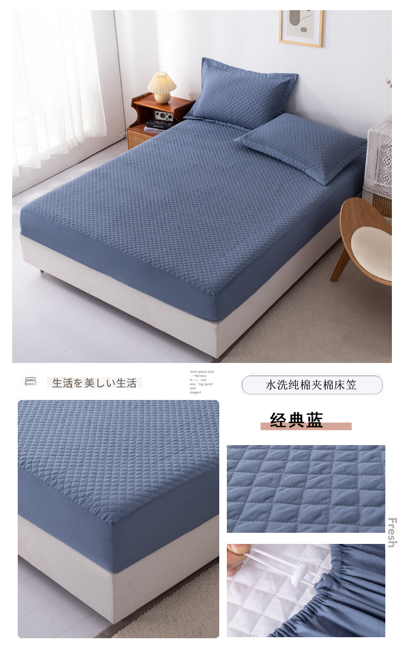 • 91家纺网 家纺一手货源 找家纺 优乐家纺 2025新款全棉床笠水洗纯棉夹棉绗缝加厚床笠 经典蓝
