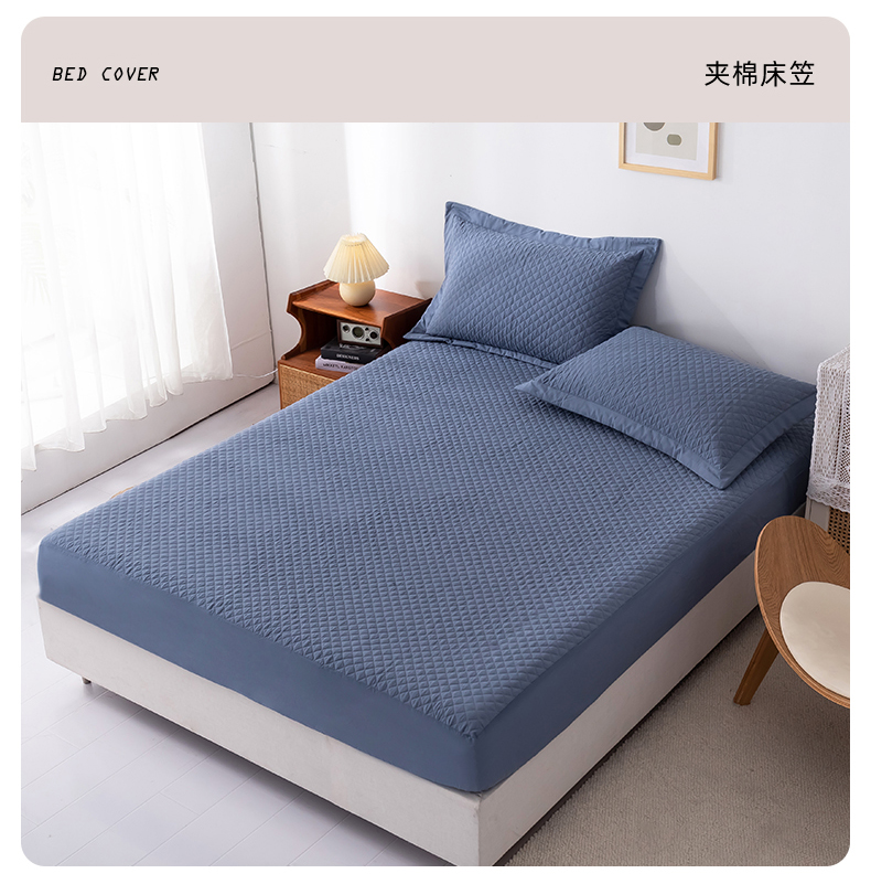 优乐家纺 2025新款全棉床笠水洗纯棉夹棉绗缝加厚床笠 经典蓝