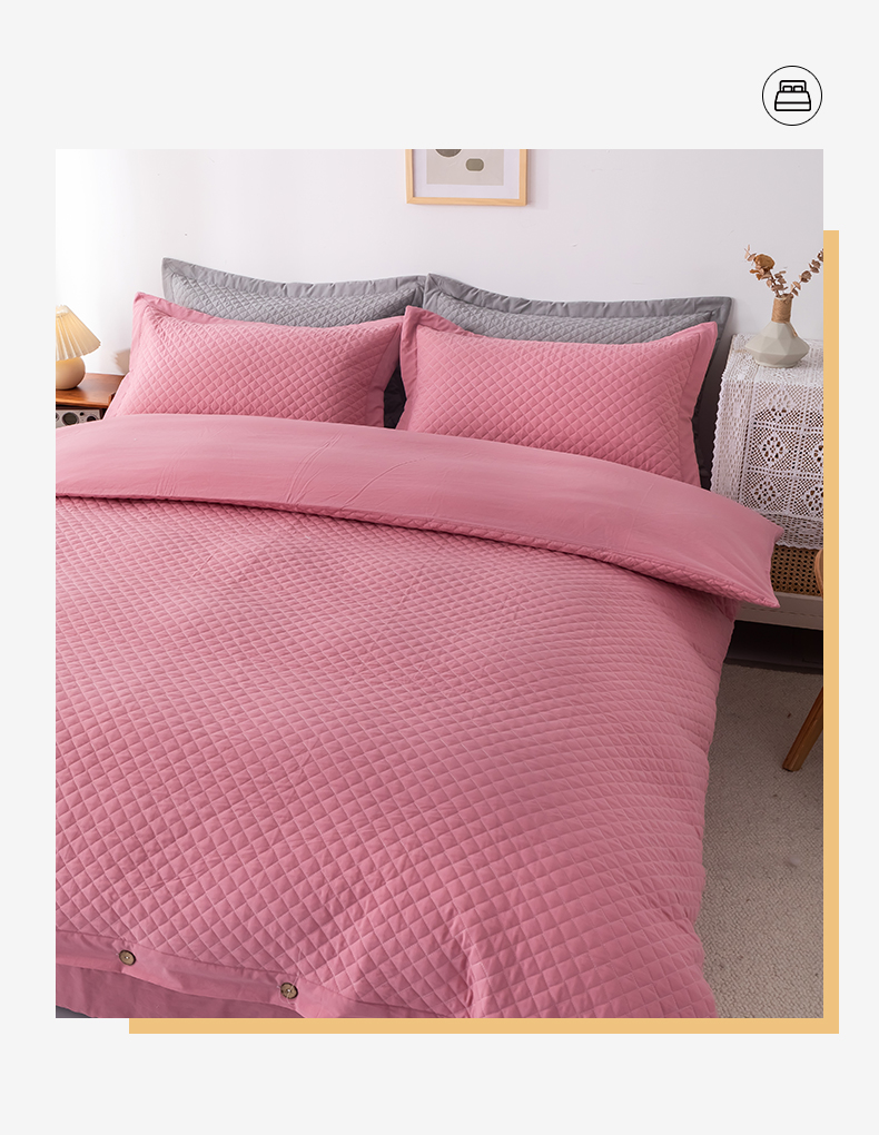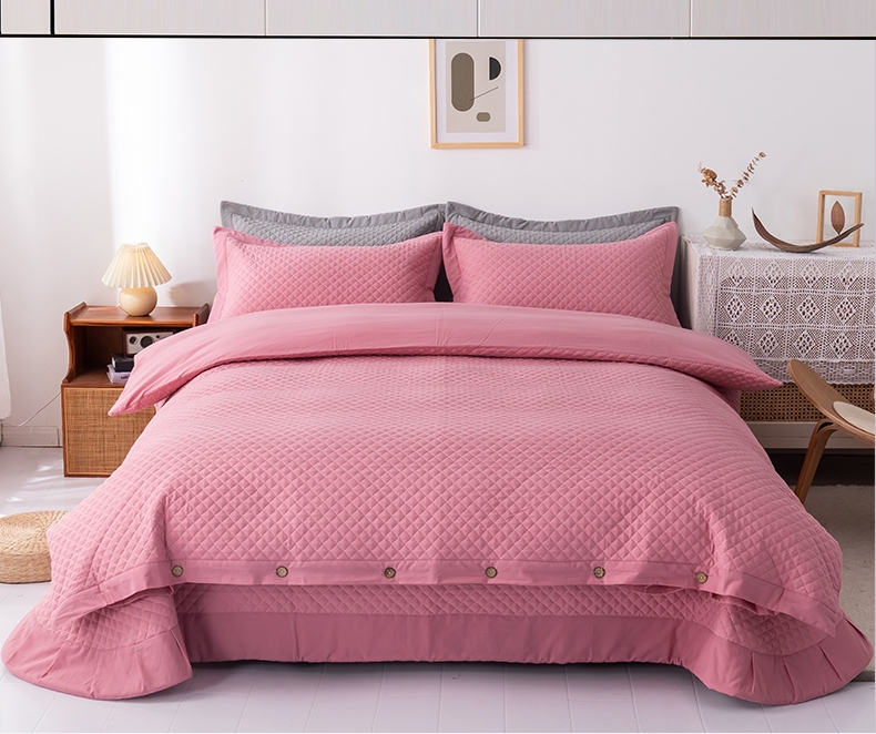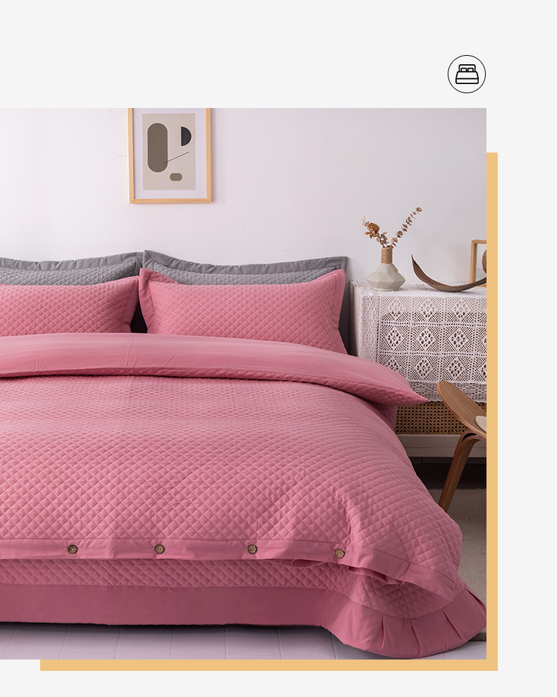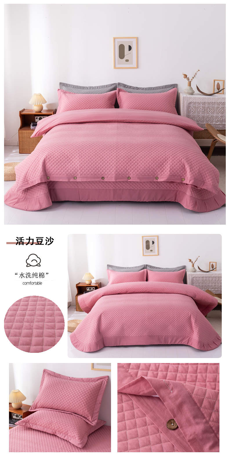 商品名称:优乐家纺 2025新款全棉四件套水洗纯棉夹棉绗缝加厚被罩 活力豆沙