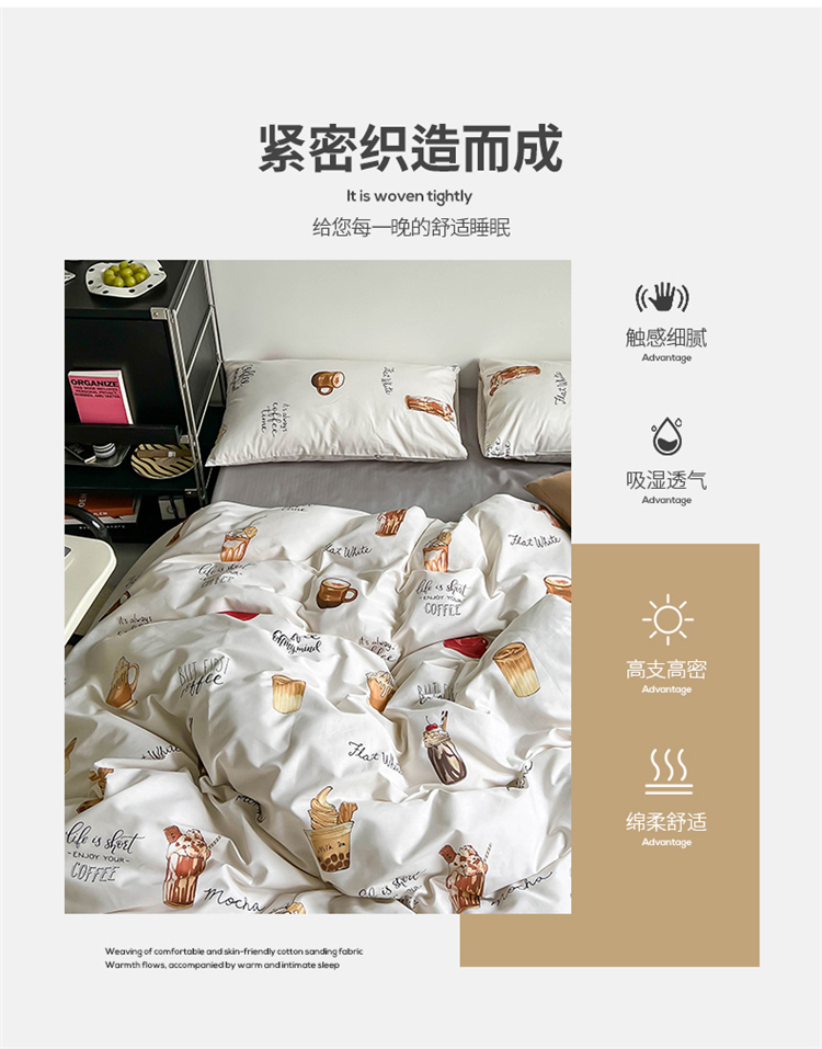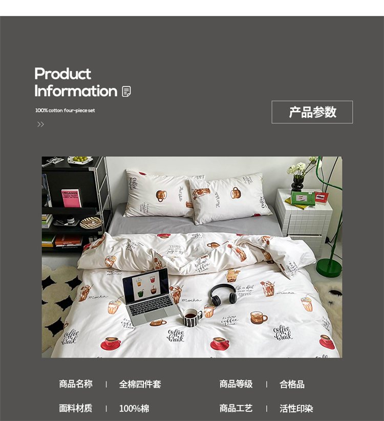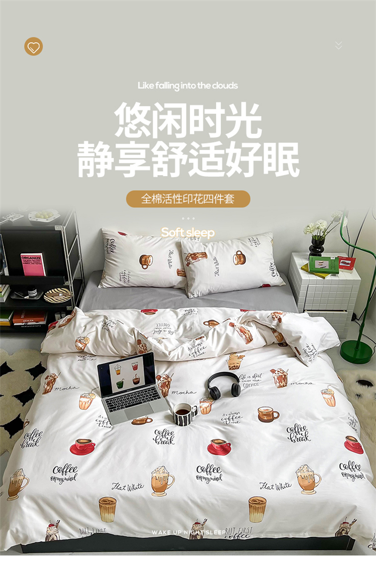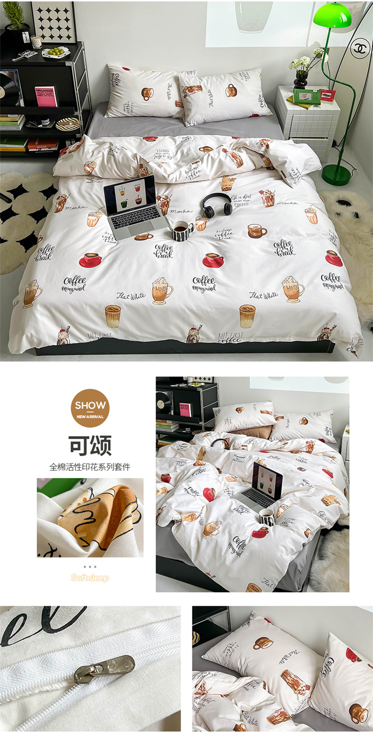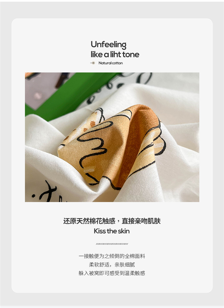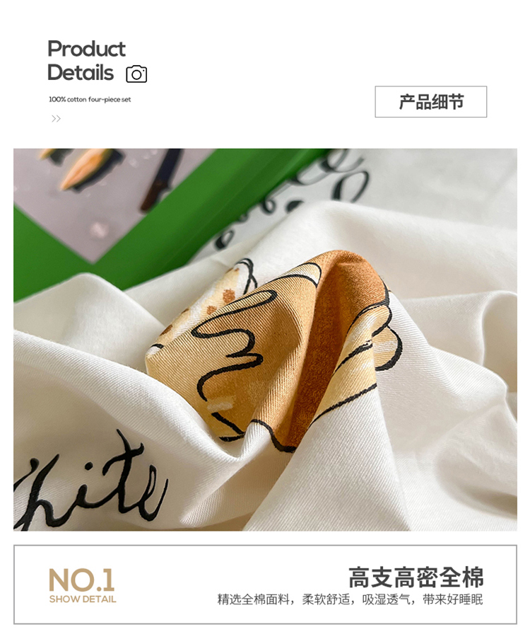 商品名称:窝米2023新款13370全棉四件套卡通简约款 可颂