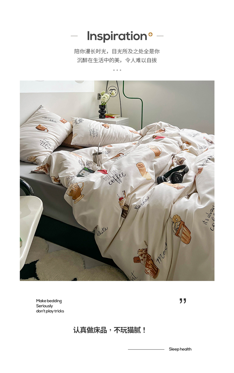 窝米2023新款13370全棉四件套卡通简约款 可颂