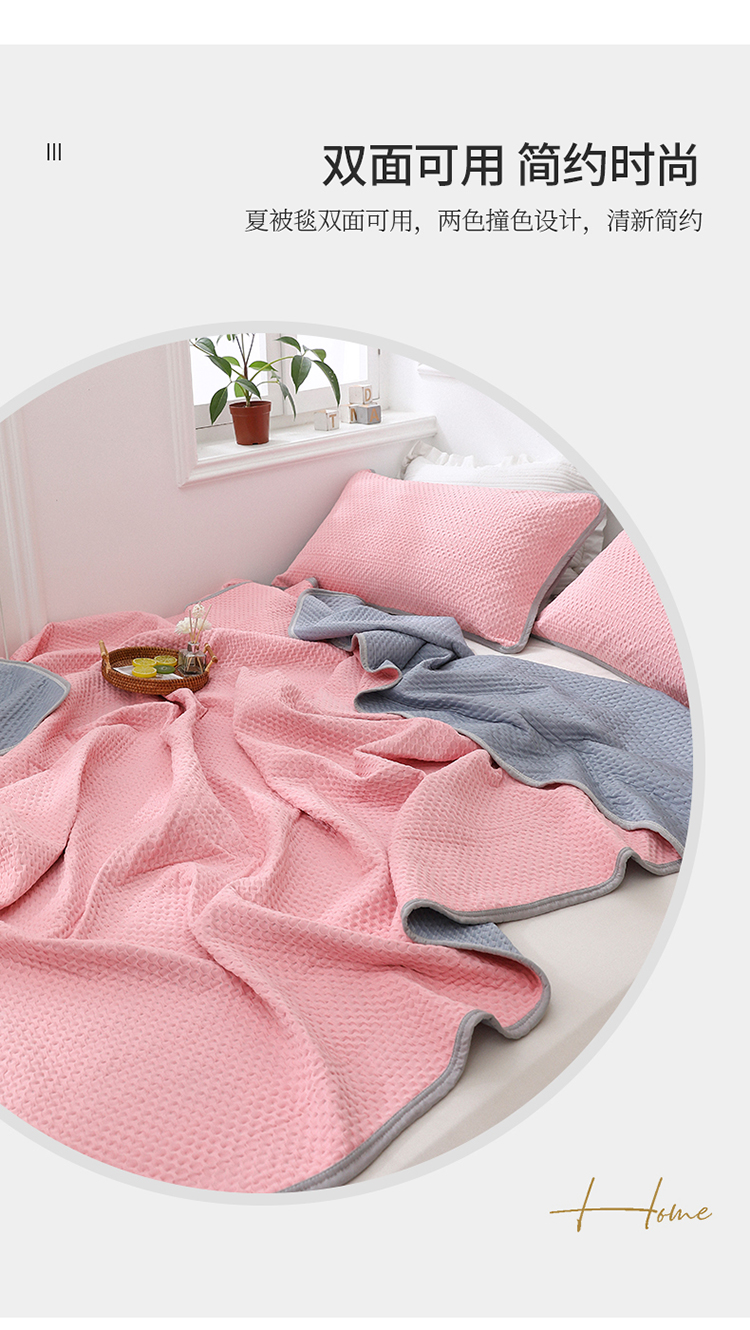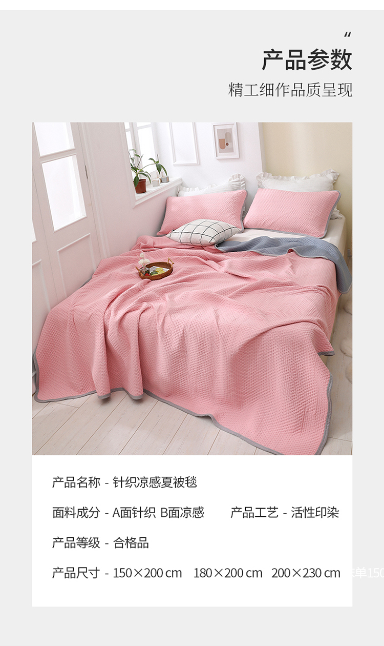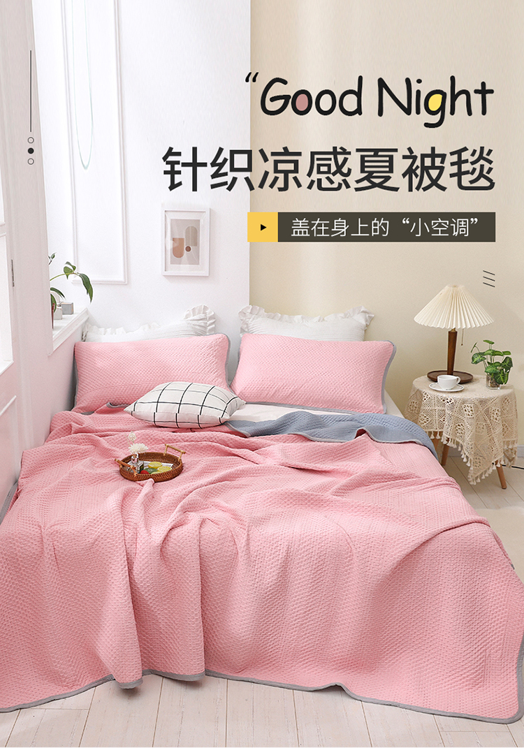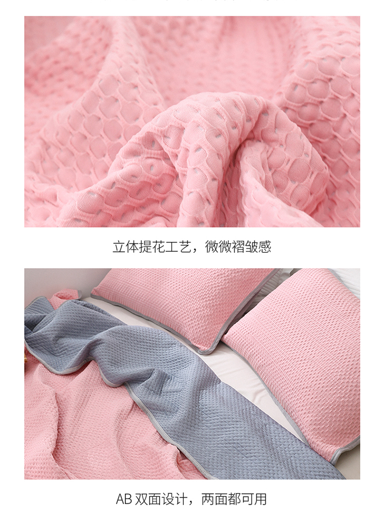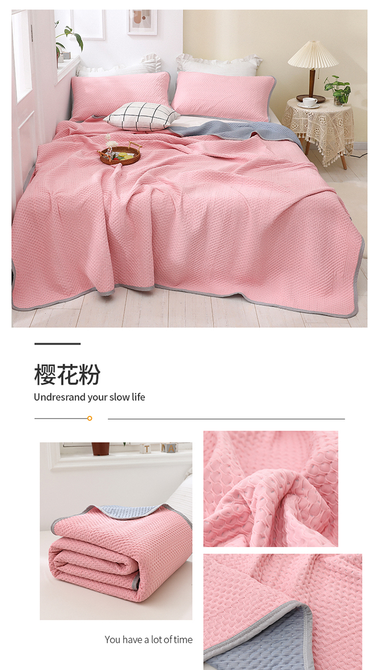 商品名称:琪琪阁2023新款华夫格针织提花亲肤舒适多功能凉感夏被 樱花粉
