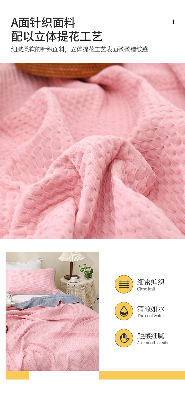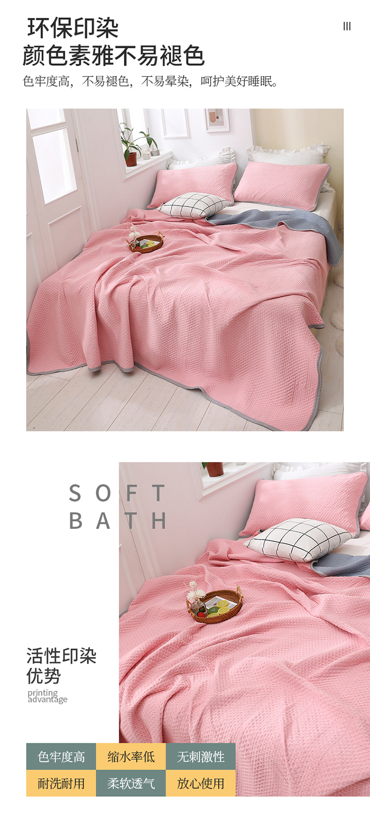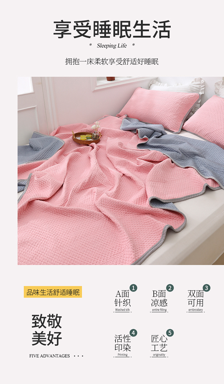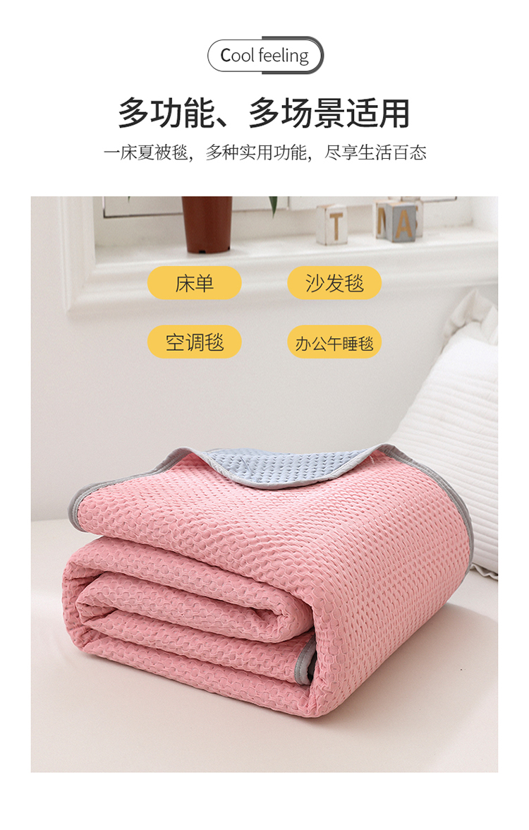 商品名称:琪琪阁2023新款华夫格针织提花亲肤舒适多功能凉感夏被 樱花粉