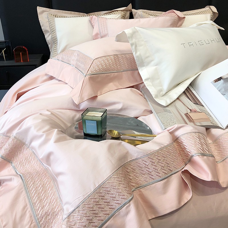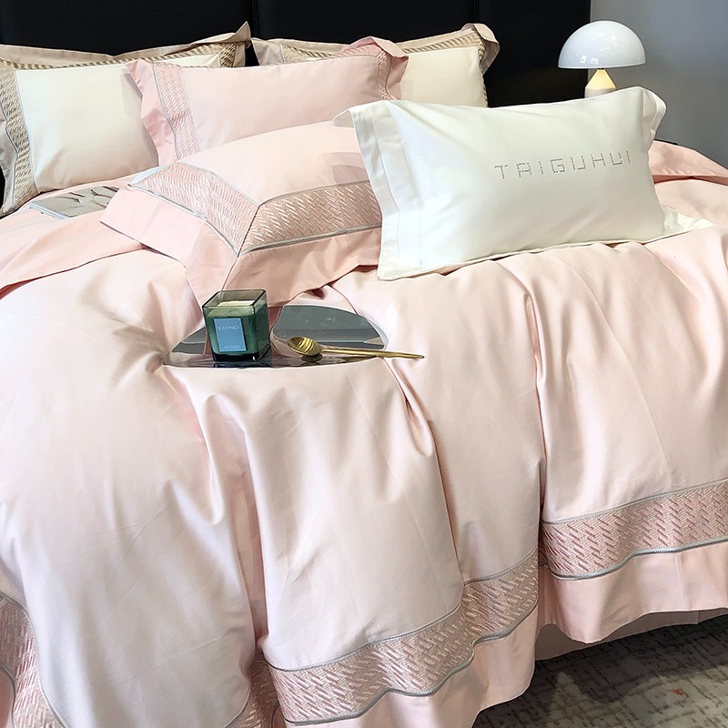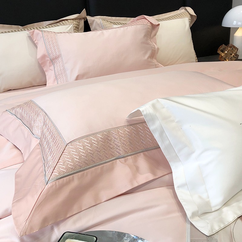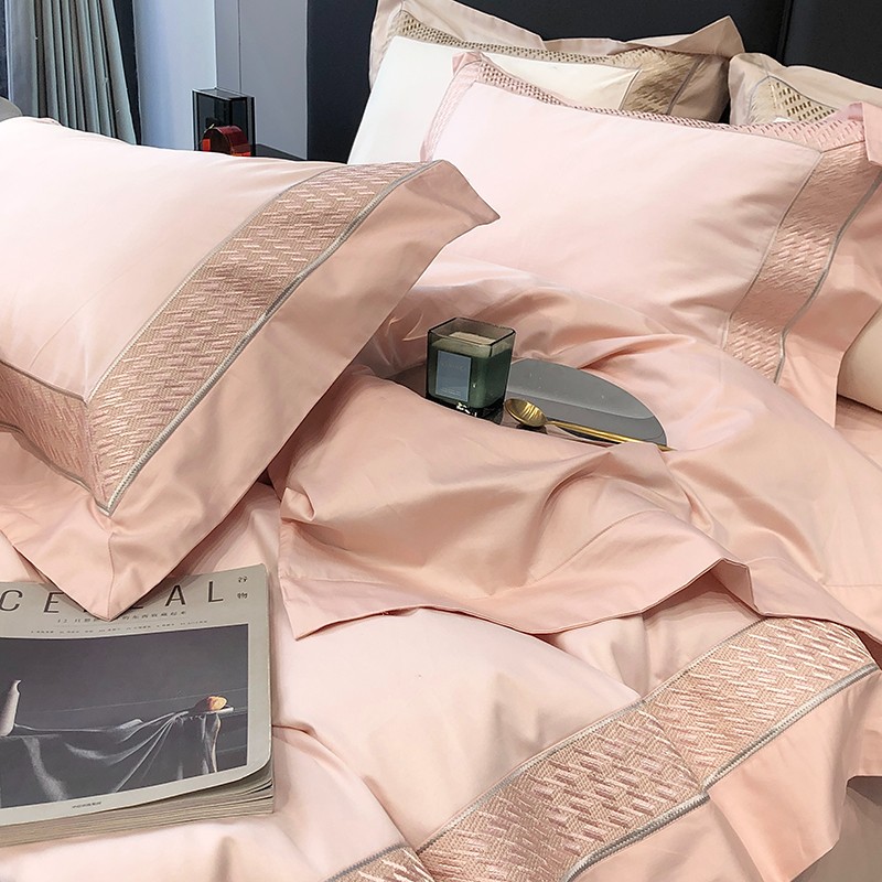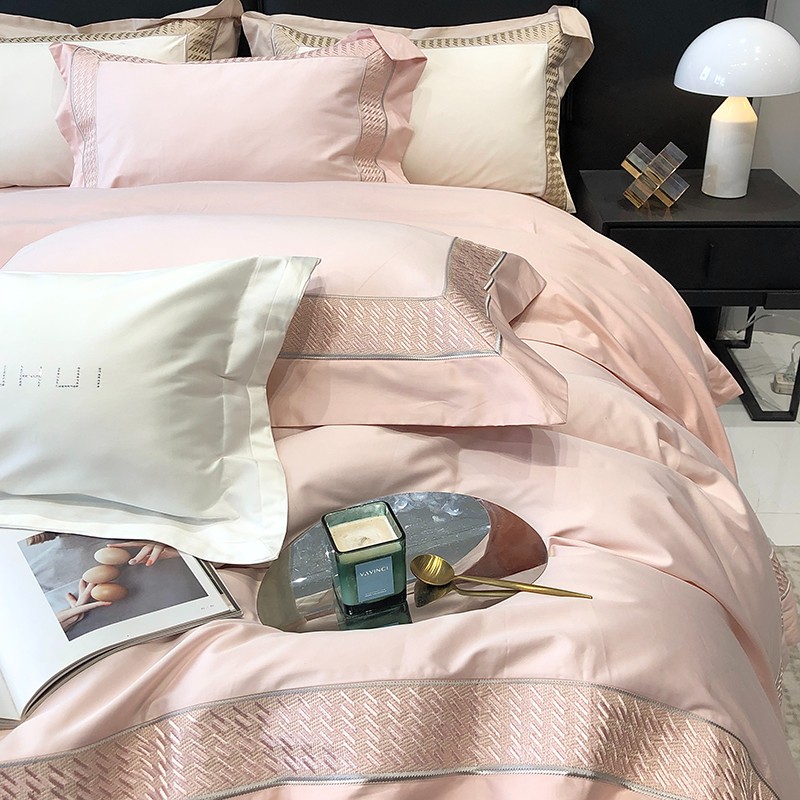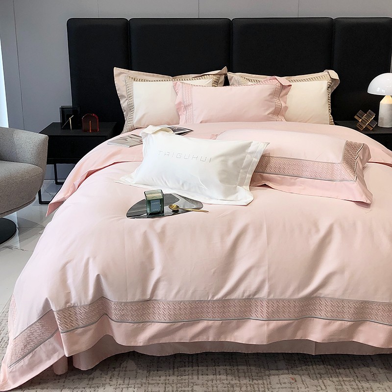 商品名称:太古汇 2023新款A类长绒棉刺绣千鸟格四件套-格伦格系列 长绒棉格伦格-粉色