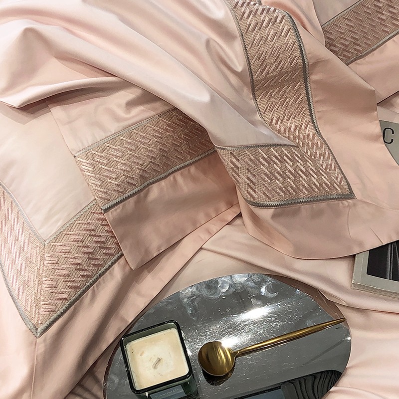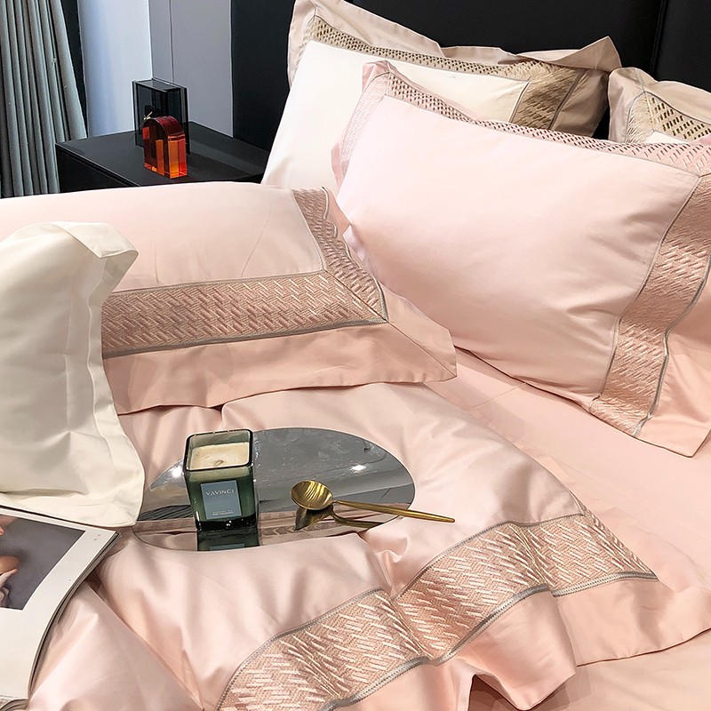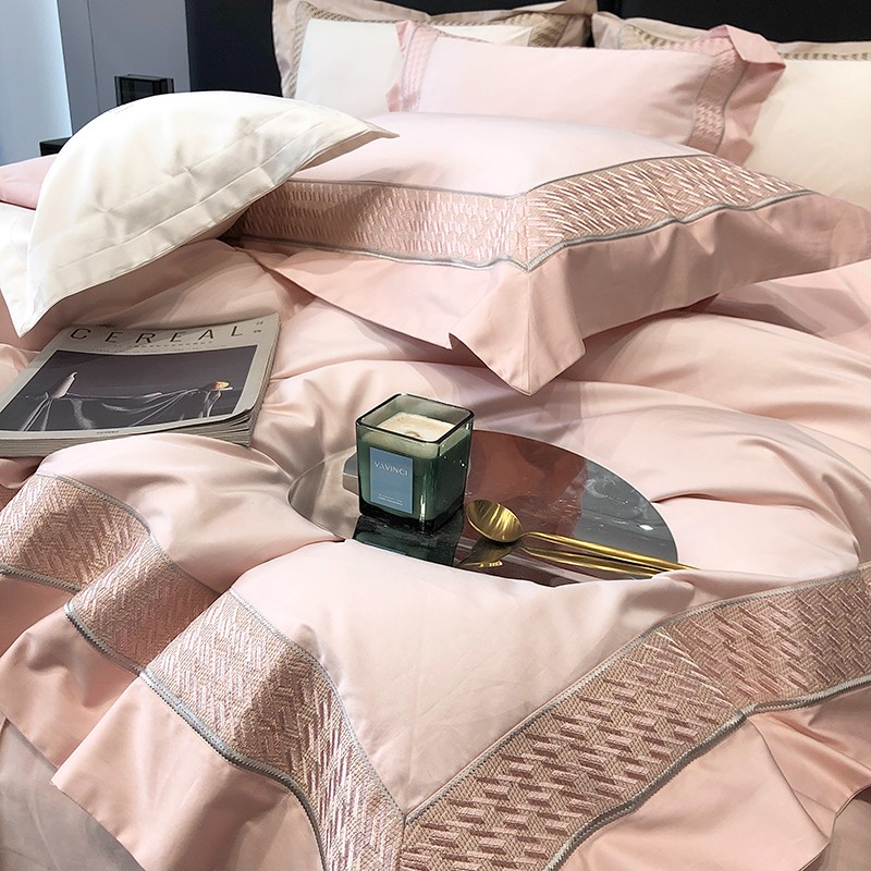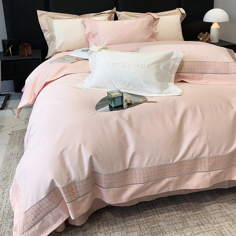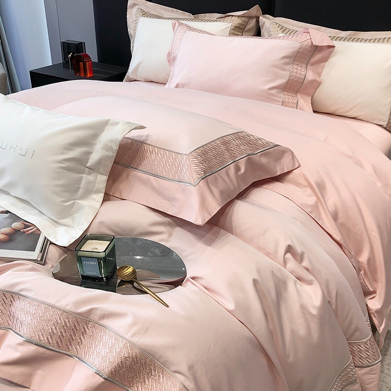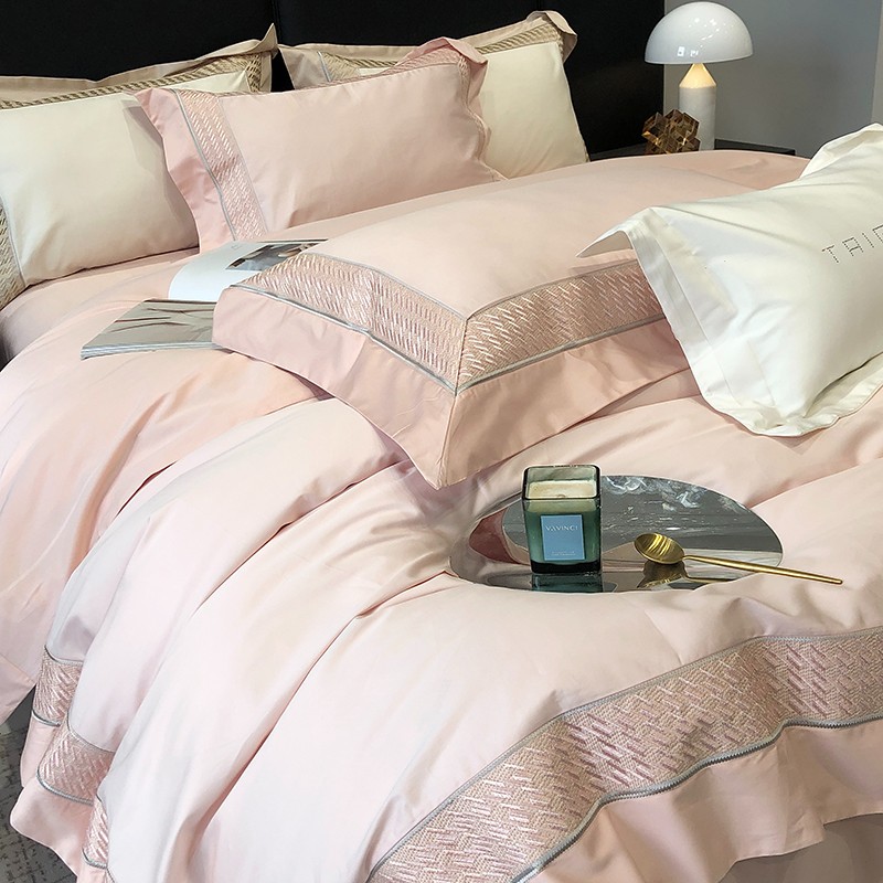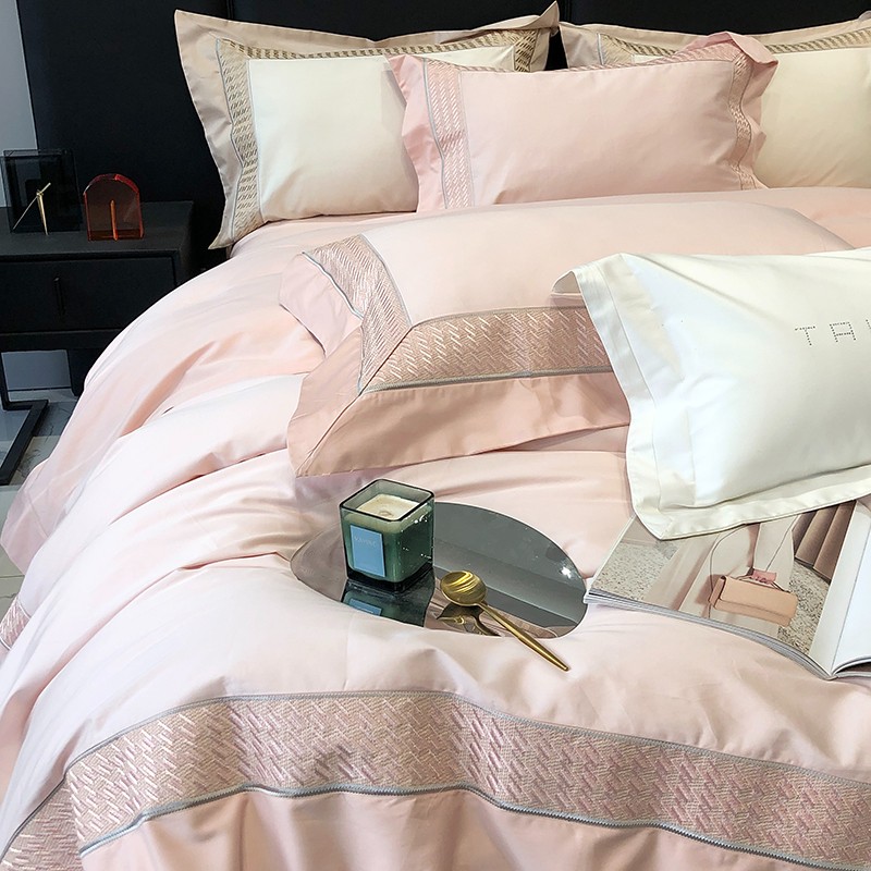 商品名称:太古汇 2023新款A类长绒棉刺绣千鸟格四件套-格伦格系列 长绒棉格伦格-粉色
