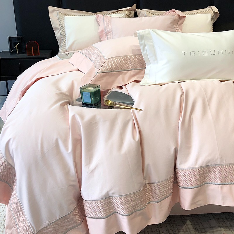 (总)太古汇家居 2025新款打孔镂空宽边格拉夫系列四件套,格拉夫-粉,格拉夫-红,格拉夫-蓝,格拉夫-米白