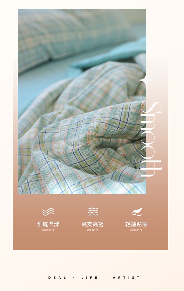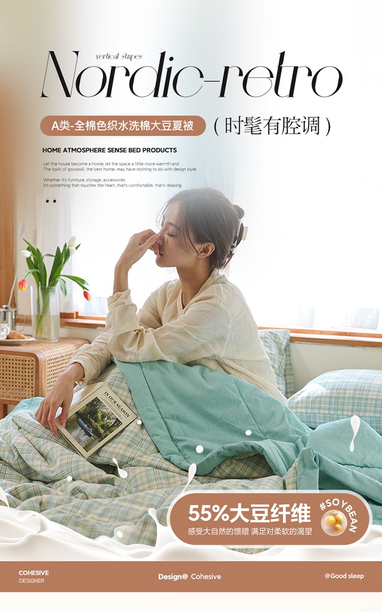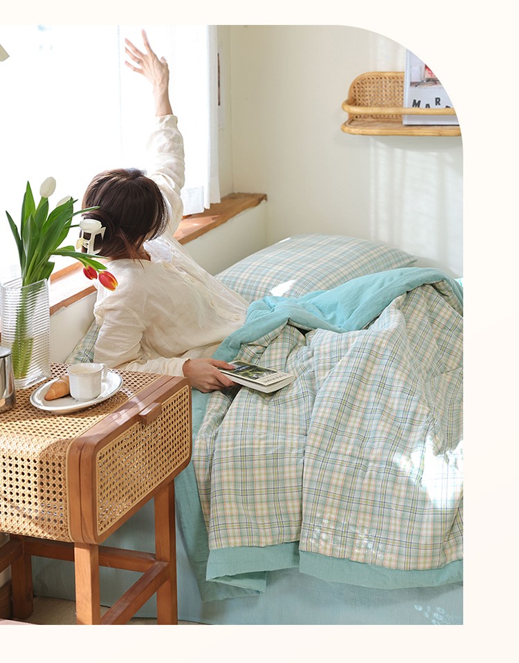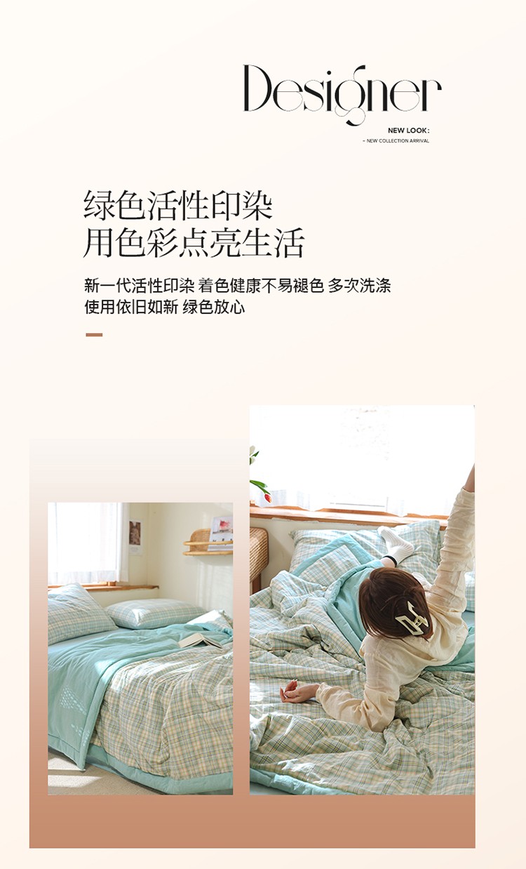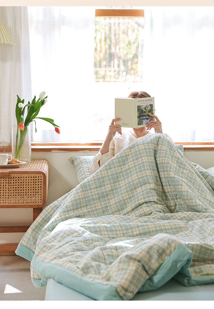 • 91家纺网 家纺一手货源 找家纺 一加一 2025全棉色织水洗棉55%大豆夏被四件套 森屿绿