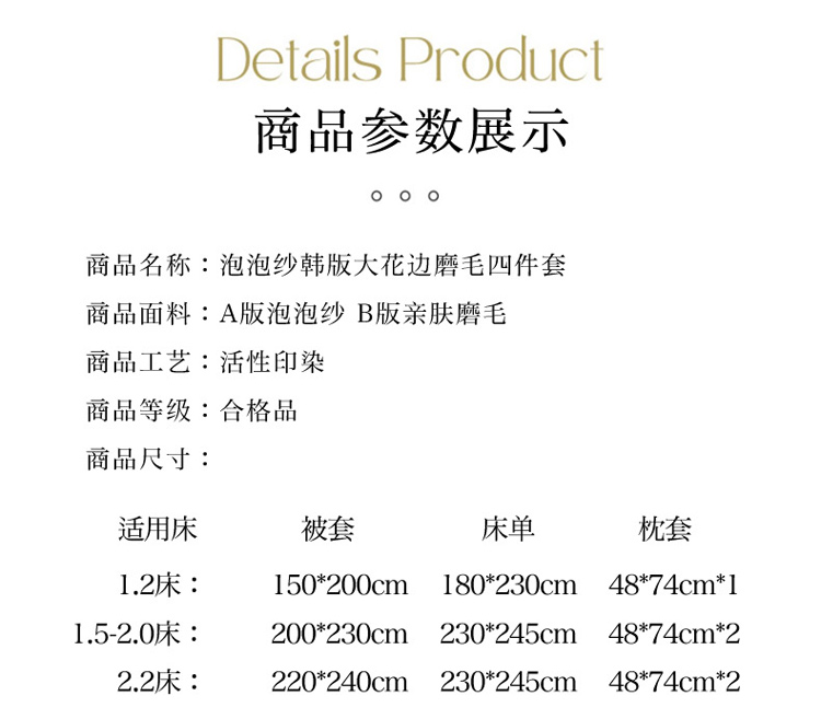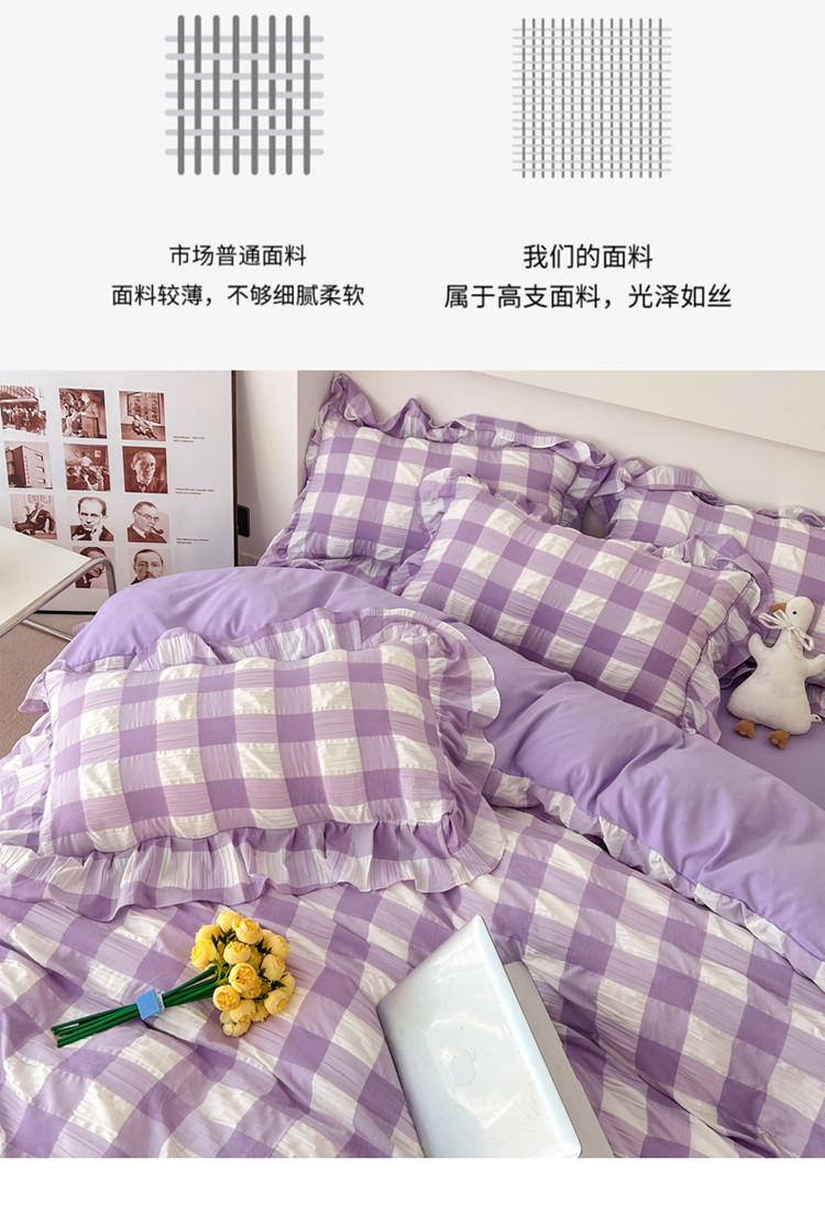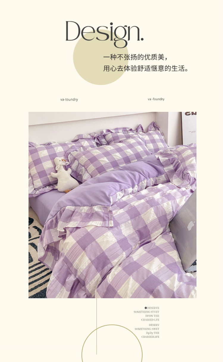 商品名称:花伞2023JK风双色泡泡纱大花边磨毛四件套香芋啵啵