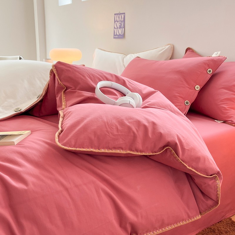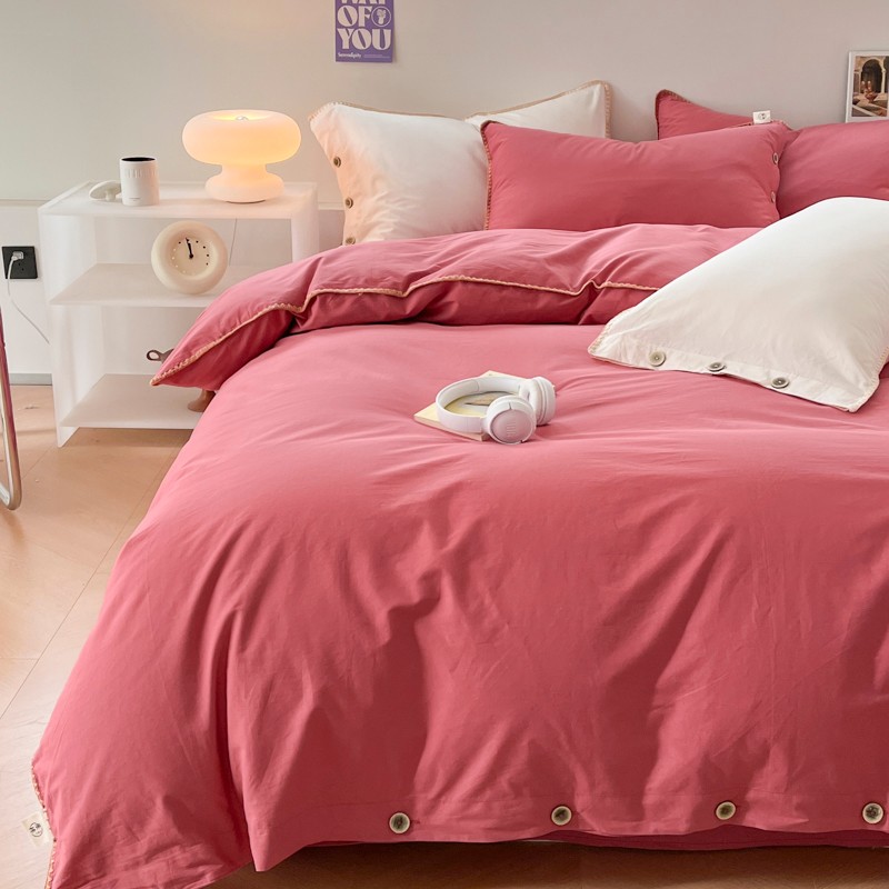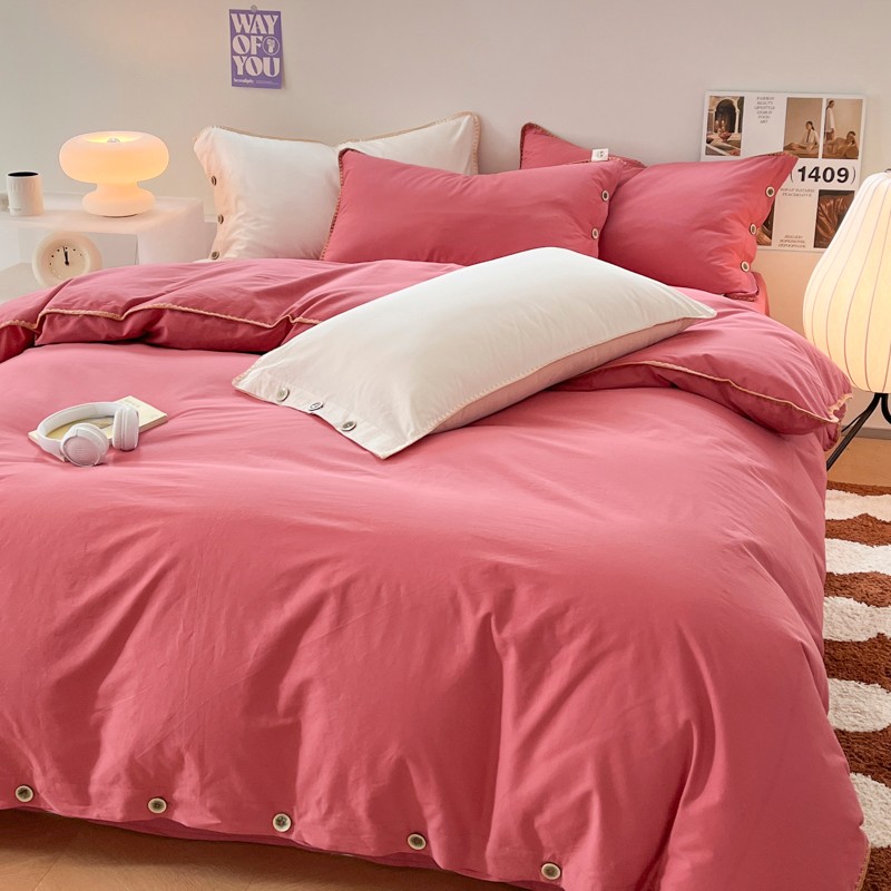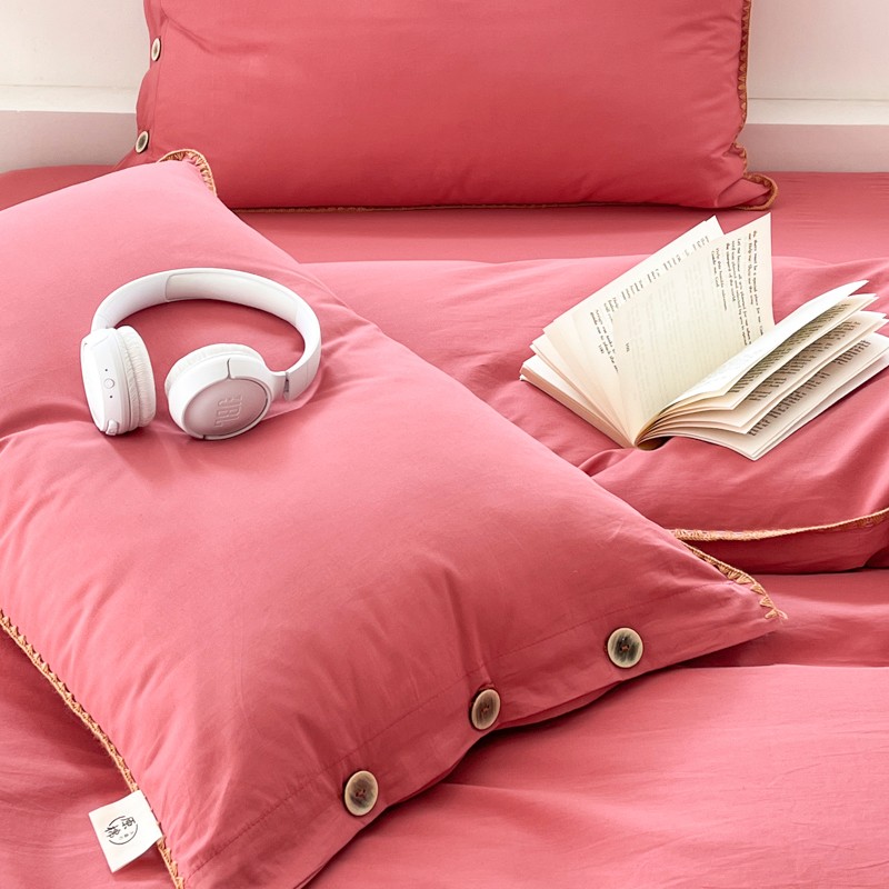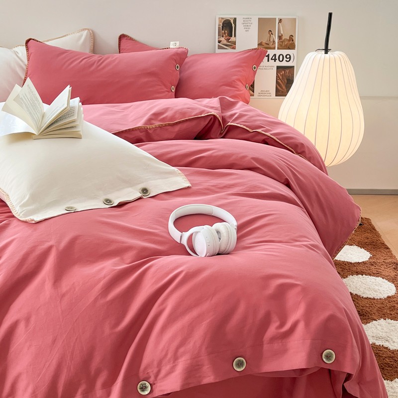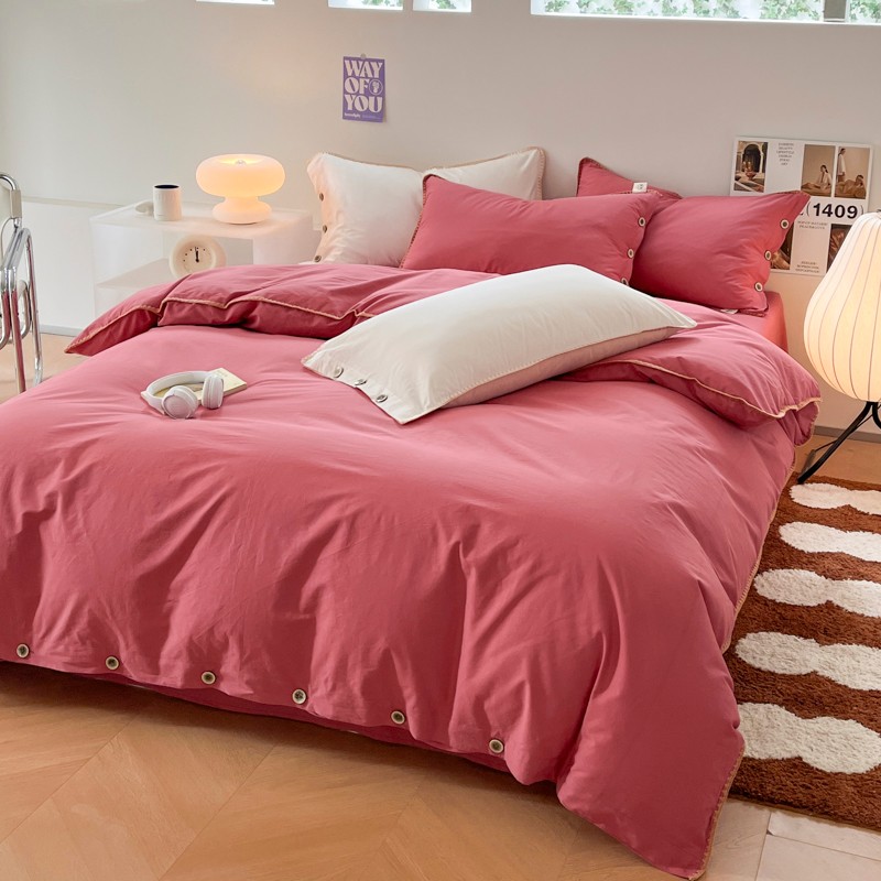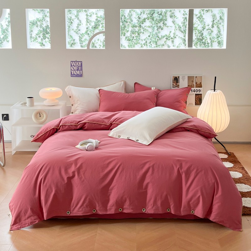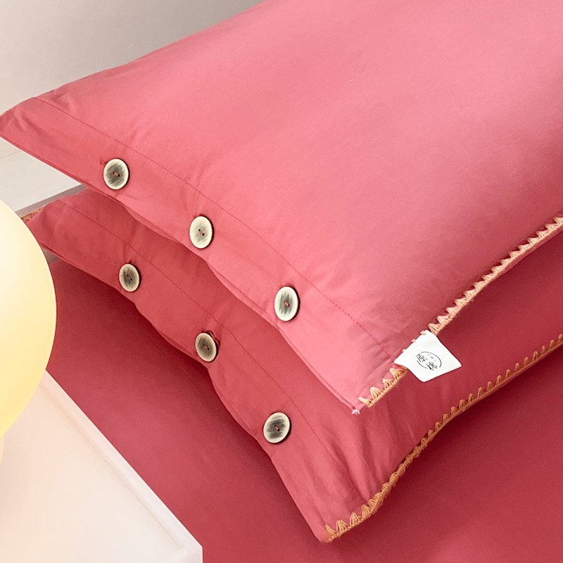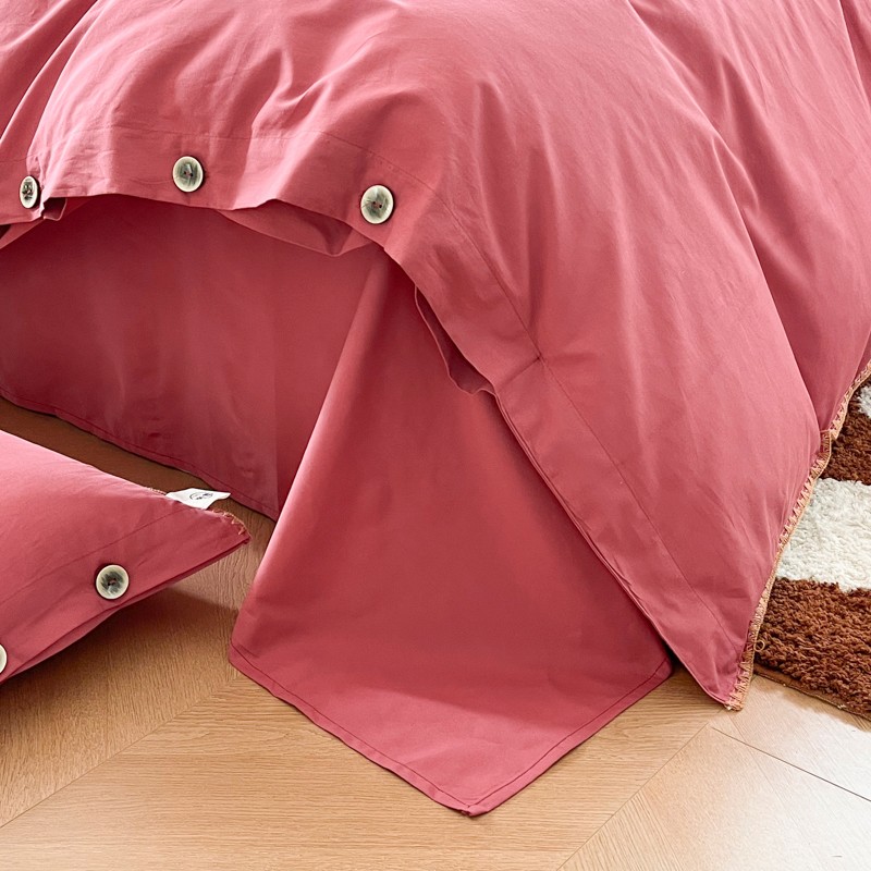 当前位置: 91家纺网 > 商品网购 > 床品套件 > 四件套 > 全棉普通四件套 > 蜜柚 2024新款A类全棉40支纯色纽扣款水洗棉四件套 中国红