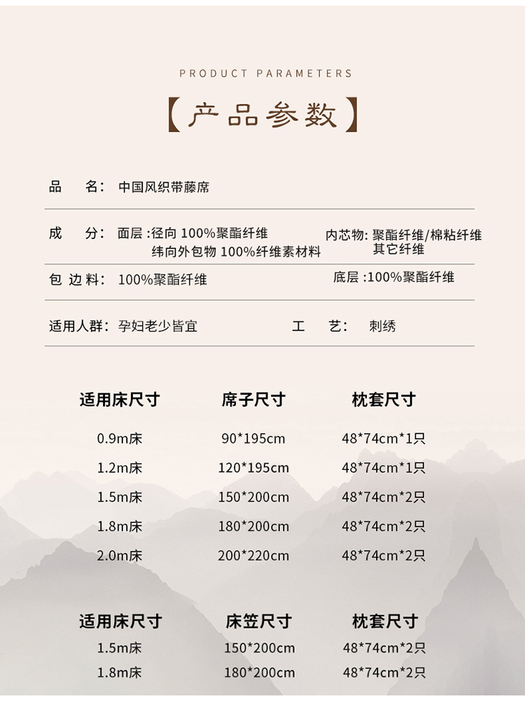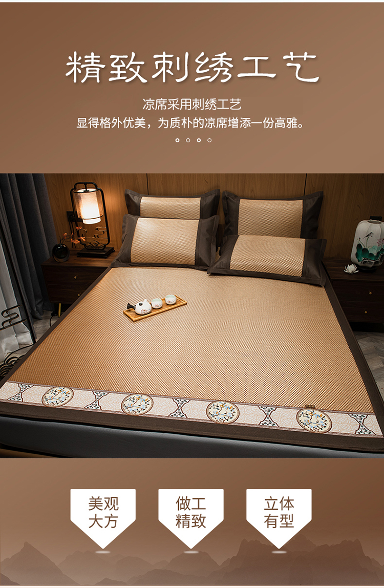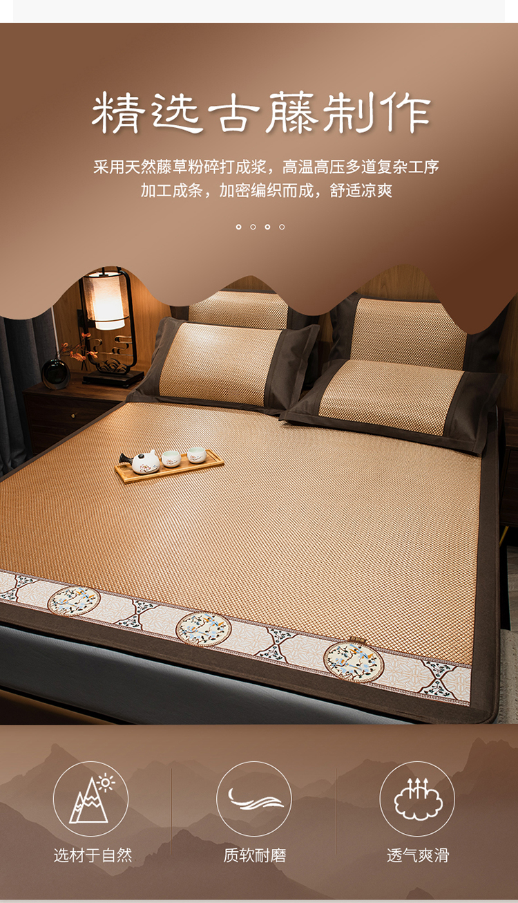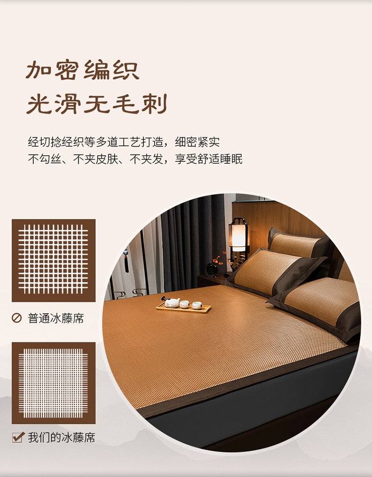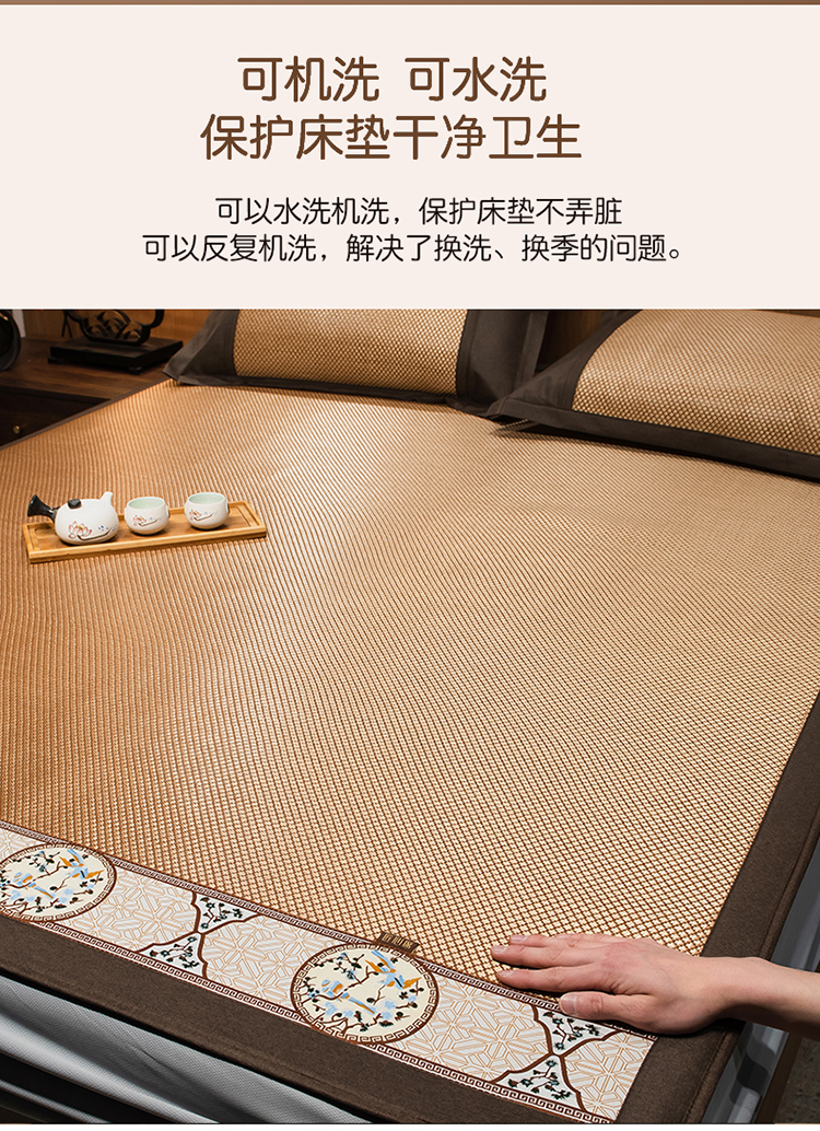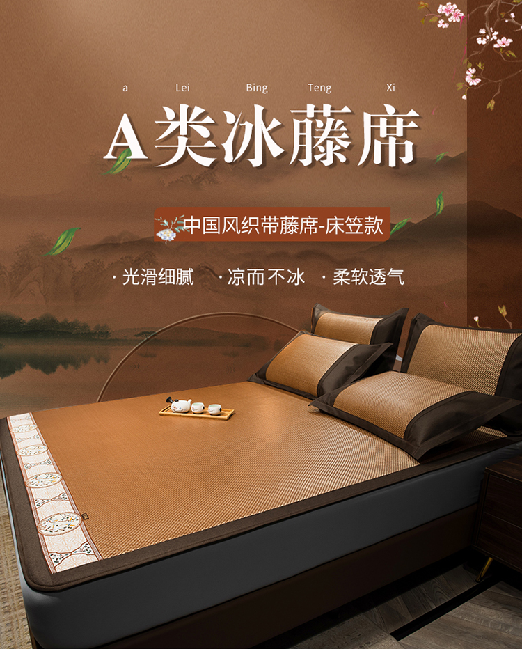 商品名称:全季家居 2023新款A类中国风织带冰藤席床笠款 古韵金
