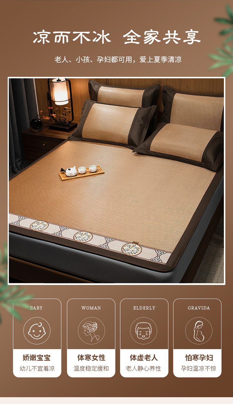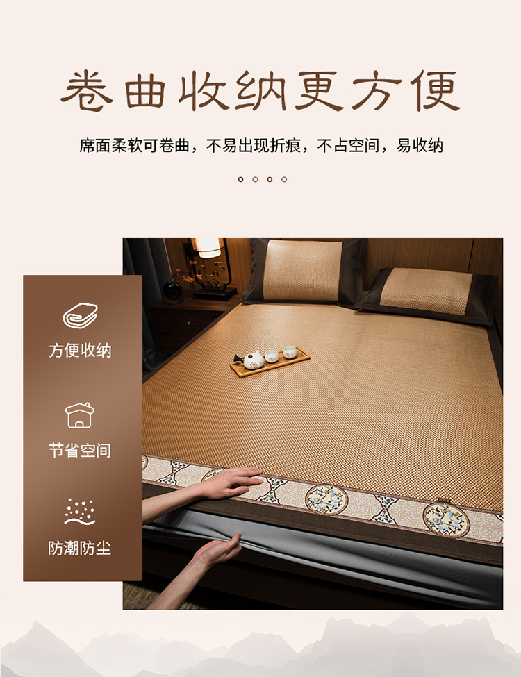 全季家居 2023新款A类中国风织带冰藤席床笠款 古韵金