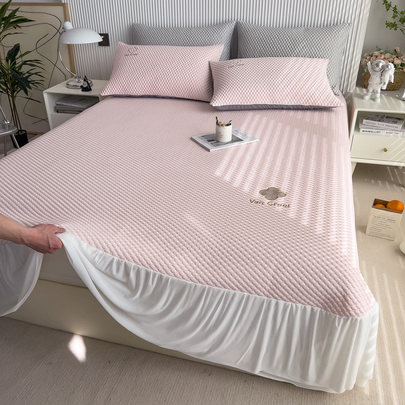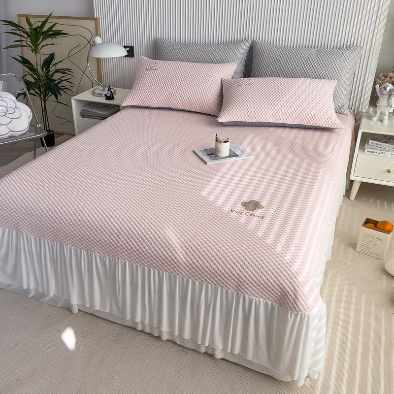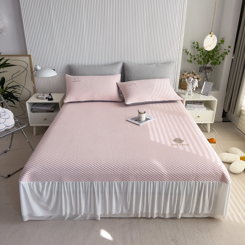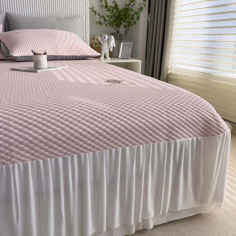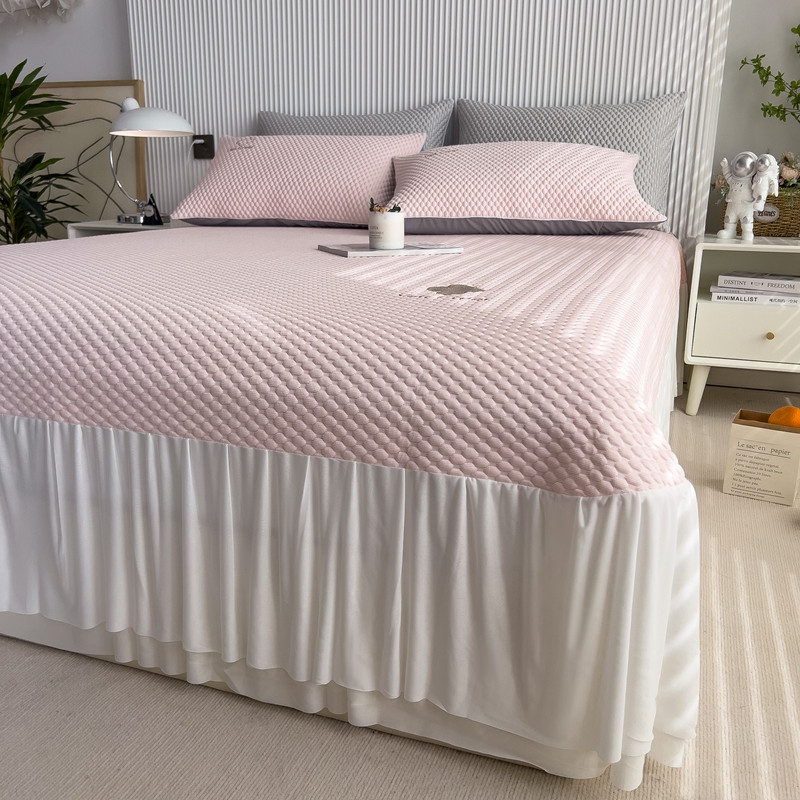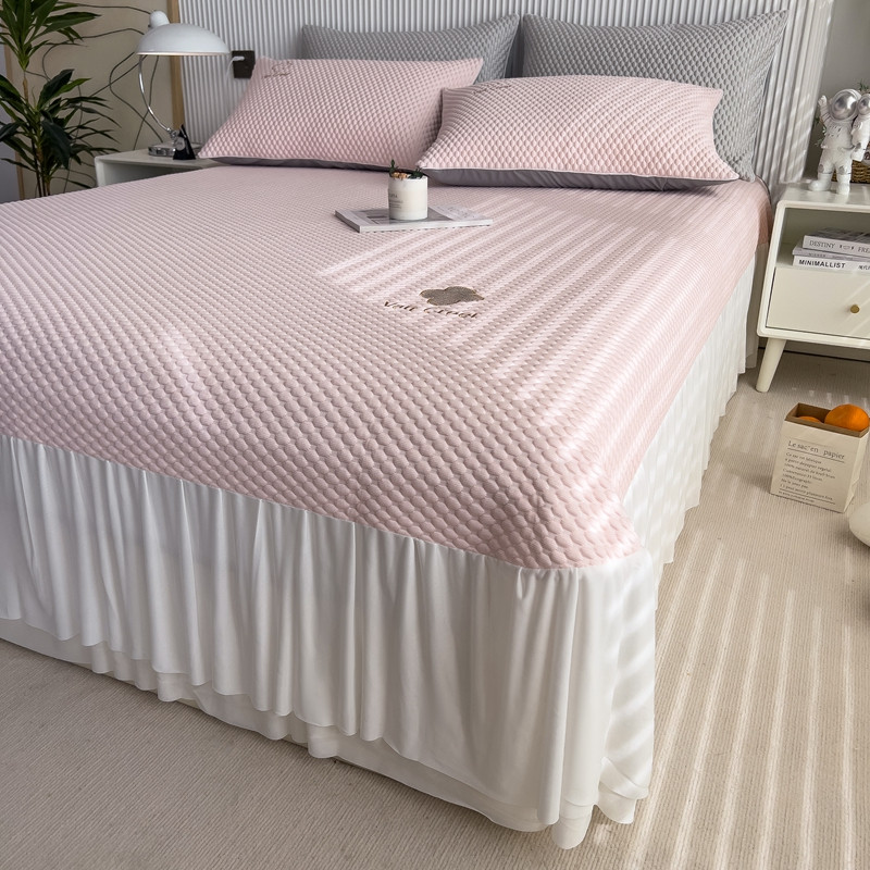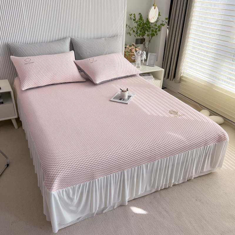 席世家 2023新款高冷感冰豆豆三件套床笠款床裙款 七彩粉-床裙款