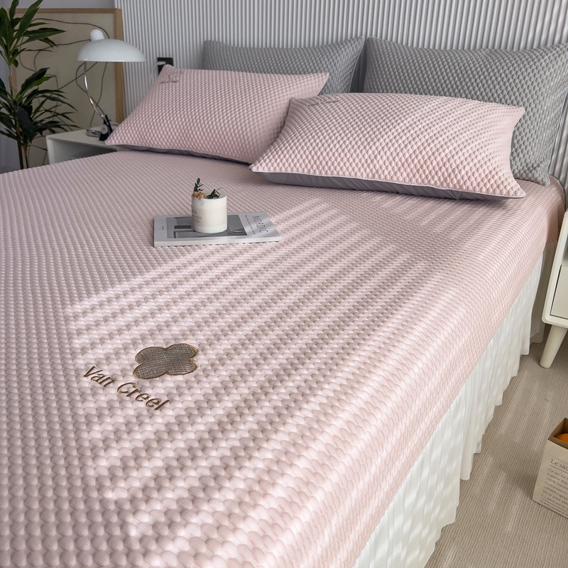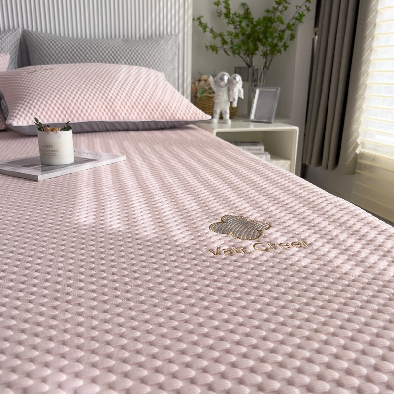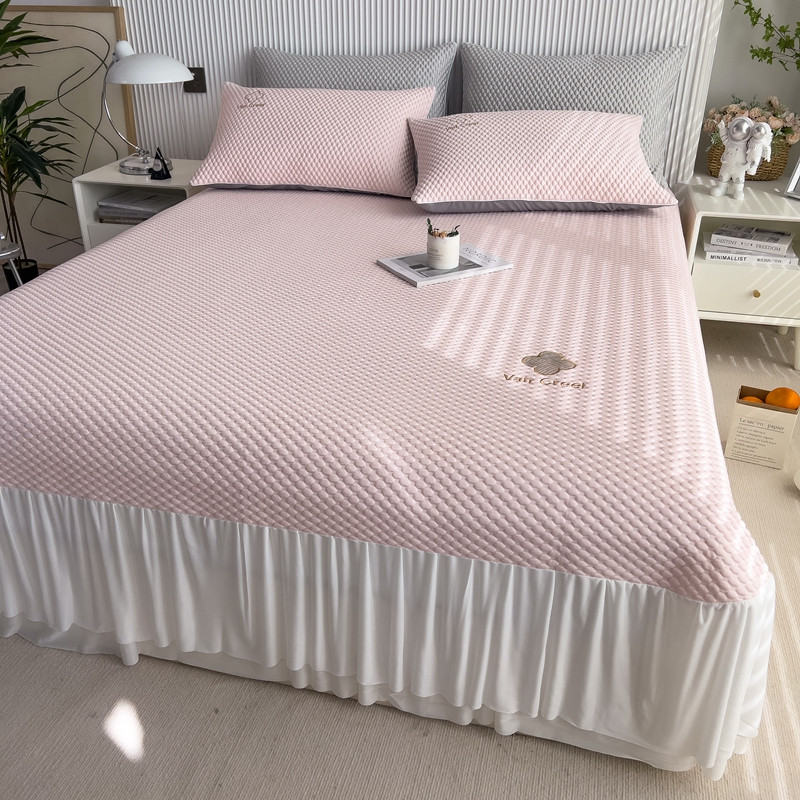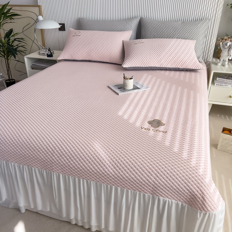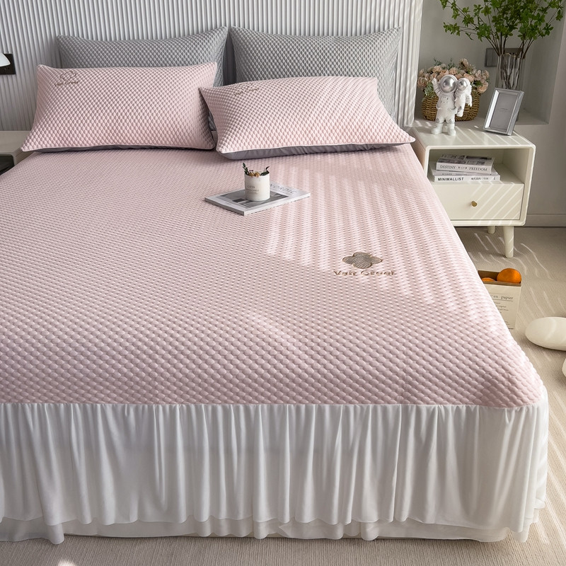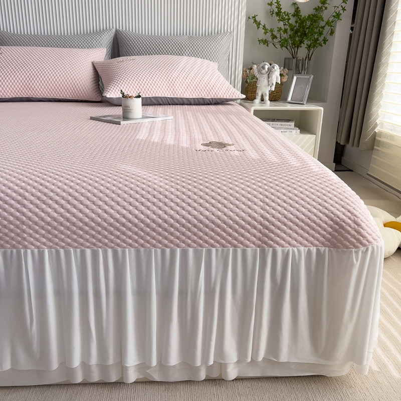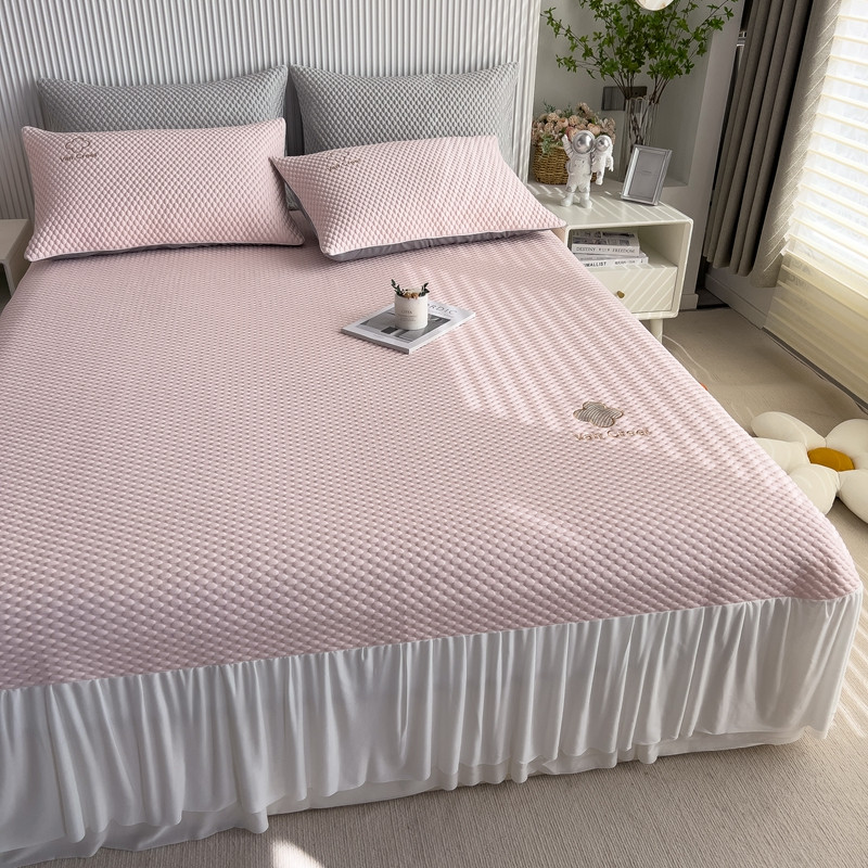 席世家 2023新款高冷感冰豆豆三件套床笠款床裙款 七彩粉-床裙款